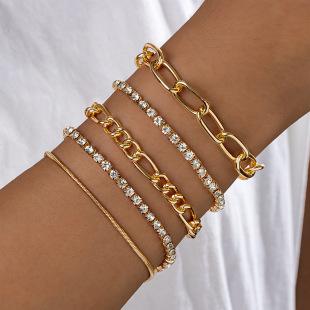 Moda europea y americana de alta gama simple nicho versátil cadena de hueso de serpiente de pedrería estilo clip de papel cadena metálica pulsera para damas
