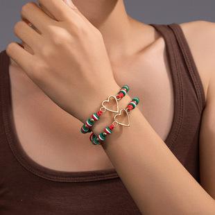 Pulsera de tarjeta tejida de arcilla polimérica colorida de aleación estilo personalidad moda navideña amor Papá Noel guantes