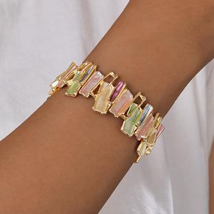 Pulsera de esmalte de moda transfronteriza europea y americana de gran venta, pulsera elástica para damas con costuras de gota de aceite de color geométrico irregular