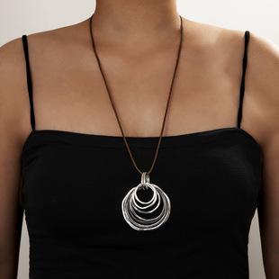 Collar largo de mujer con colgante redondo geométrico irregular multicapa de diseño de moda popular europeo y americano transfronterizo