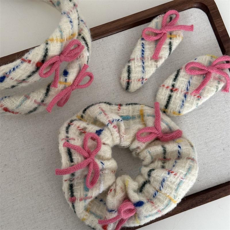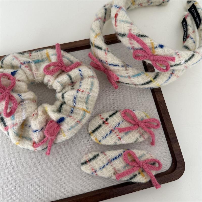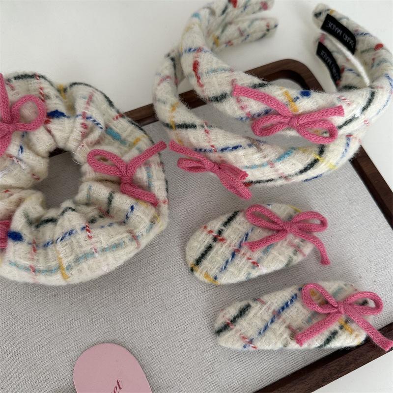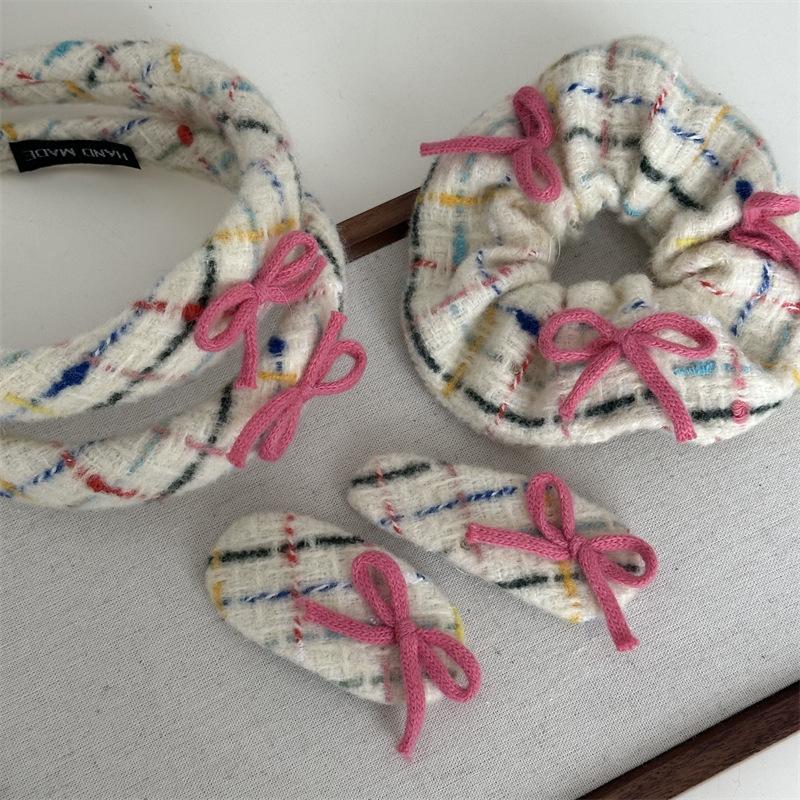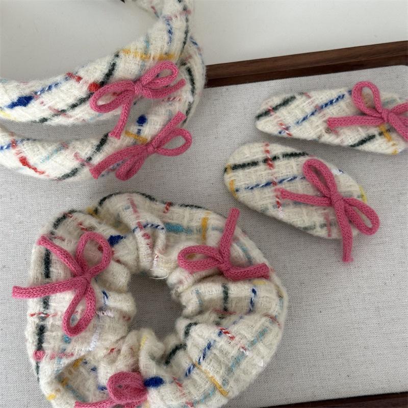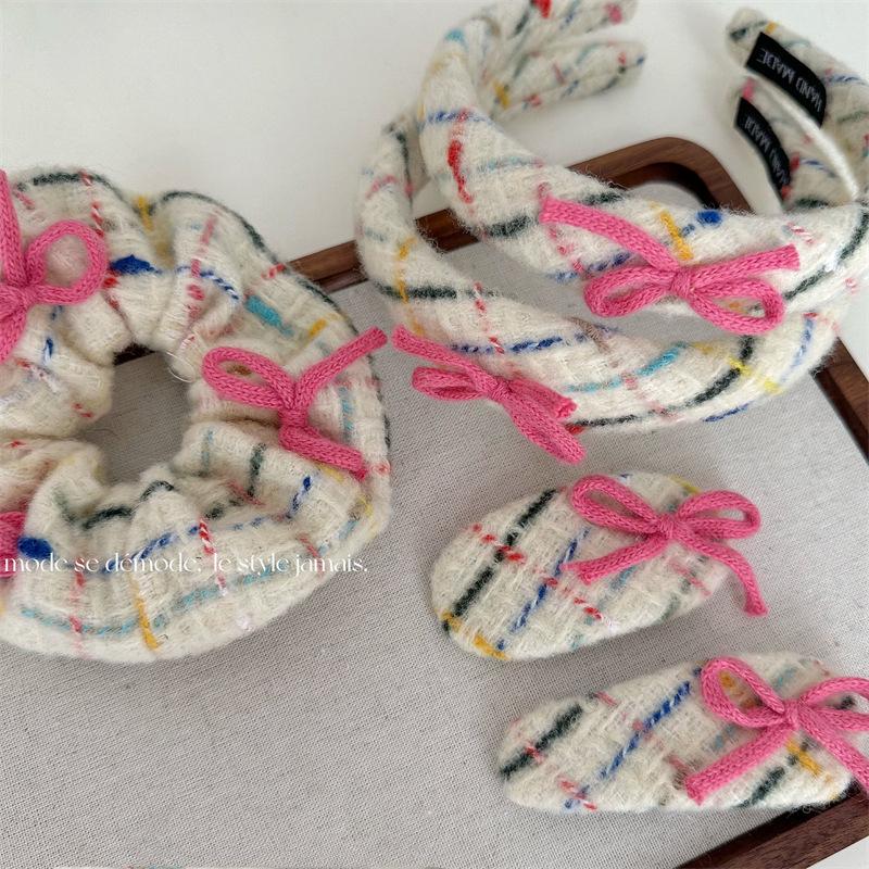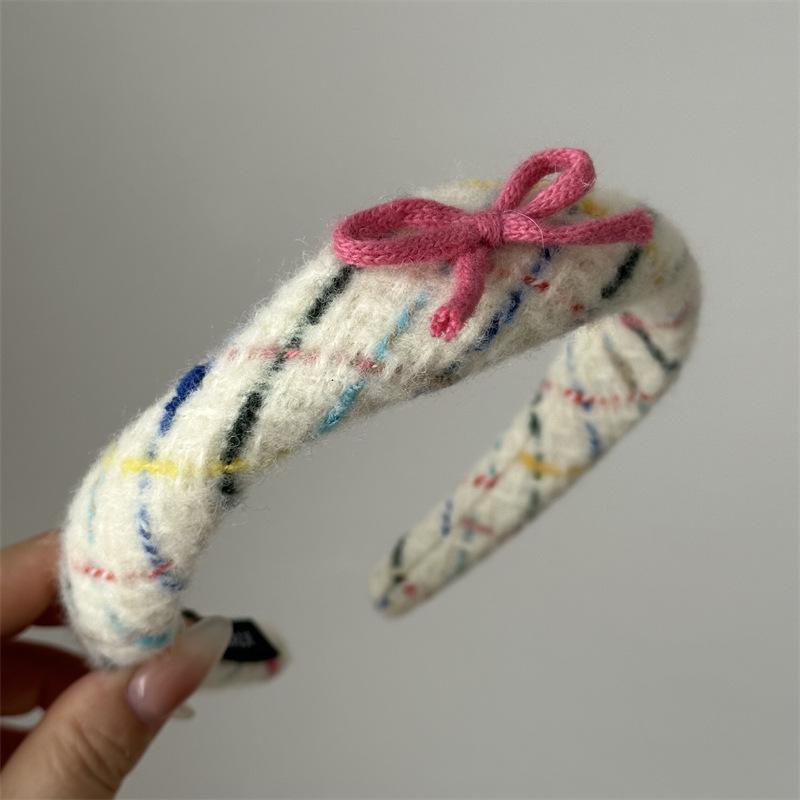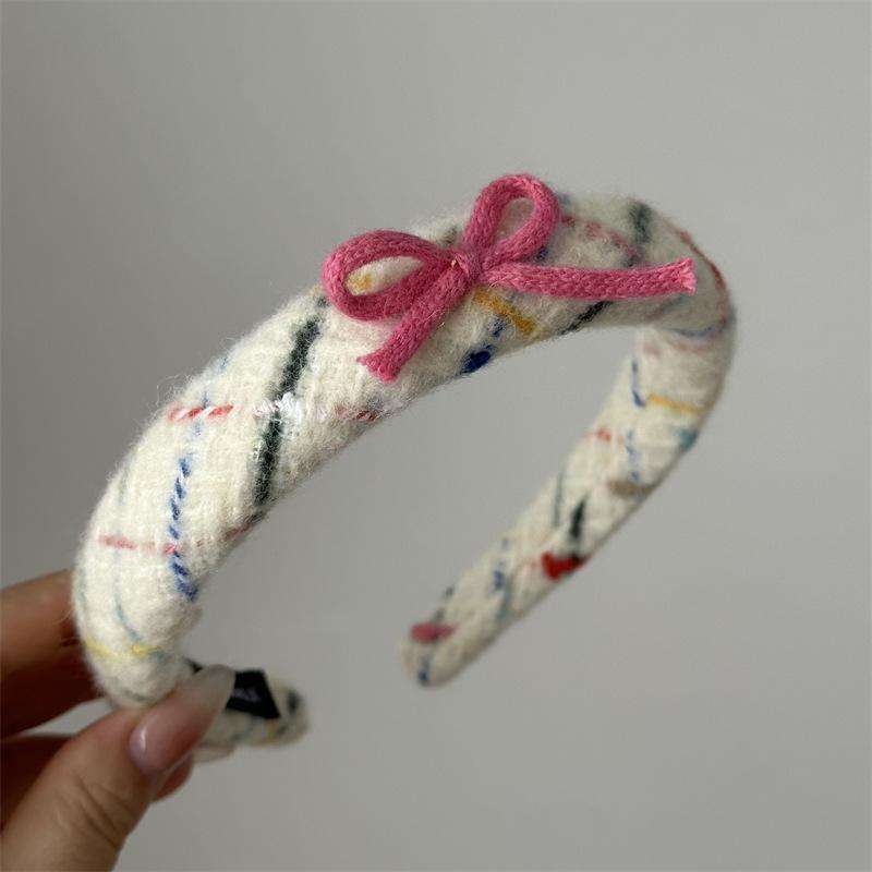 Diadema tejida de lana con lazo, colorida banda para el cabello para lavarse la cara, accesorios para el cabello rosa, tocado para mujer