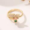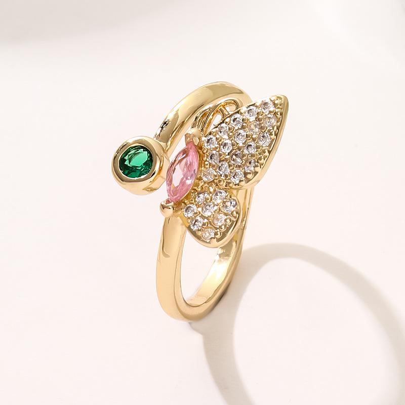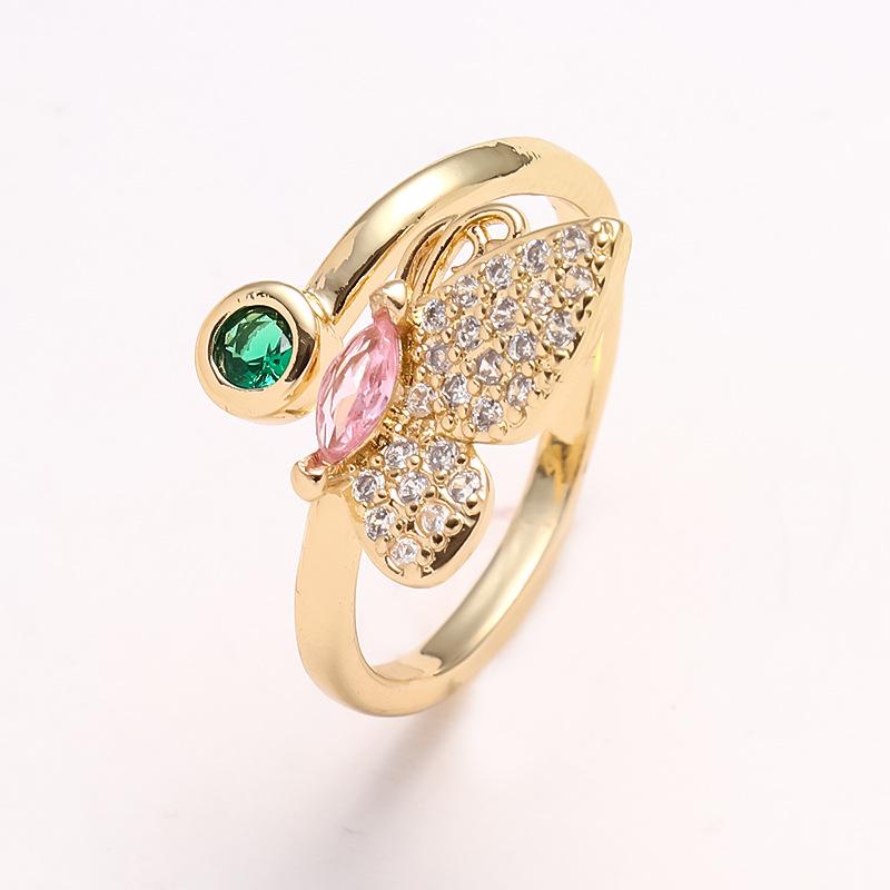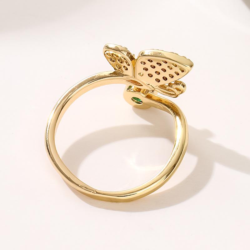 Anillo de Mariposa Europeo y Americano Nuevo Micro-incrustado de Zirconia Cobre Chapado en Oro Real Estilo Ins Estilo Simple y Fresco Anillo de Mujer