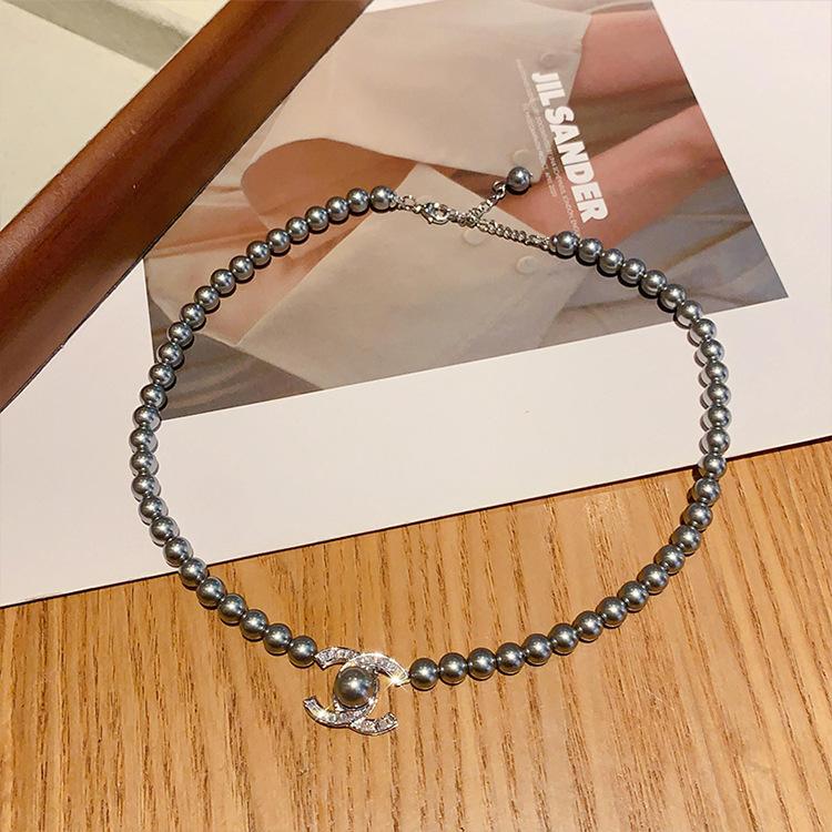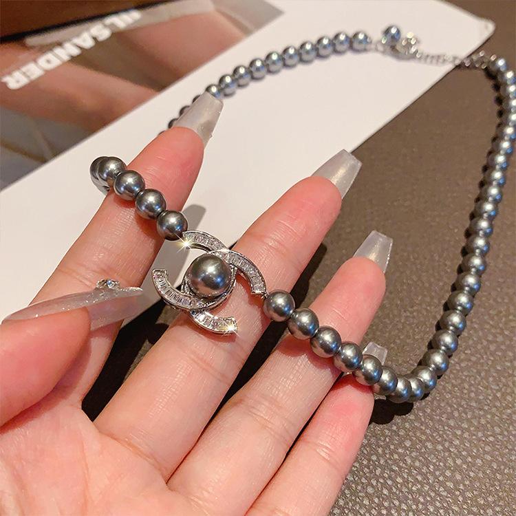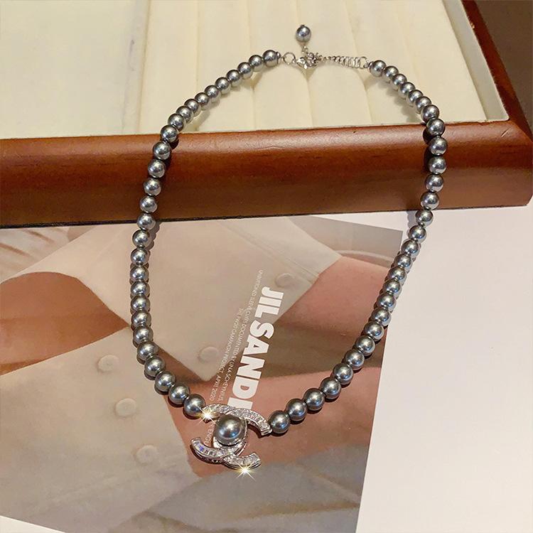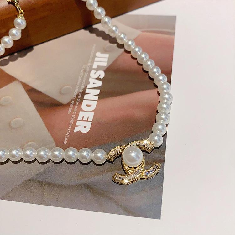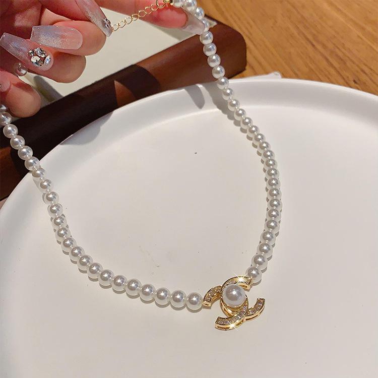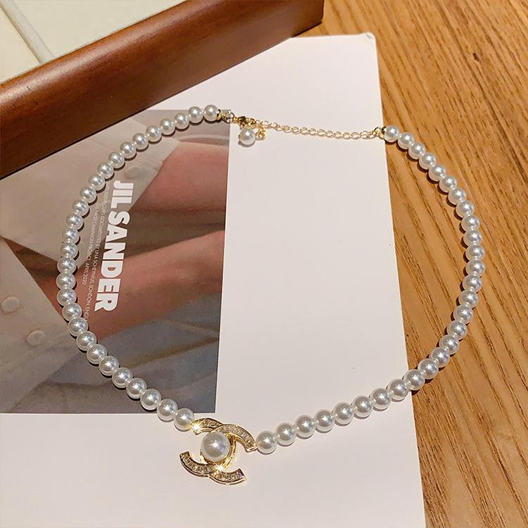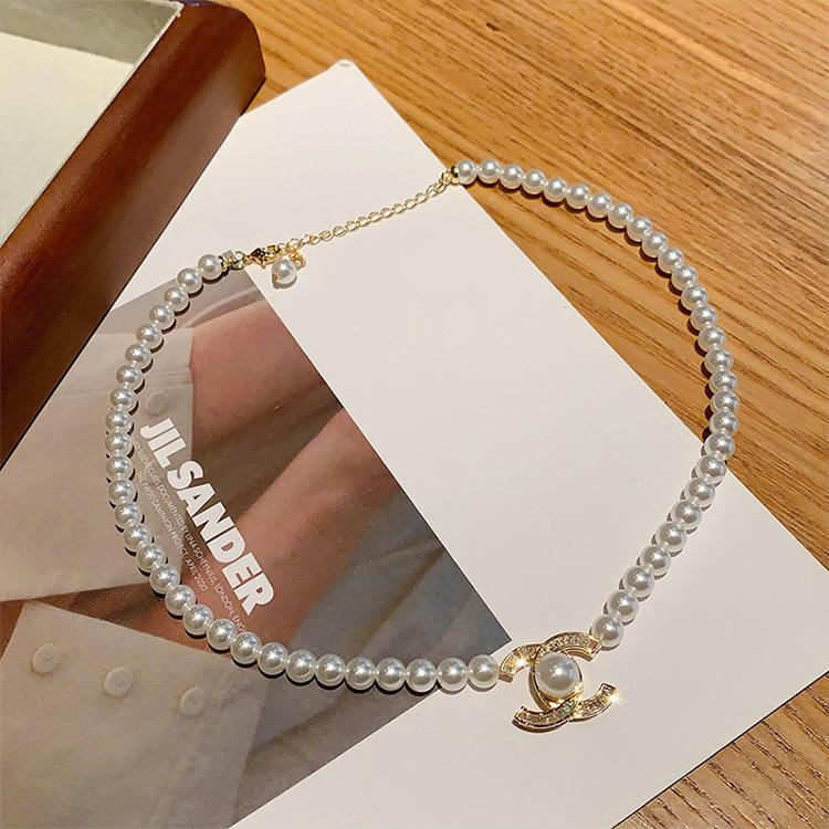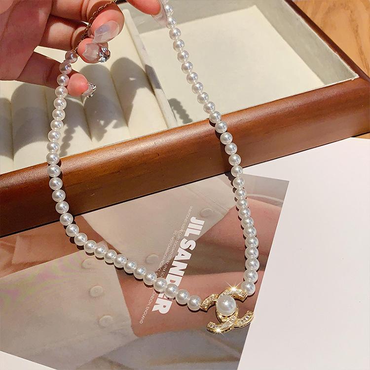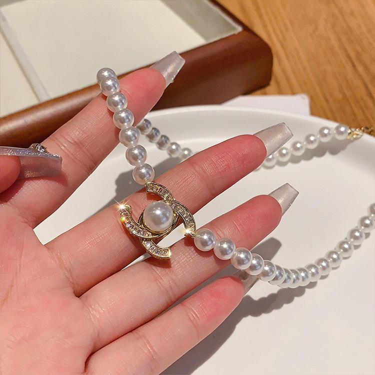 Collar con colgante de perlas y diamantes de imitación, estilo retro, ligero, de lujo, de alta calidad, sencillo, cadena de clavícula, elegante y a la moda, accesorios para collar que combinan con todo.