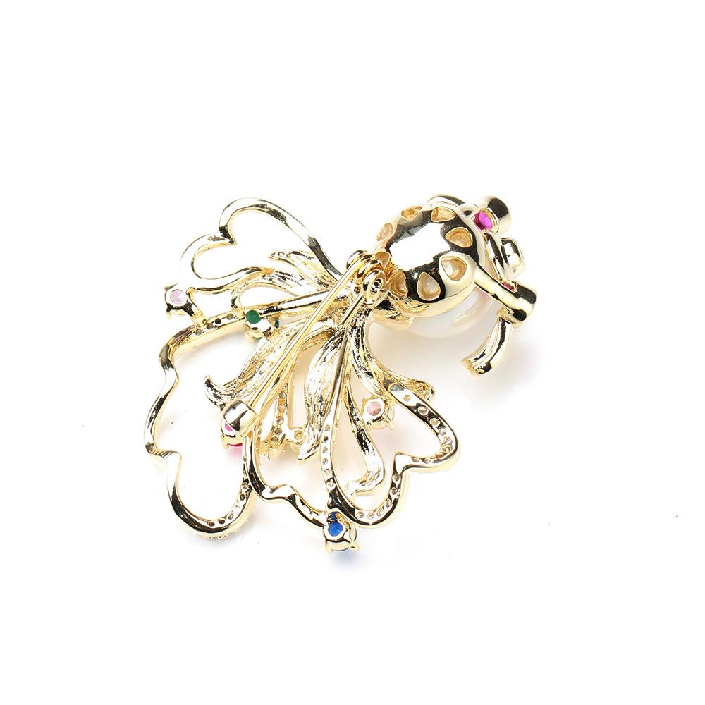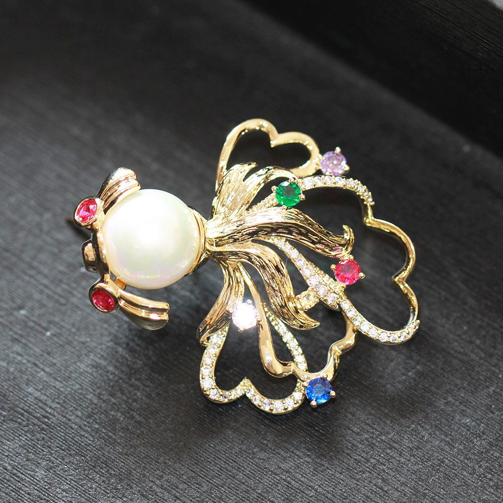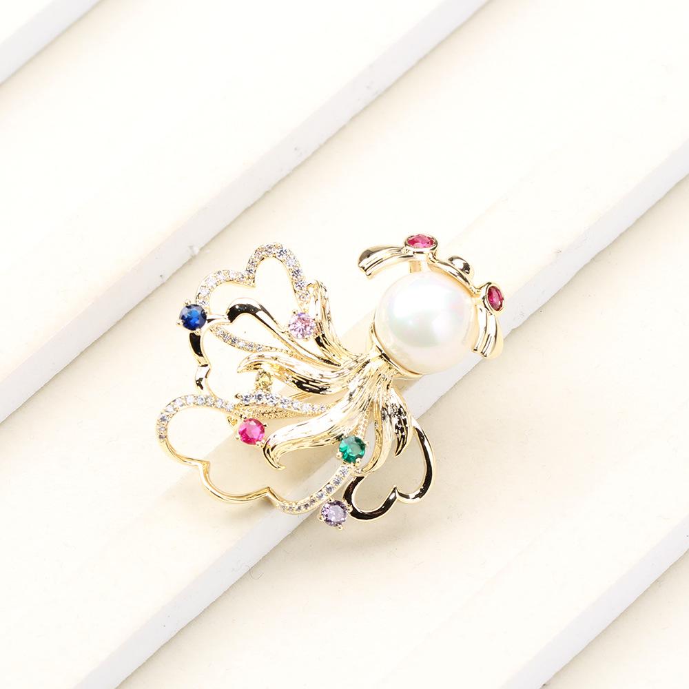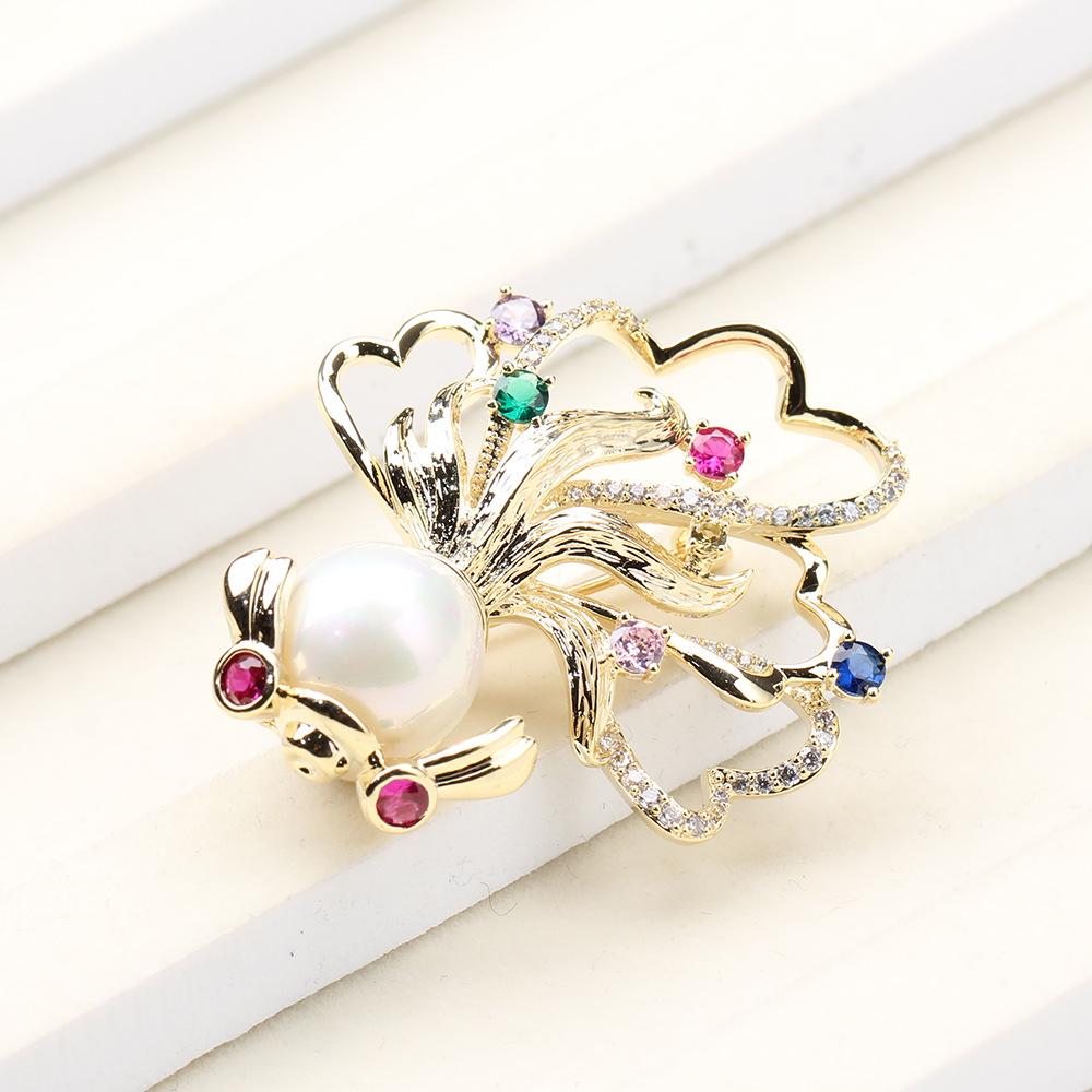 Broche de pez dorado con cola de colores incrustada con diamantes, bonito pez de un año de edad, chapado en oro, combina con todo, para hombres y mujeres.