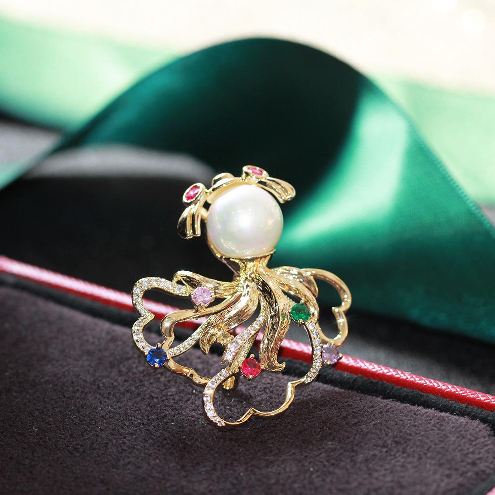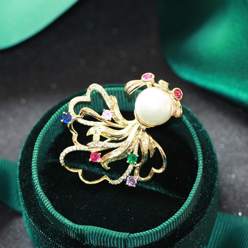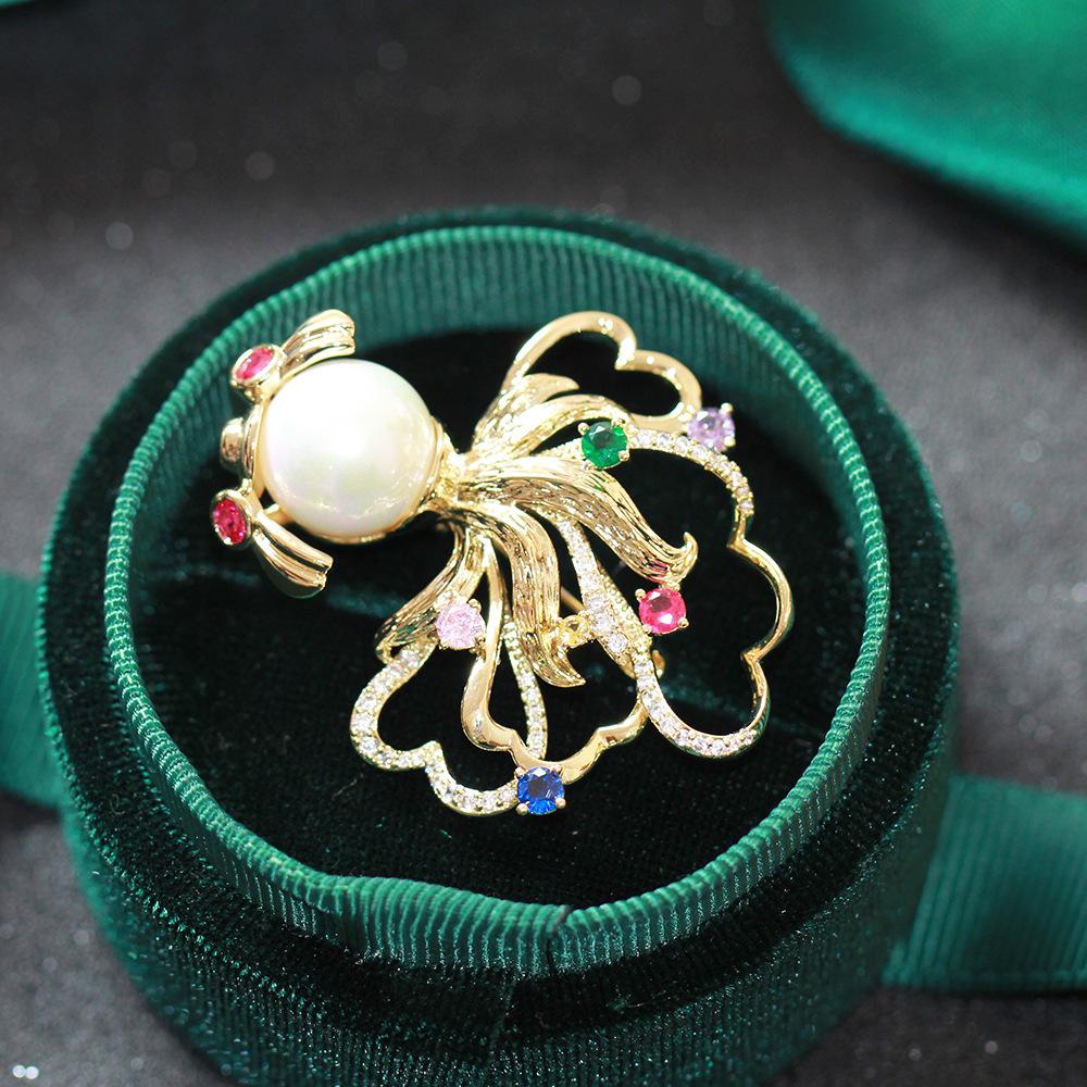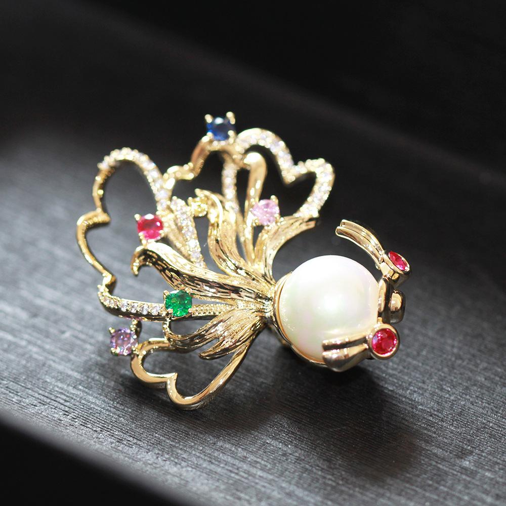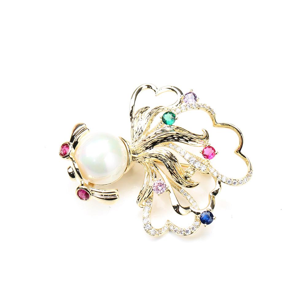 Broche de pez dorado con cola de colores incrustada con diamantes, bonito pez de un año de edad, chapado en oro, combina con todo, para hombres y mujeres.