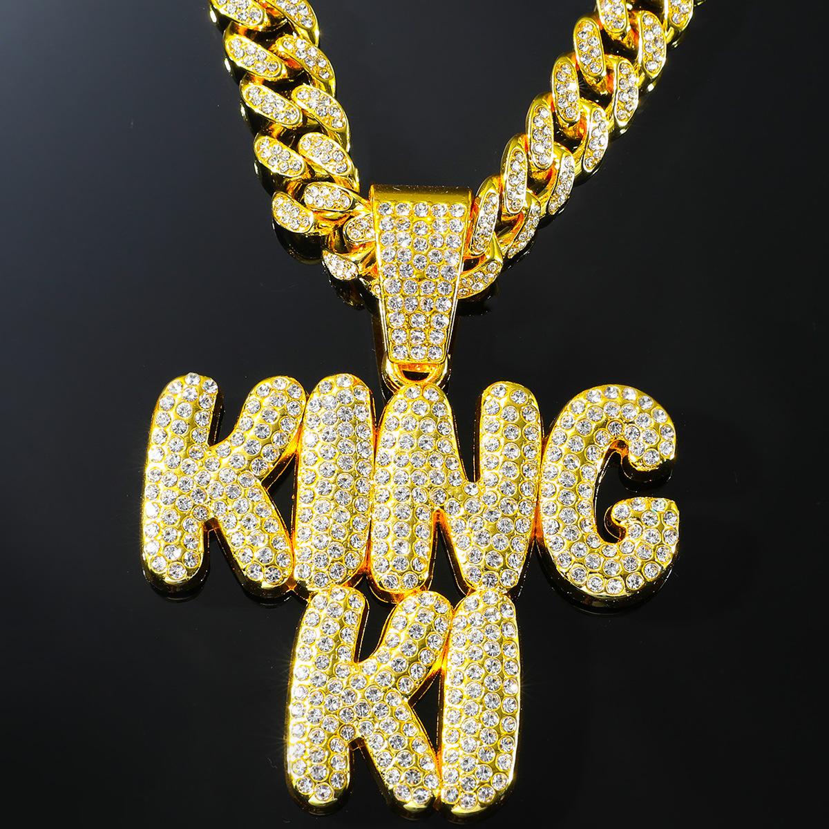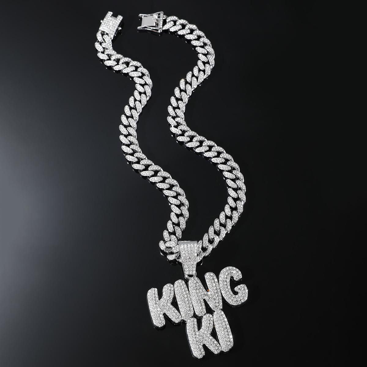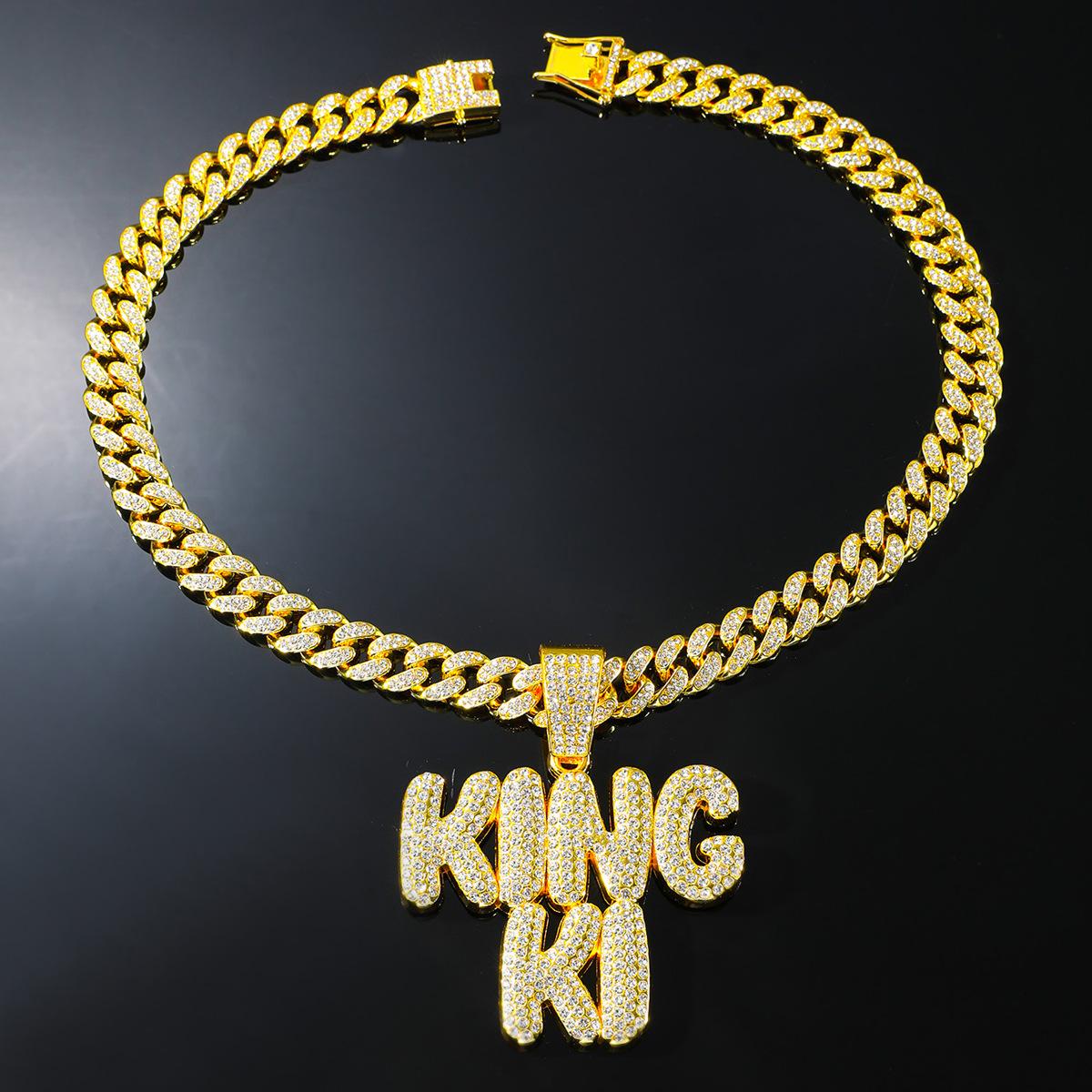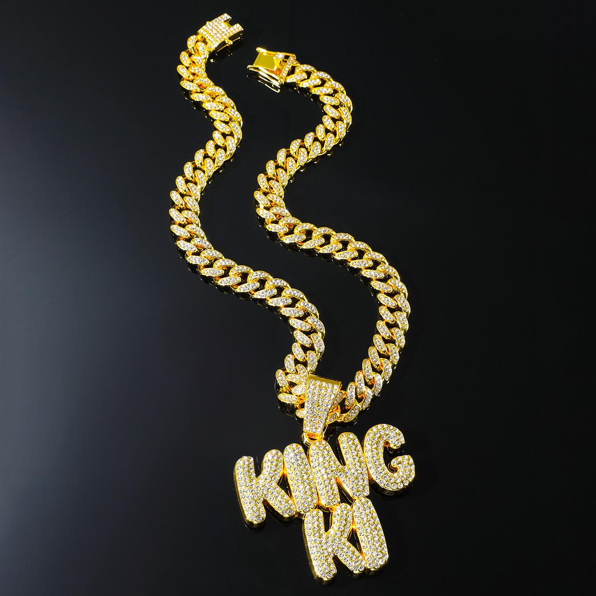 Collar con colgante de letra de diamante con diseño de rey exagerado de hip-hop europeo y americano para hombre, accesorios de cadena cubana dominantes y geniales, joyería