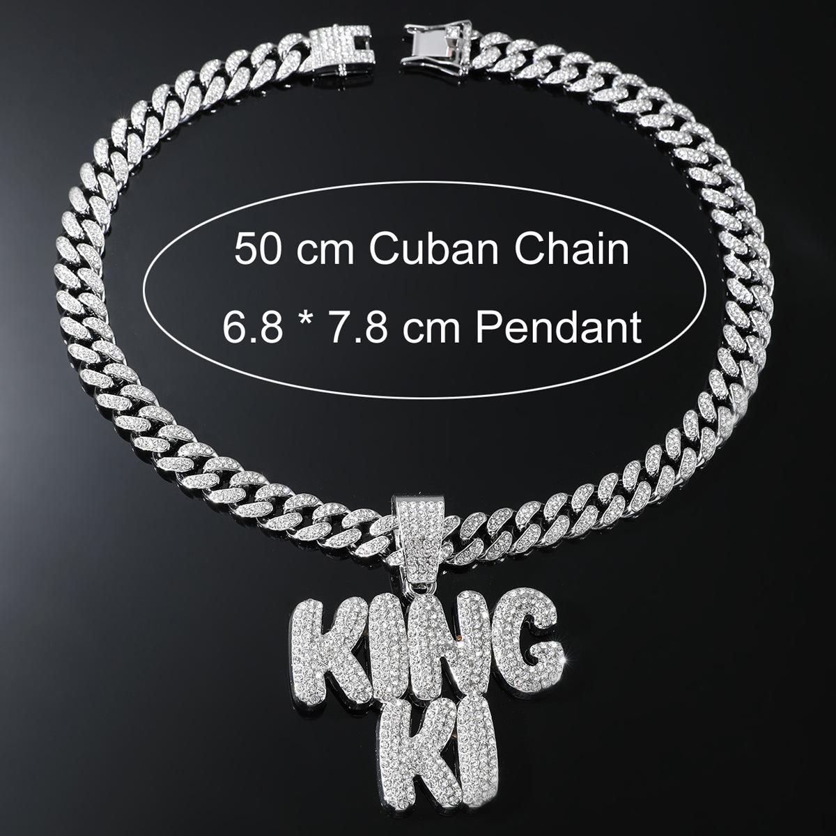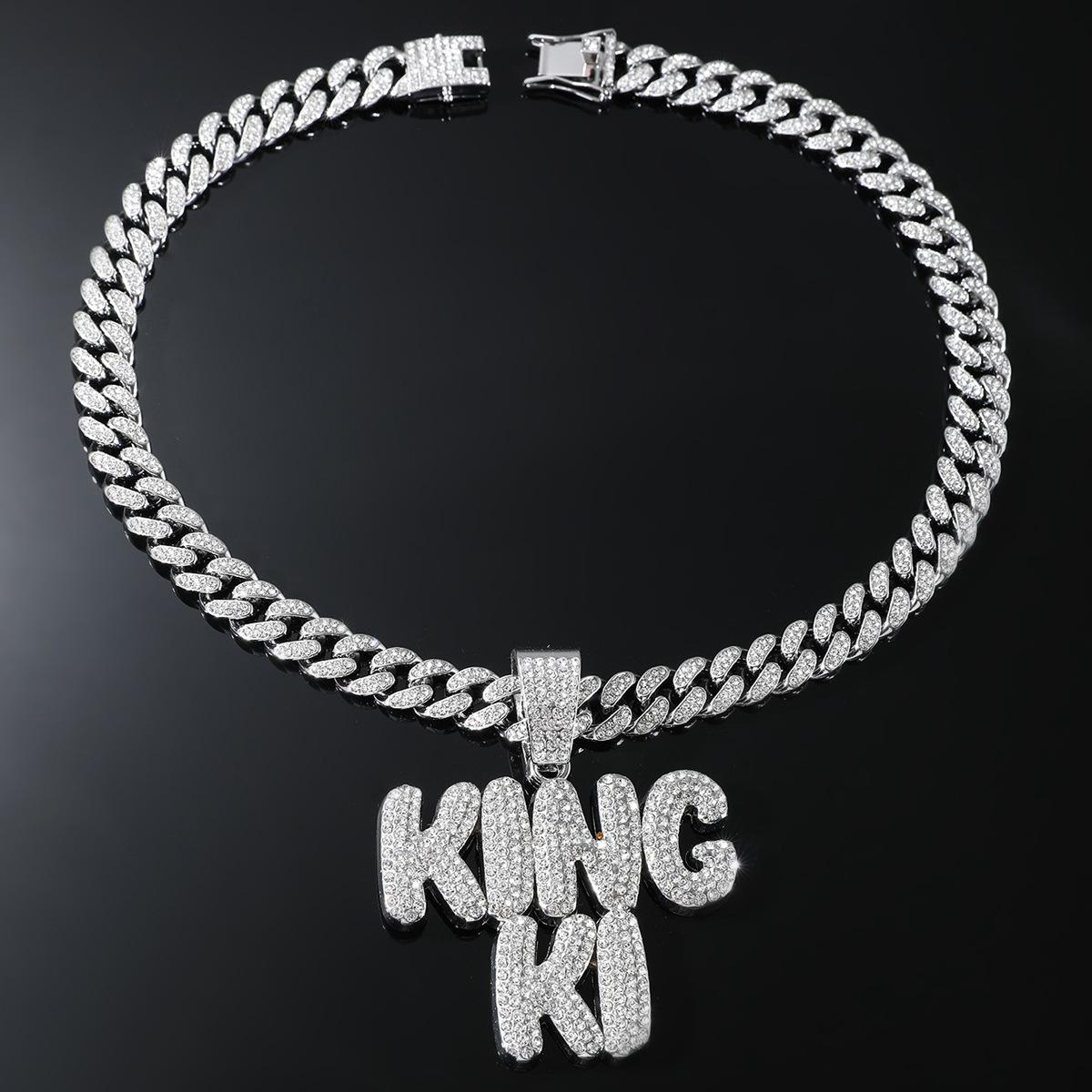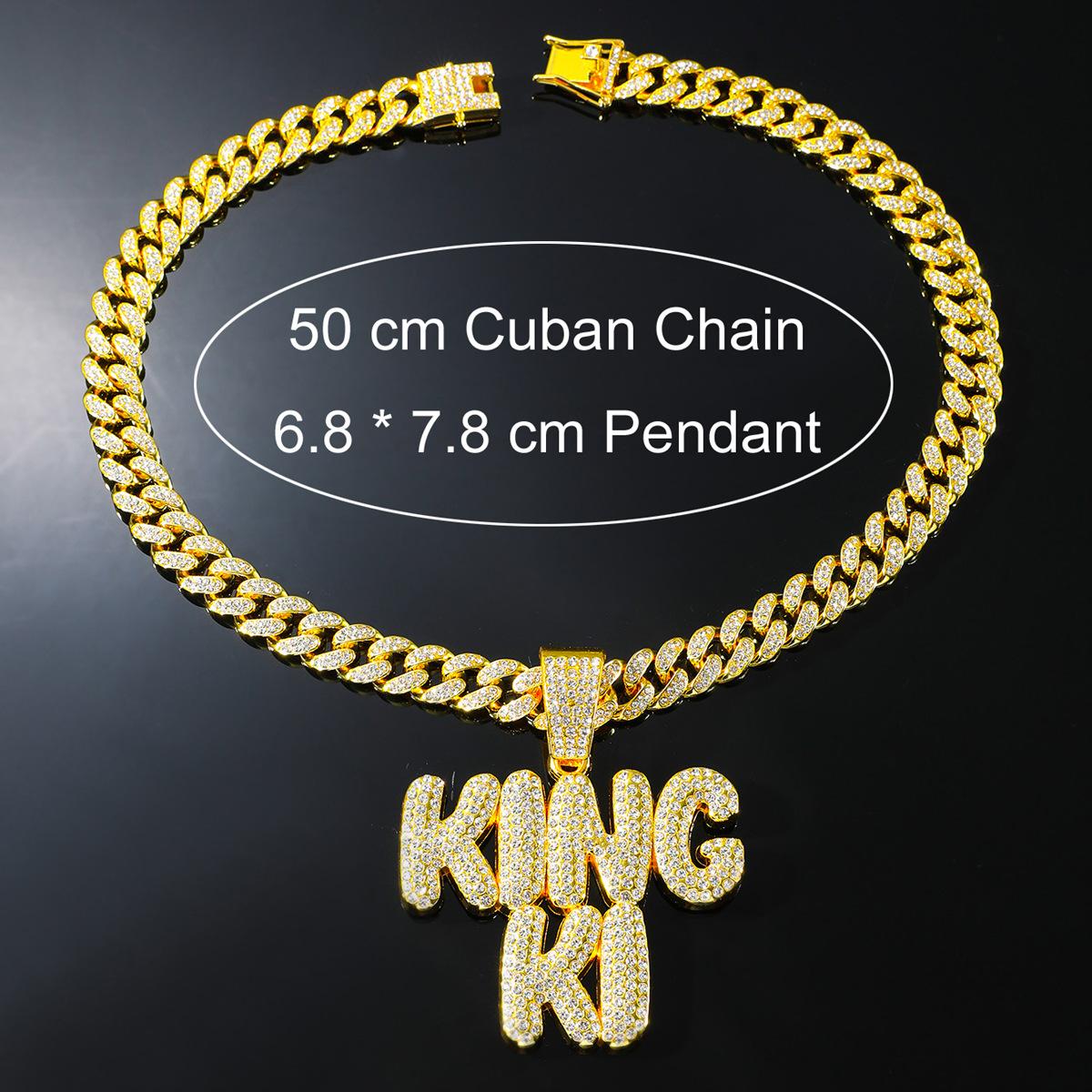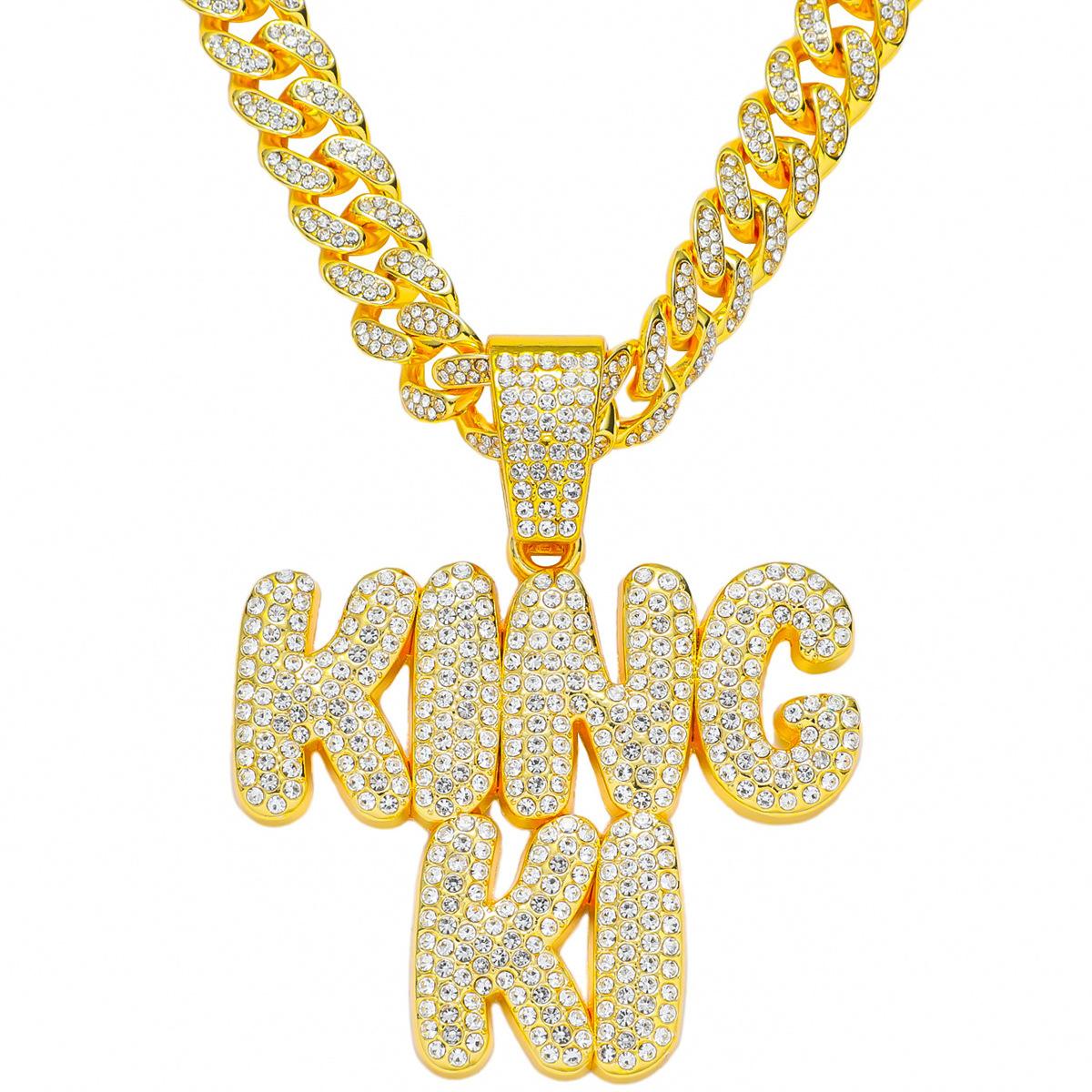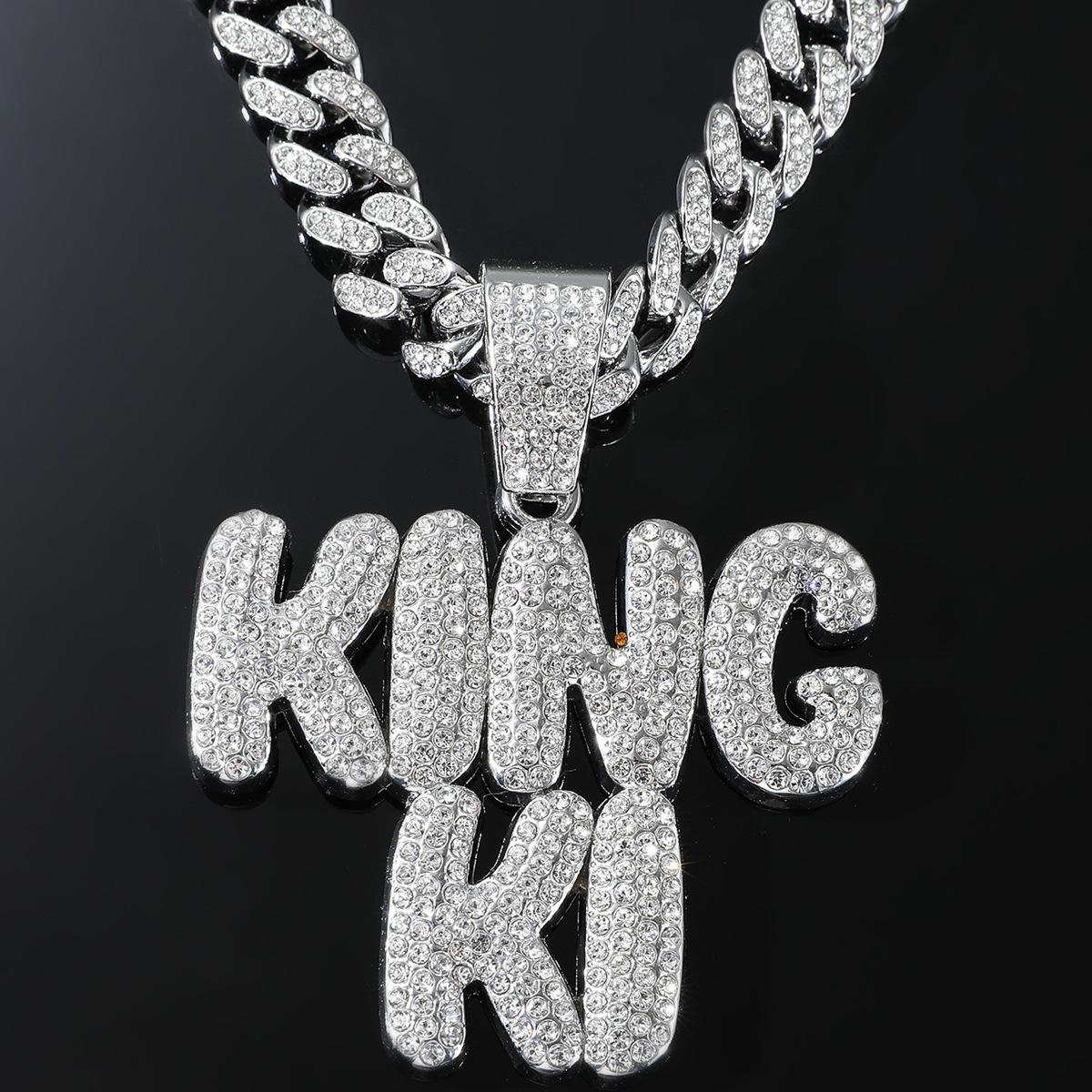 Collar con colgante de letra de diamante con diseño de rey exagerado de hip-hop europeo y americano para hombre, accesorios de cadena cubana dominantes y geniales, joyería