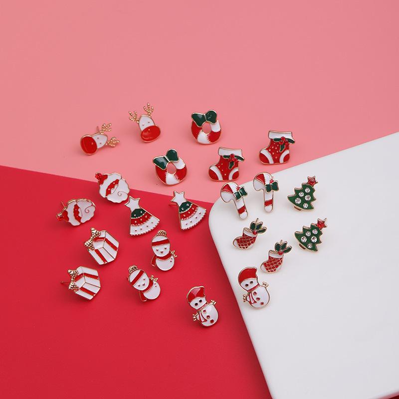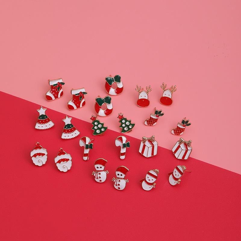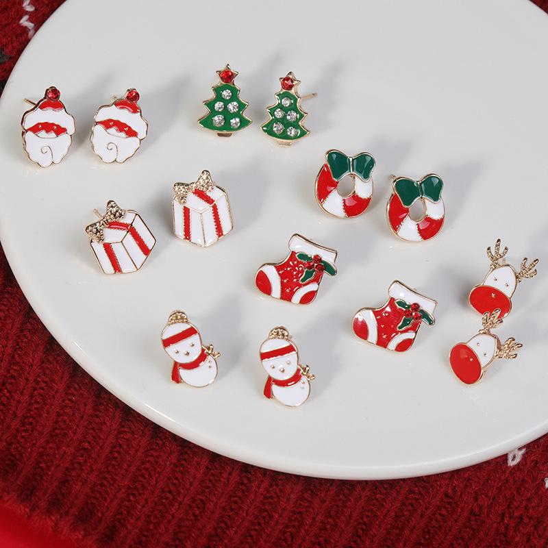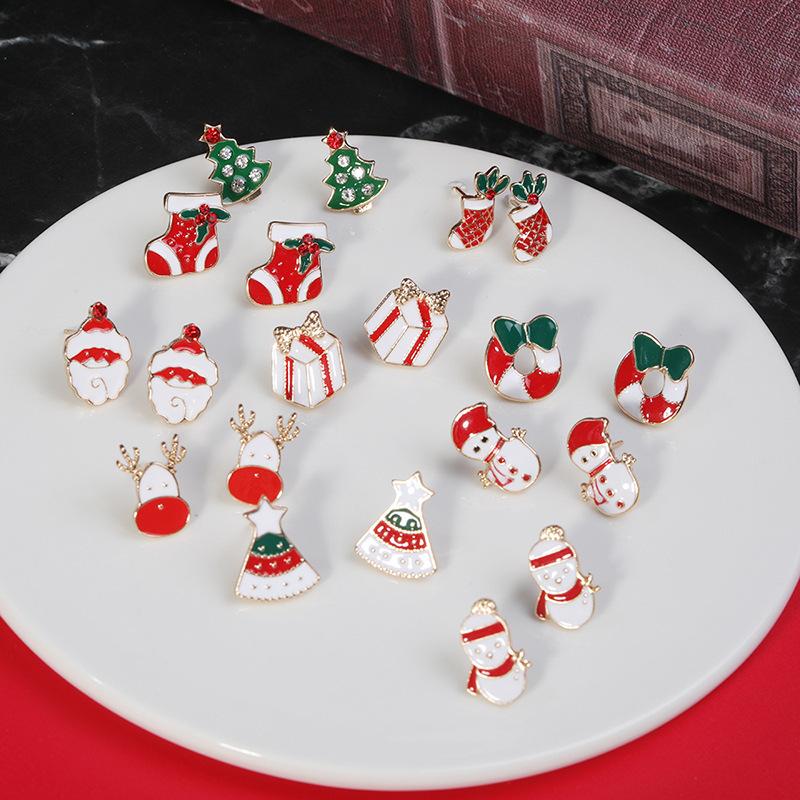 Pendientes de árbol de Navidad europeos y americanos, con copos de nieve y alce, para mujer, regalos de celebración de dibujos animados navideños.