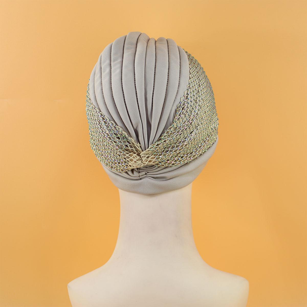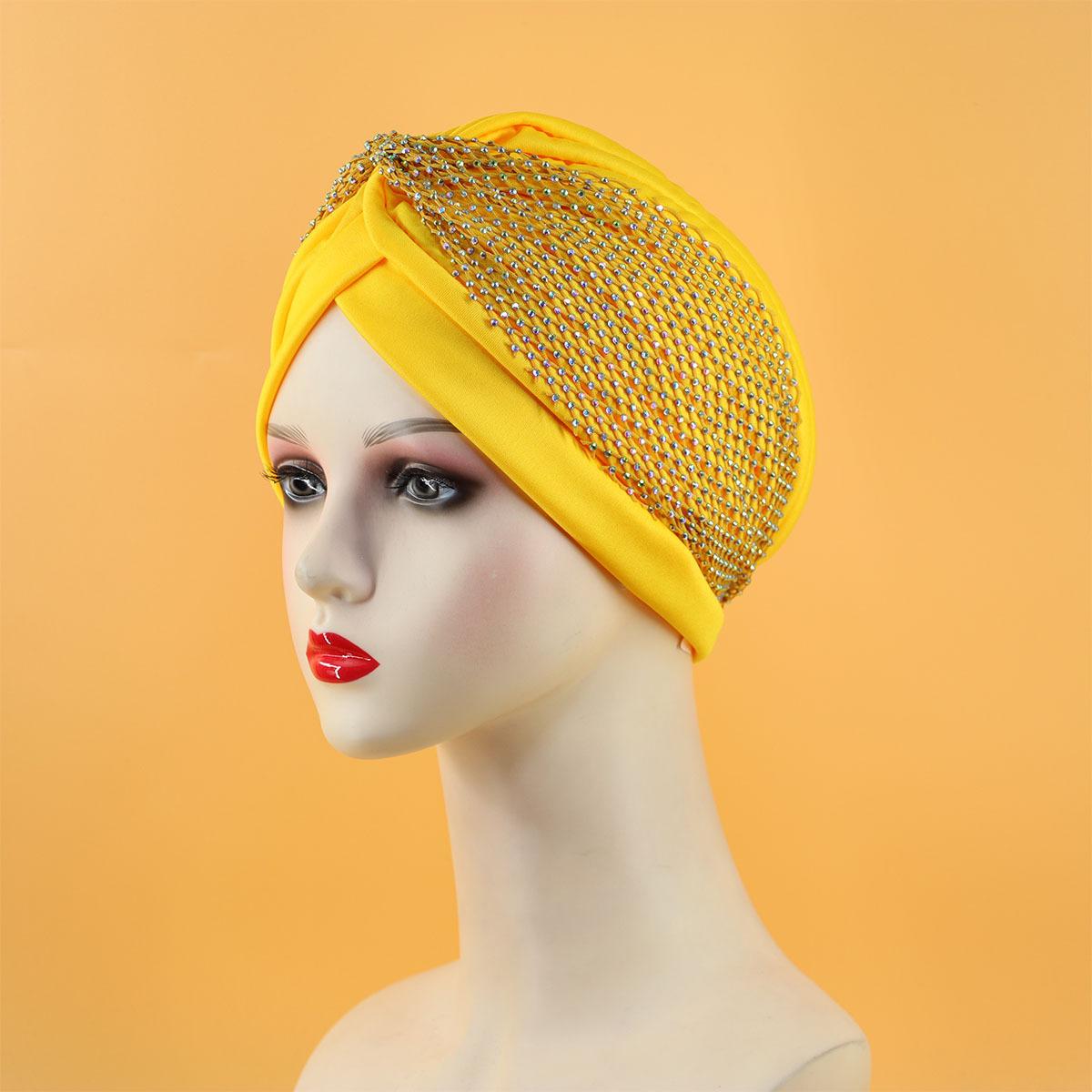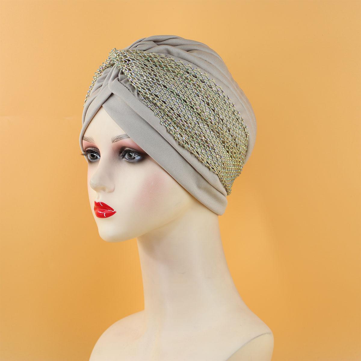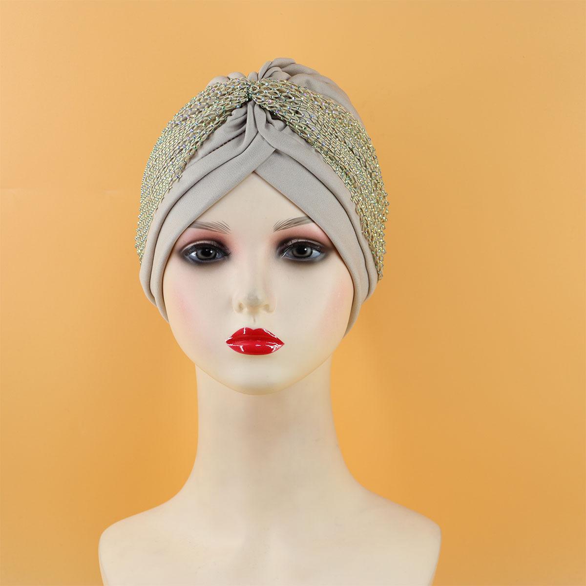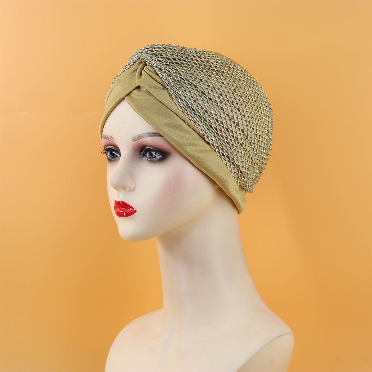 Nuevo Sombrero Musulmán Transfronterizo, Sombrero Turbante de Malla Resistente de Color Sólido con Pedrería, Sombrero Headwrap de Lujo Ligero para Mujer, Sombrero Indio
