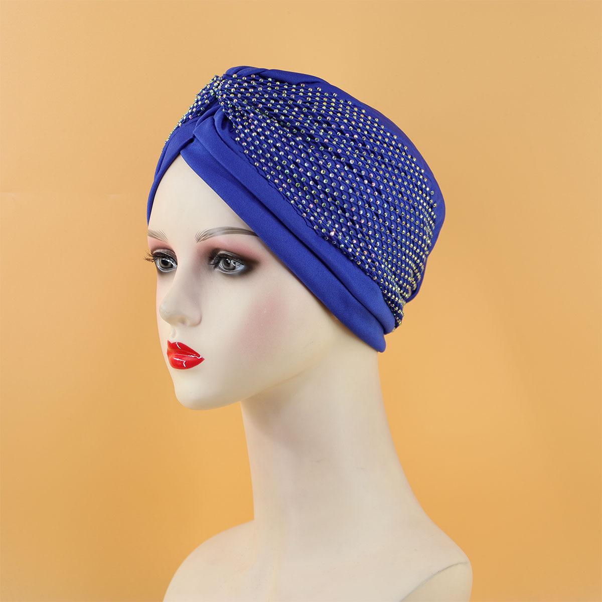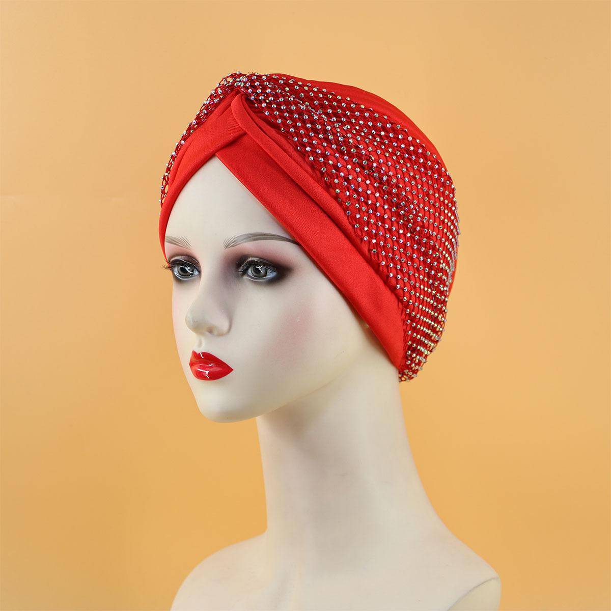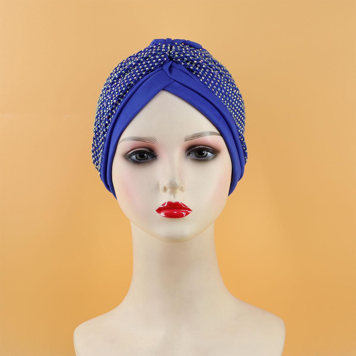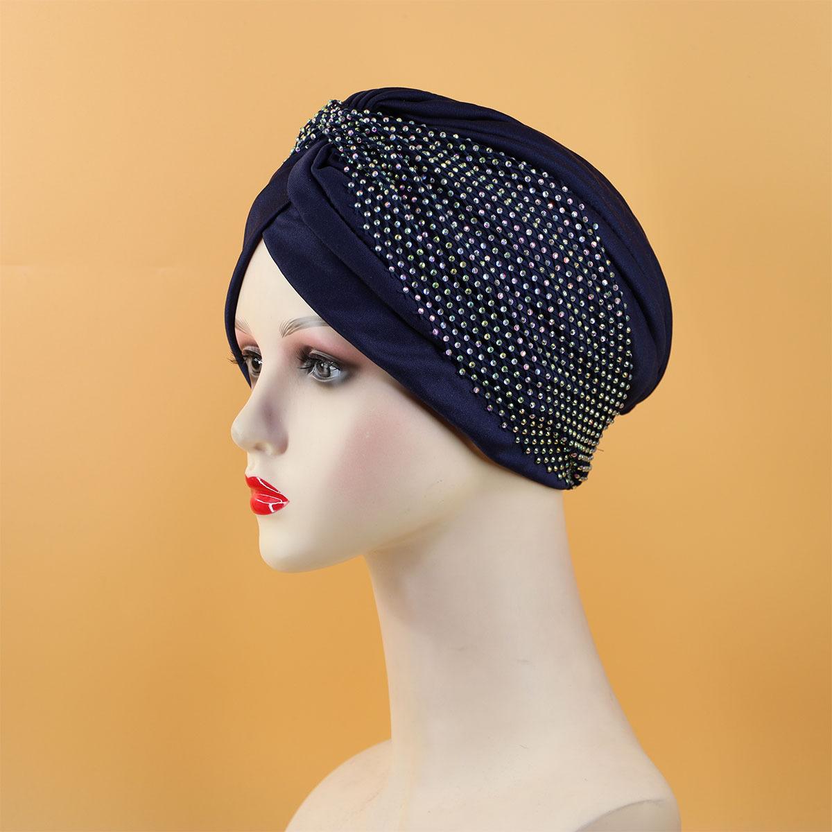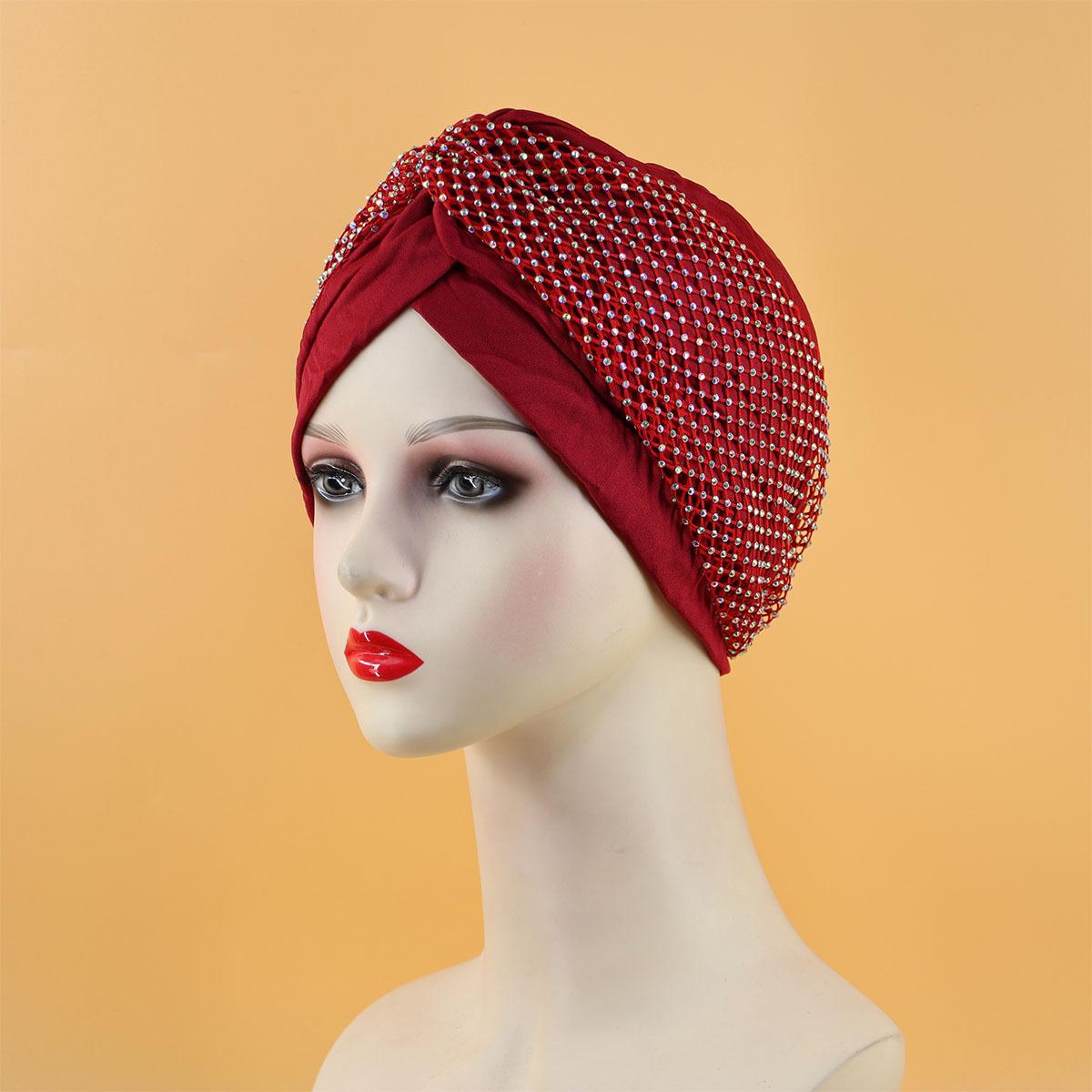 Nuevo Sombrero Musulmán Transfronterizo, Sombrero Turbante de Malla Resistente de Color Sólido con Pedrería, Sombrero Headwrap de Lujo Ligero para Mujer, Sombrero Indio