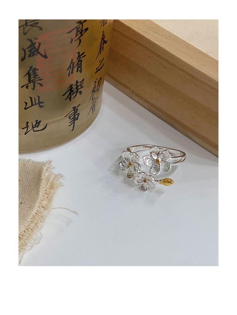 Anillo de Flor Dulce para Mujer Exquisito Pétalo Elegante Moda Personalidad Plata S925 Chapado Anillo Abierto Anillo de Dedo Ins