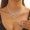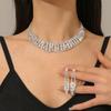 Venta caliente transfronteriza, exquisito collar con cadena de garras, pendientes con diamantes de imitación azul zafiro, traje de dos piezas, cadena de clavícula, accesorios de cena para mujer