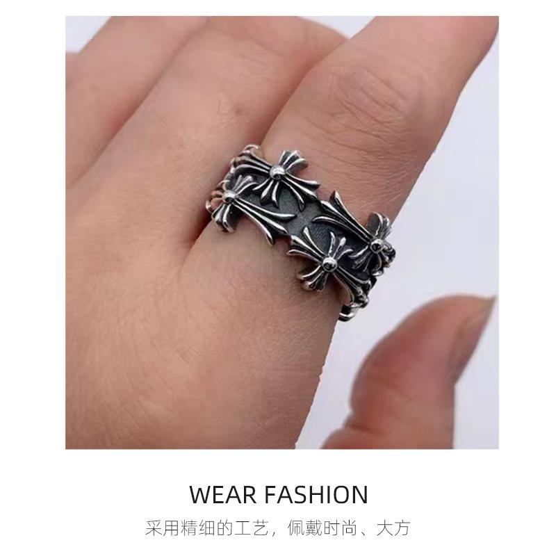 Anillo cruzado doble capa cruzado europeo y americano, personalidad moderna, anillo de pareja, retro, versátil, anillo abierto para el dedo índice