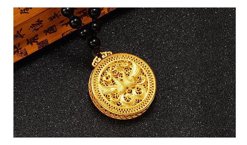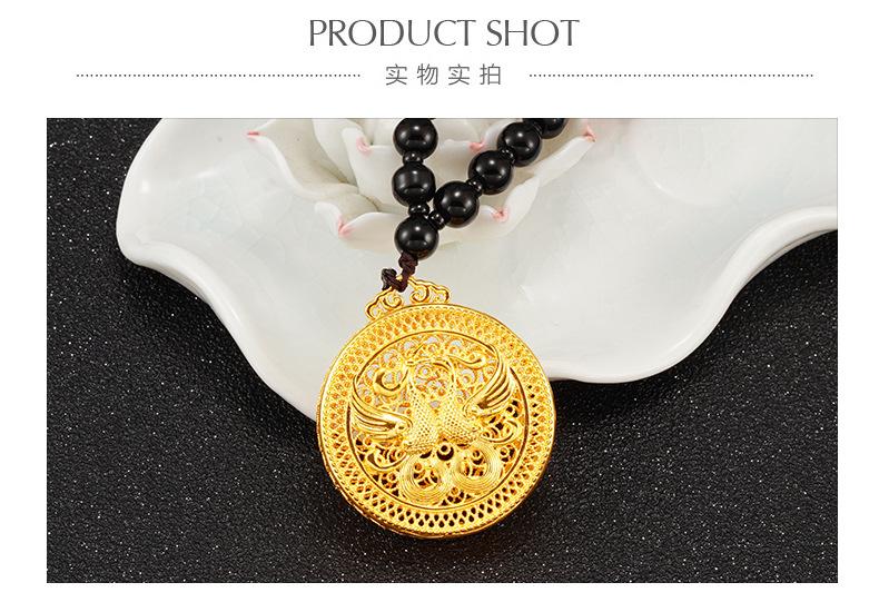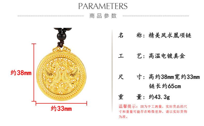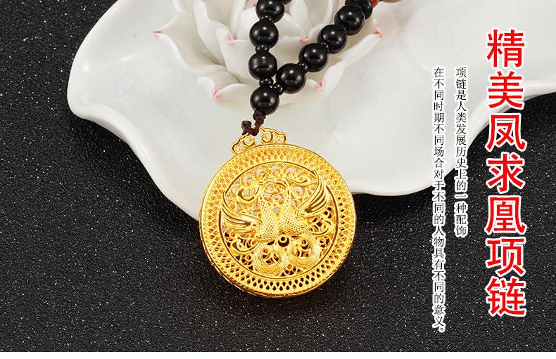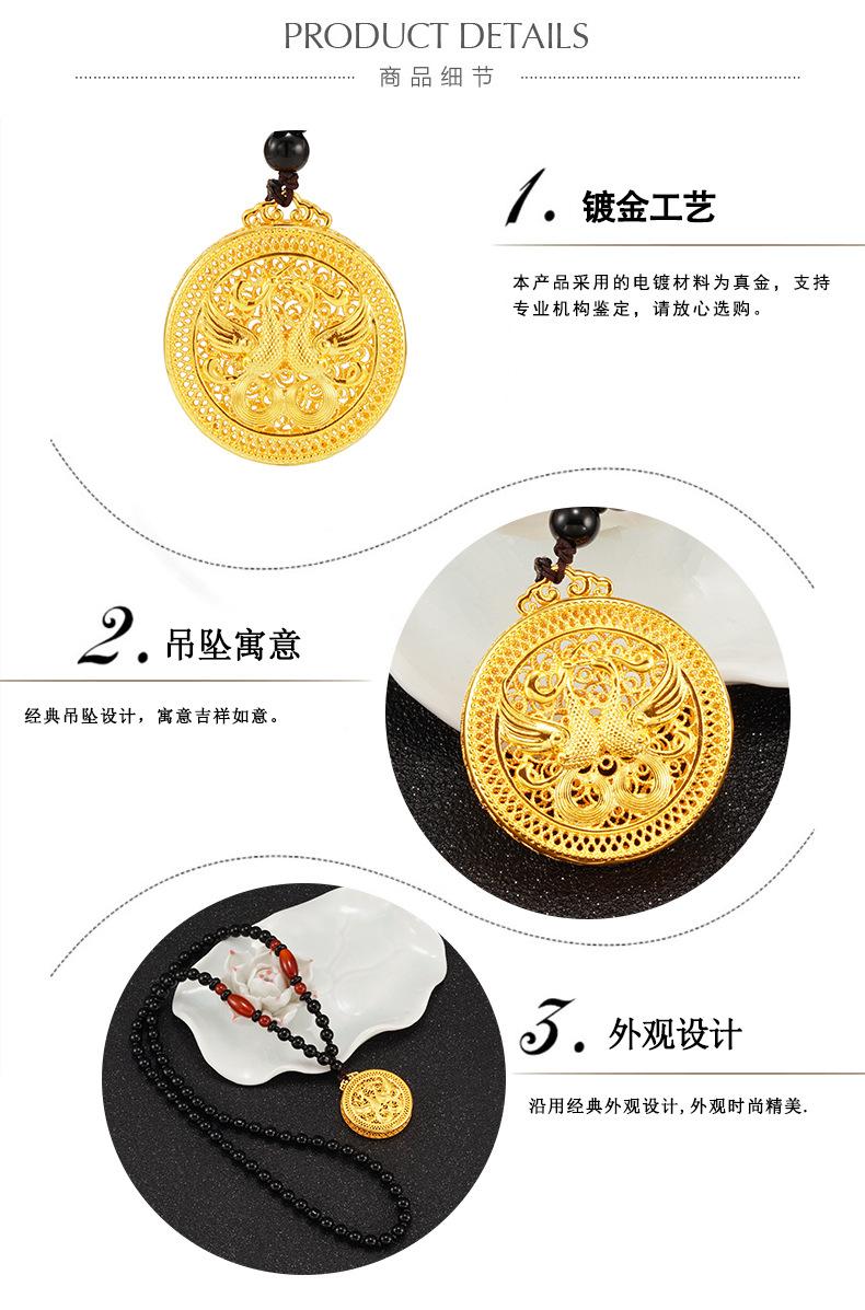 Collar con colgante de Fénix Dorado Xiangyun Choi chapado en cobre estilo étnico 999 pies Oro Sha Regalo de boda para novia