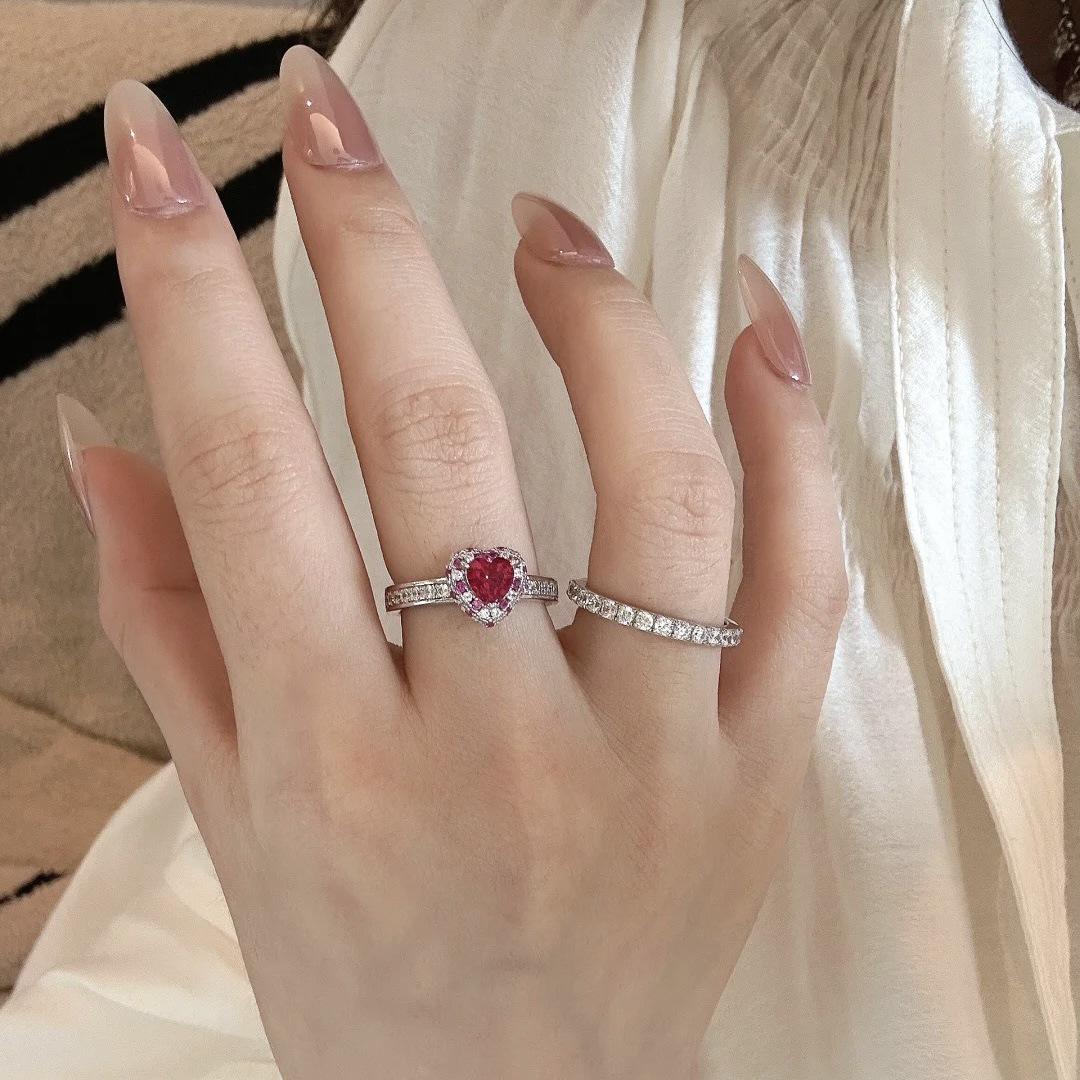 Anillo de lujo ligero y elegante con apertura de alta calidad y diamantes, diseño chic de bayas, atmósfera romántica, personalizado para mujer.