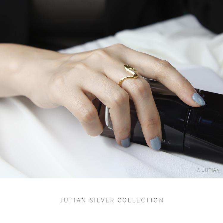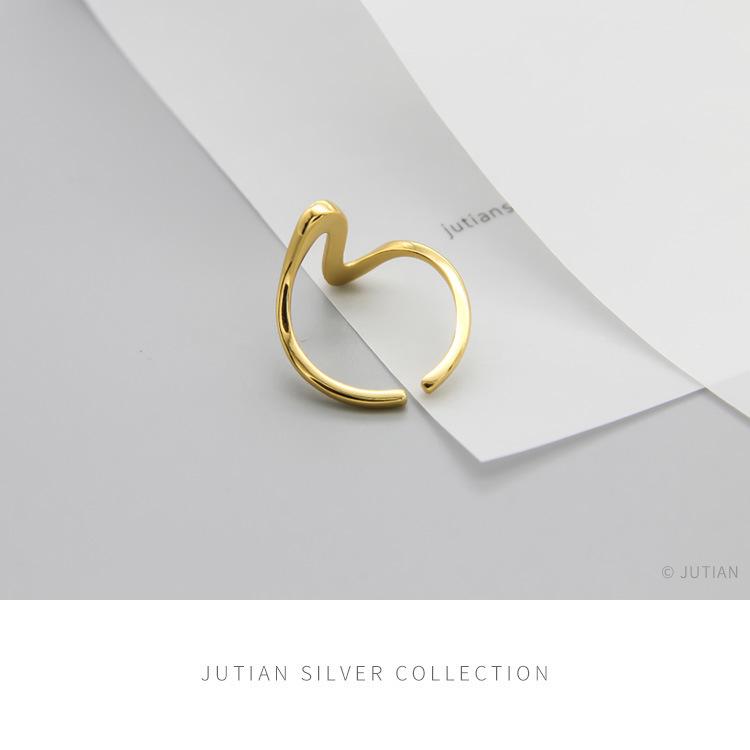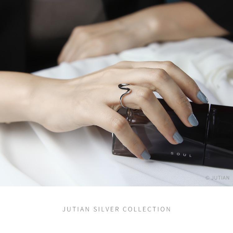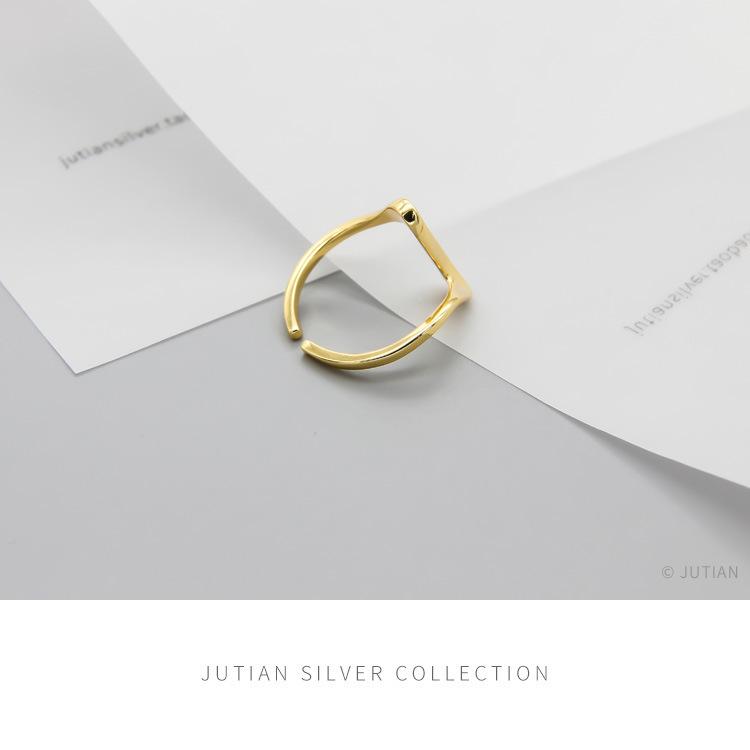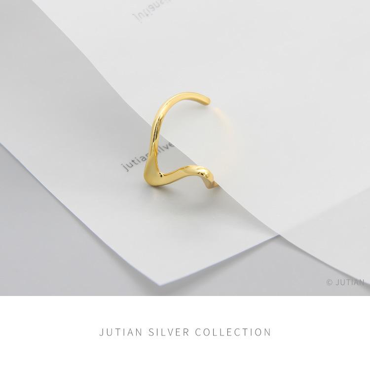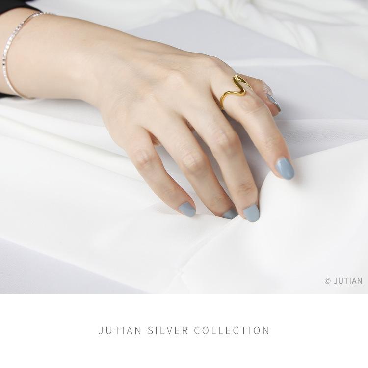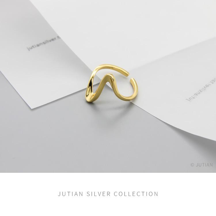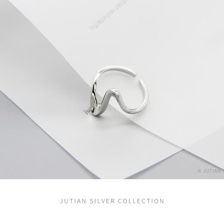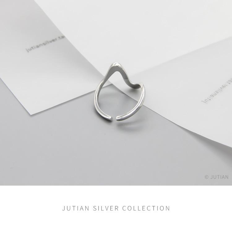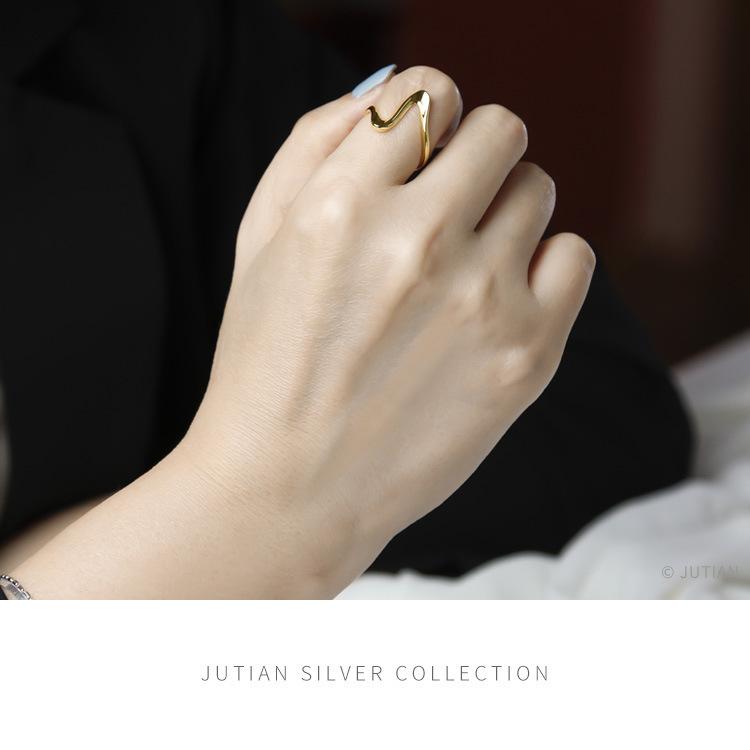 Anillo de Ola Simple Chapado en Plata S925 para Mujer Moda Retro Estilo Frío Anillo Abierto en Forma de V Estilo Coreano Anillo de Dedo Trendy