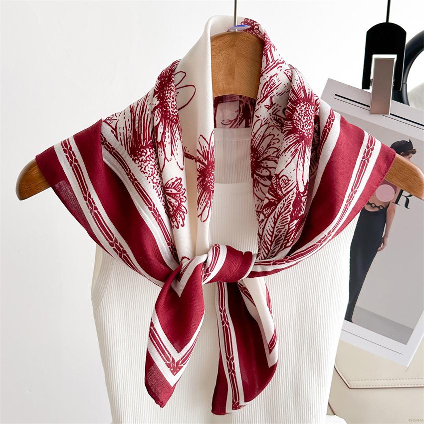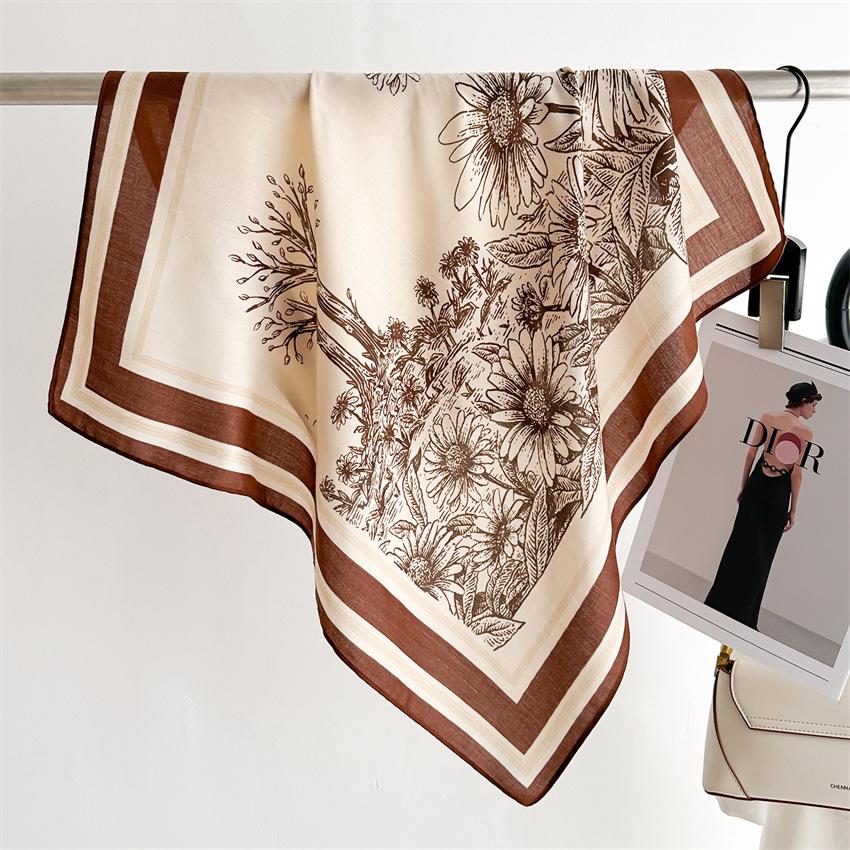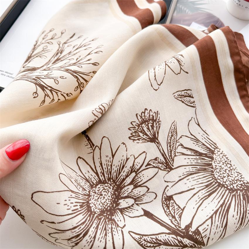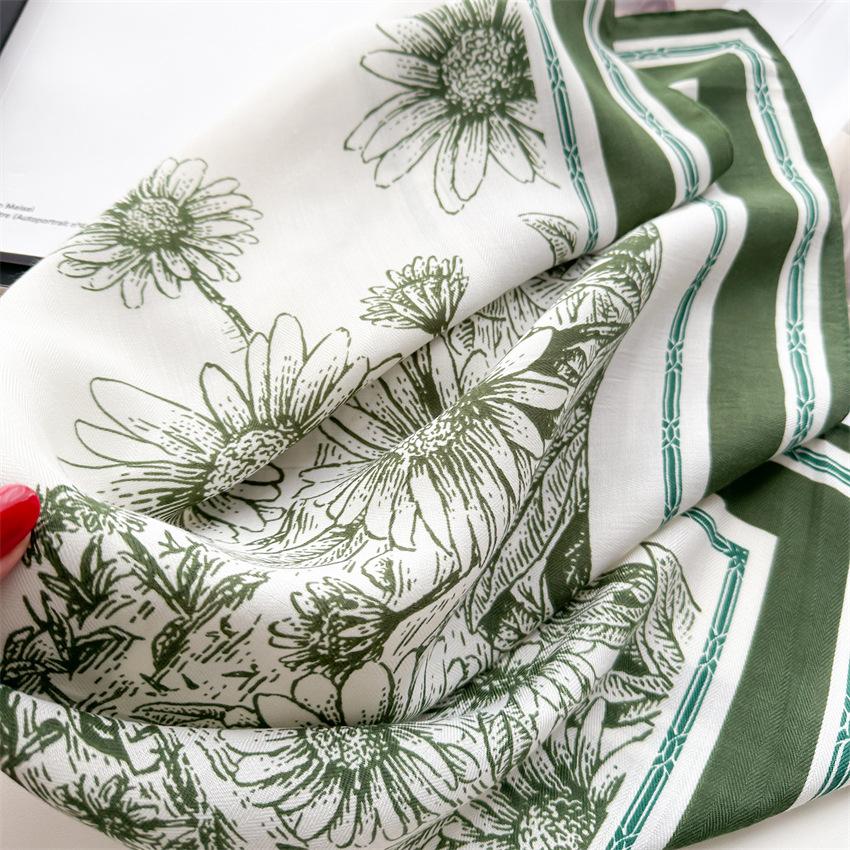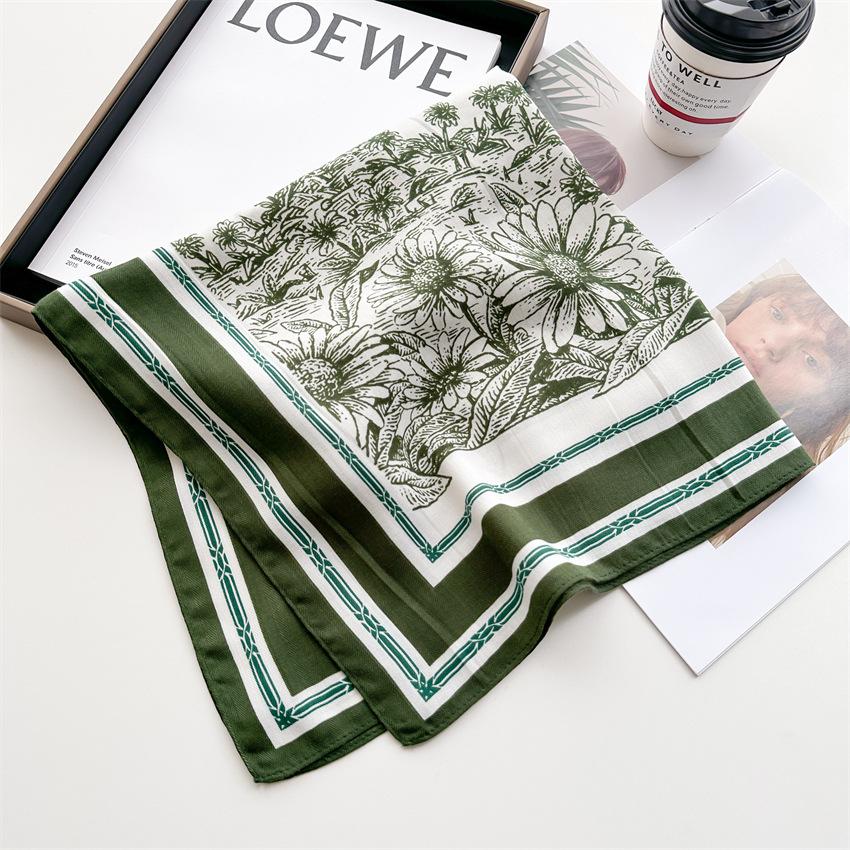 Bufanda de Seda de Moda para Mujer con Estampado Floral de Planta Vintage, Bufanda Pequeña Cuadrada Delgada, Bufanda de Terciopelo Imitación Espiga para Mujer