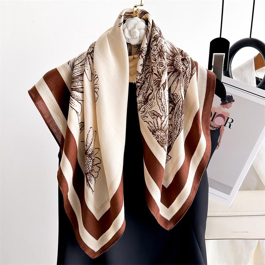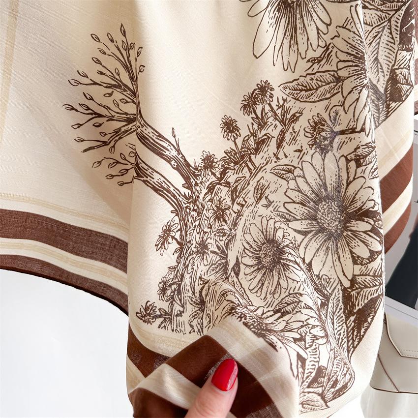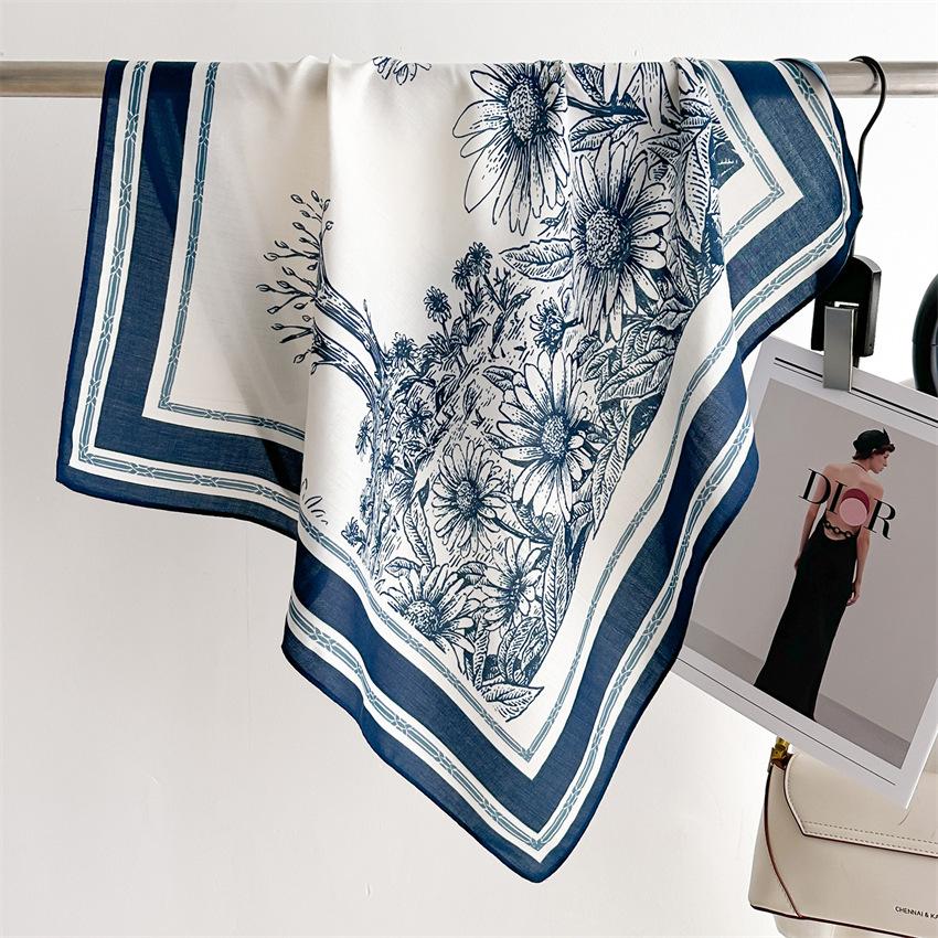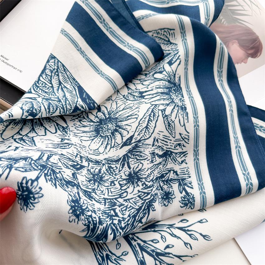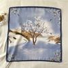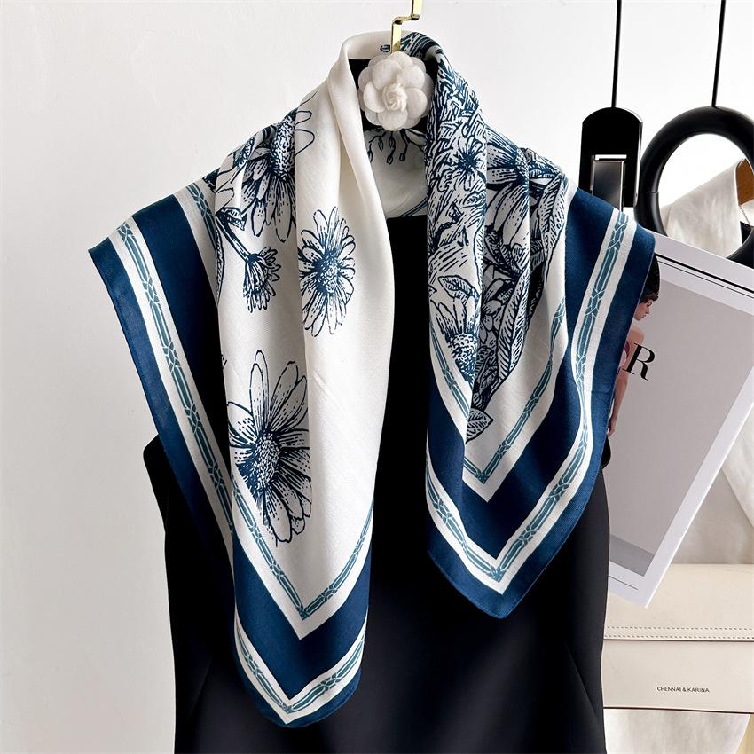 Bufanda de Seda de Moda para Mujer con Estampado Floral de Planta Vintage, Bufanda Pequeña Cuadrada Delgada, Bufanda de Terciopelo Imitación Espiga para Mujer