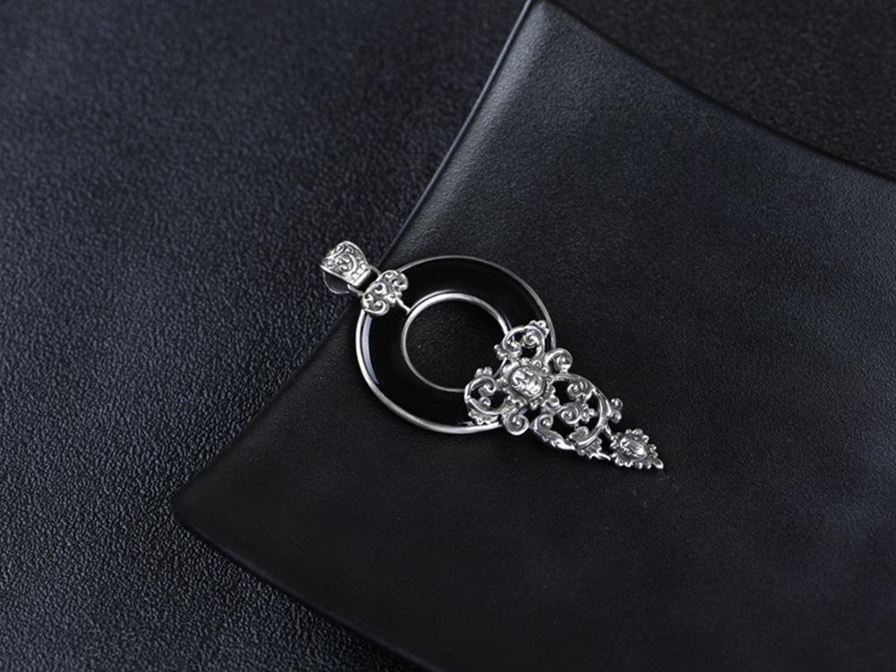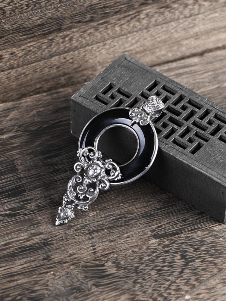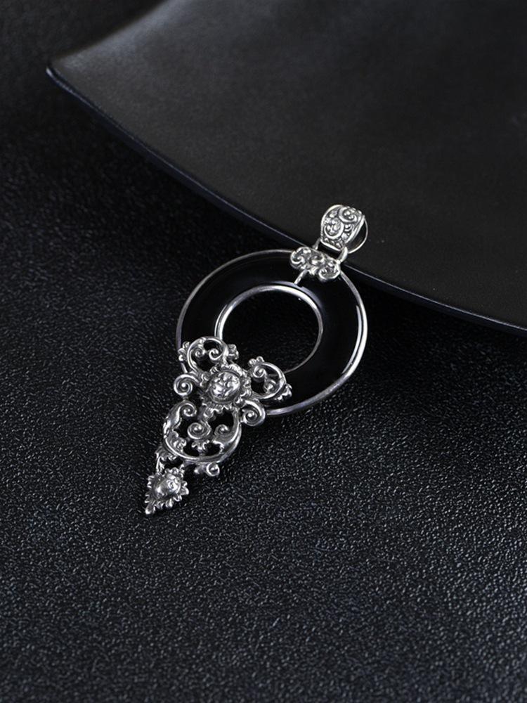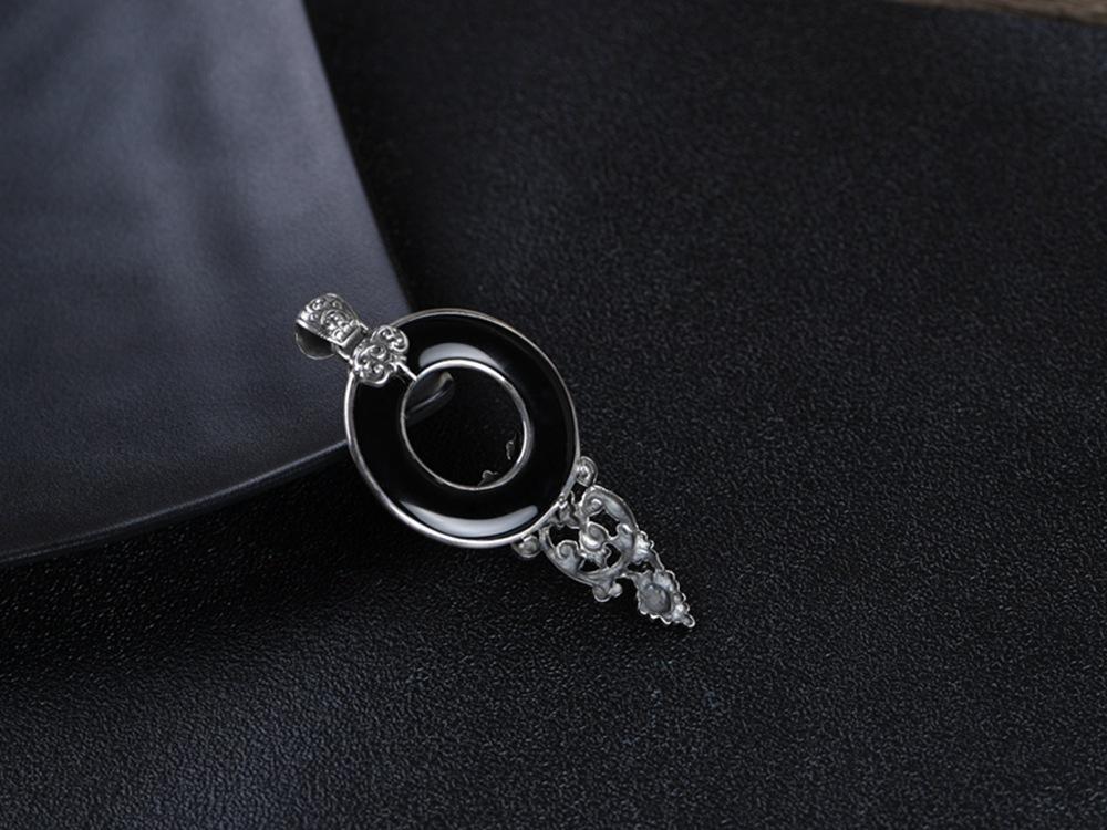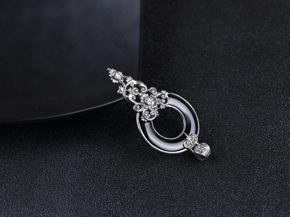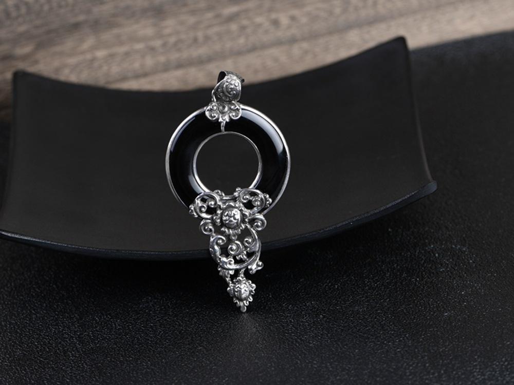 Colgante de plata S925 con diseño de ciervo dorado, estilo vintage, clásico, de moda, con ónix negro tallado largo para mujer.