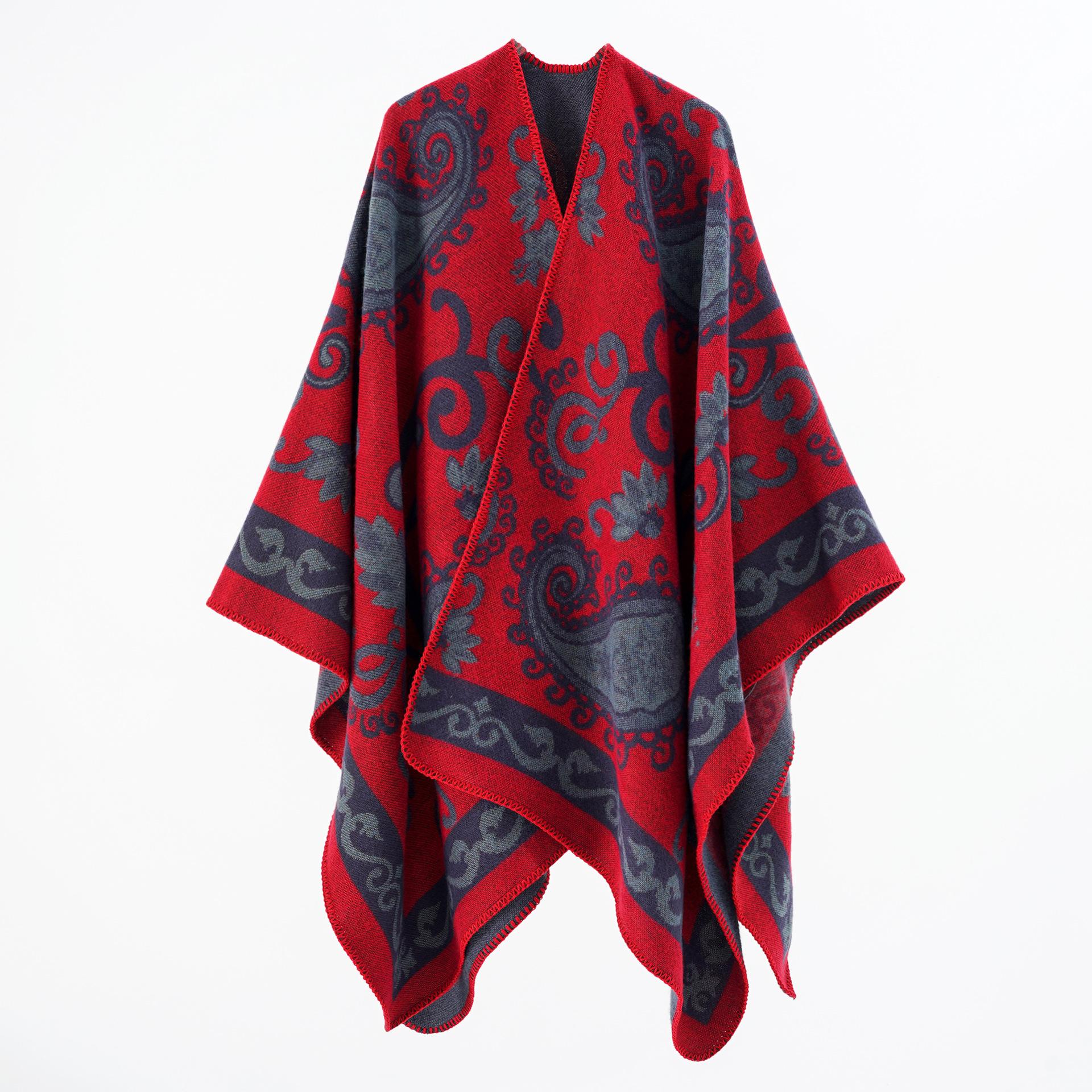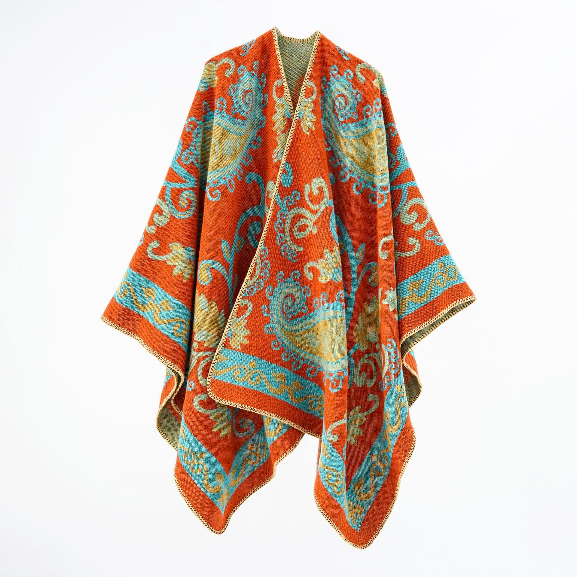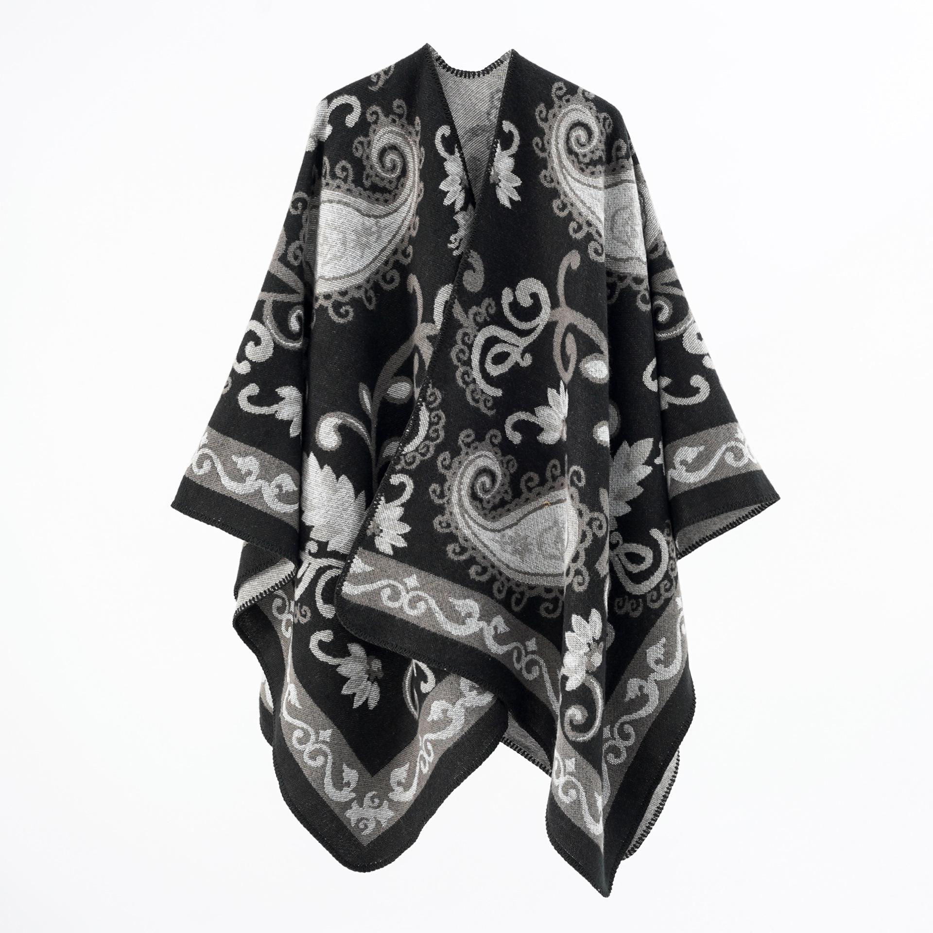 • Nuevo chal dividido cálido de moda de estilo étnico europeo y americano de otoño e invierno, capa de cachemira de imitación, bufanda floral, chal femenino
