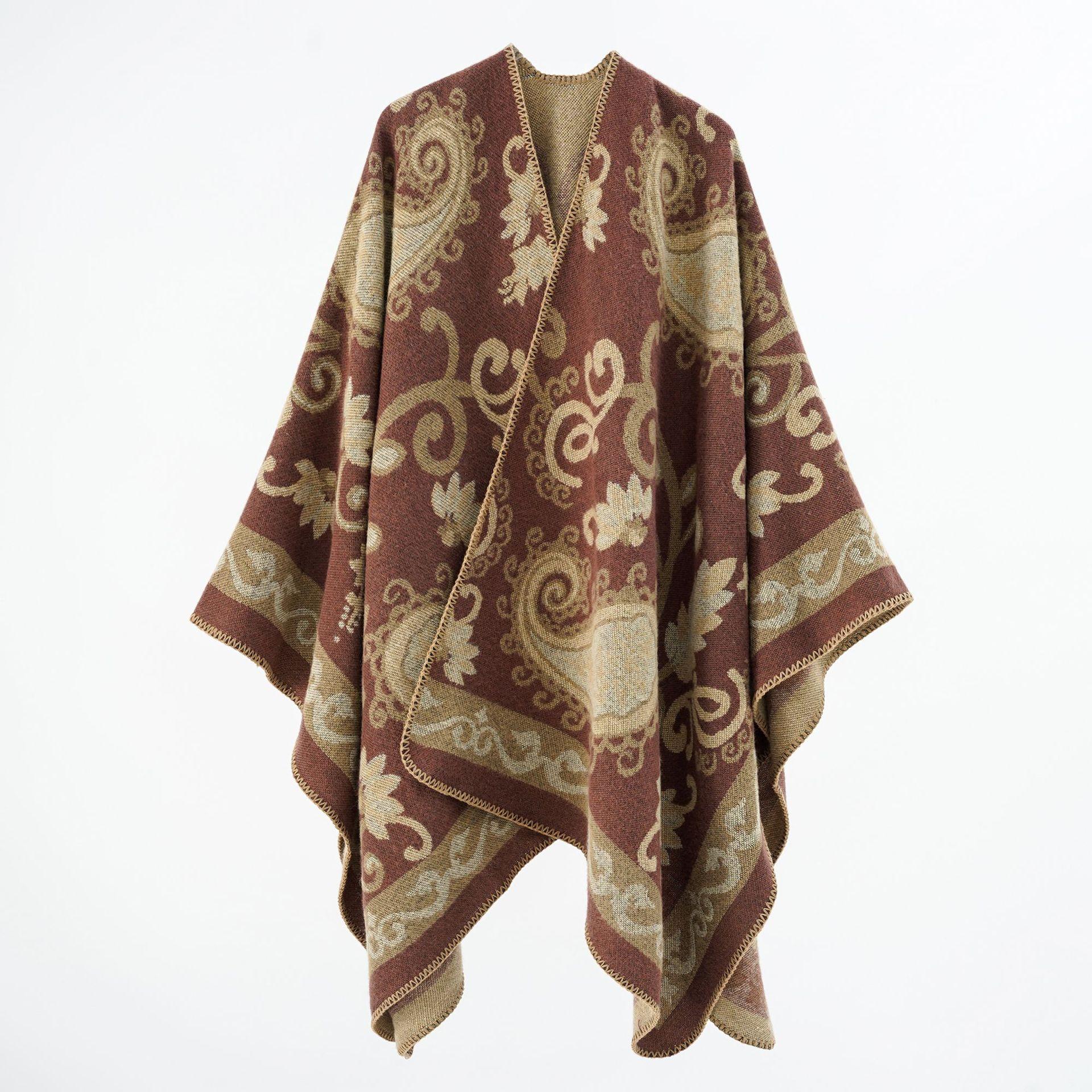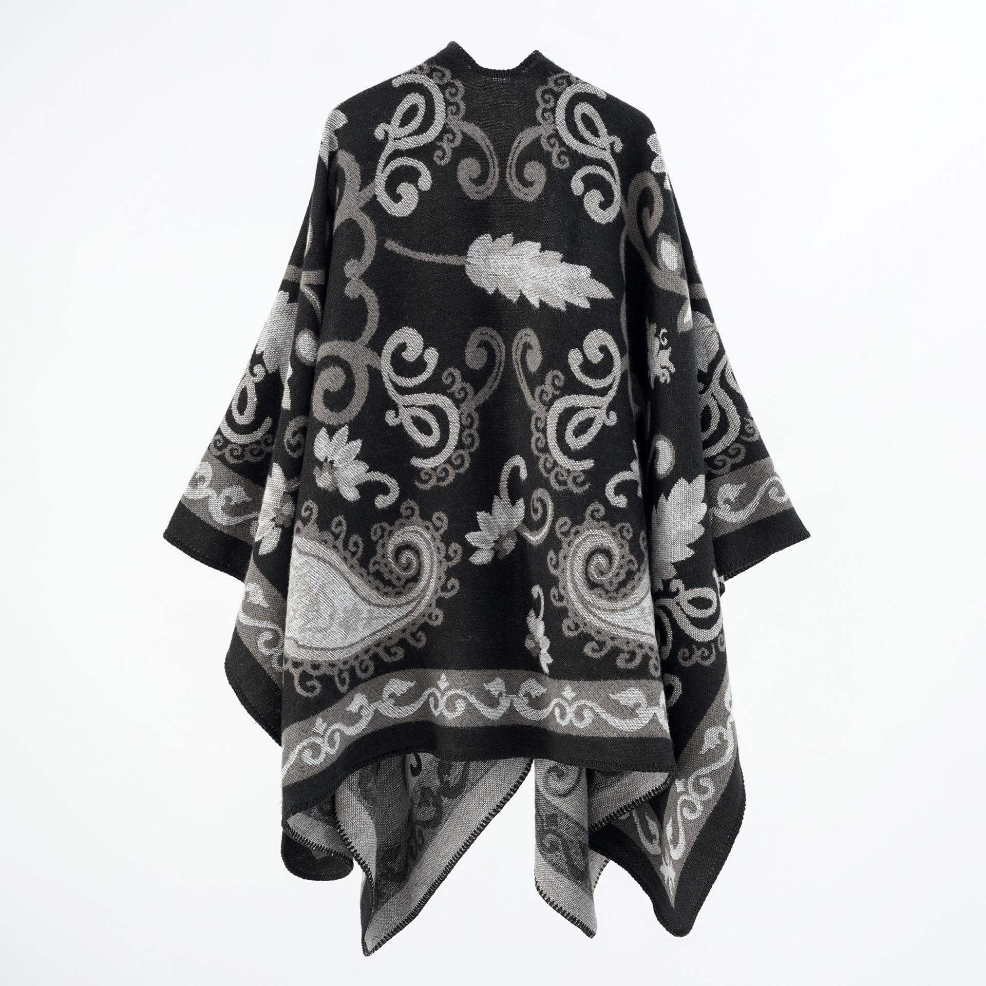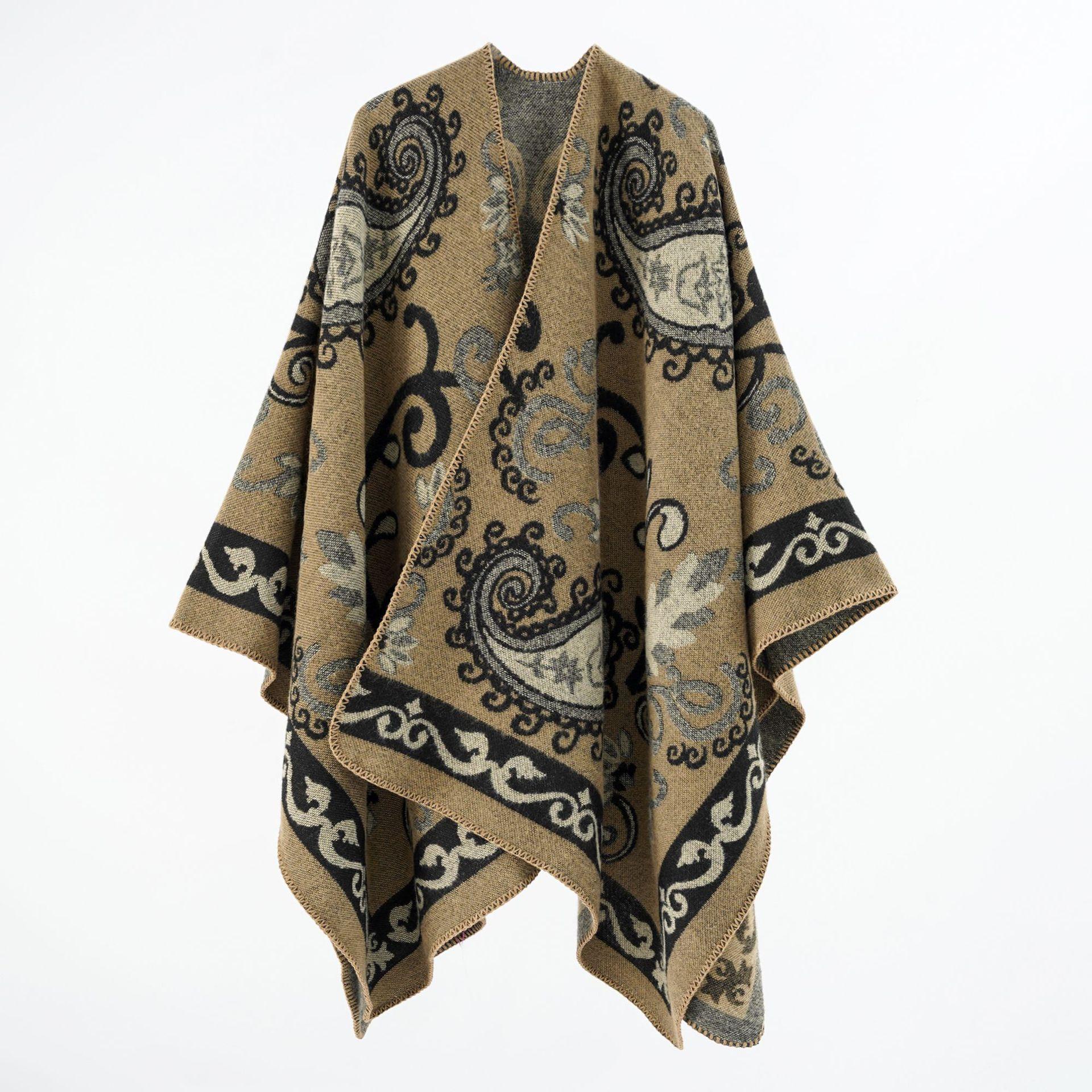 • Nuevo chal dividido cálido de moda de estilo étnico europeo y americano de otoño e invierno, capa de cachemira de imitación, bufanda floral, chal femenino