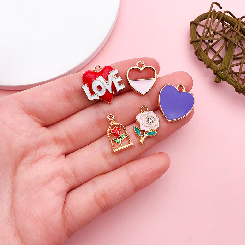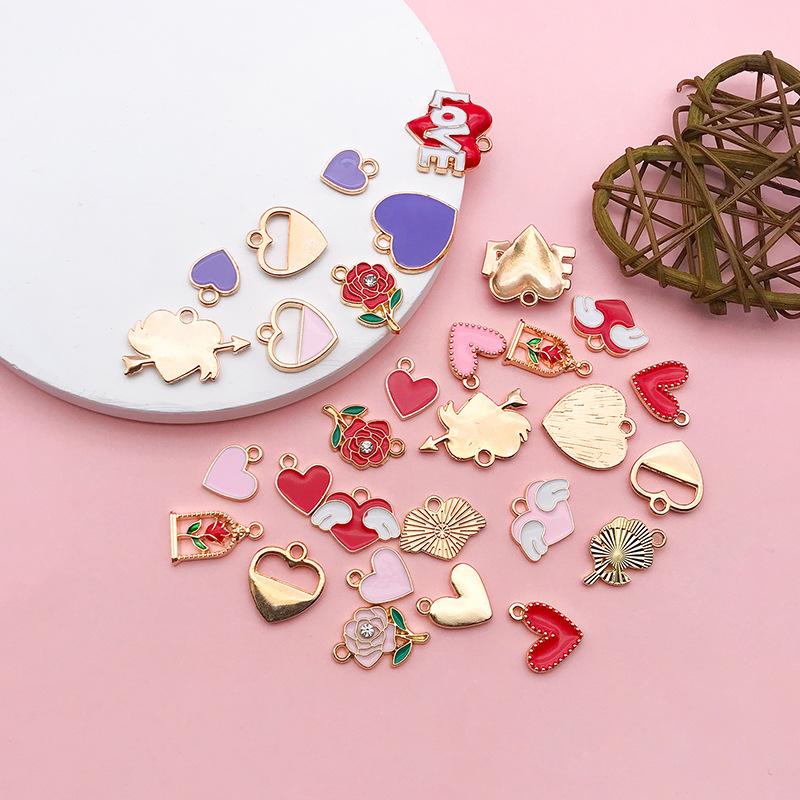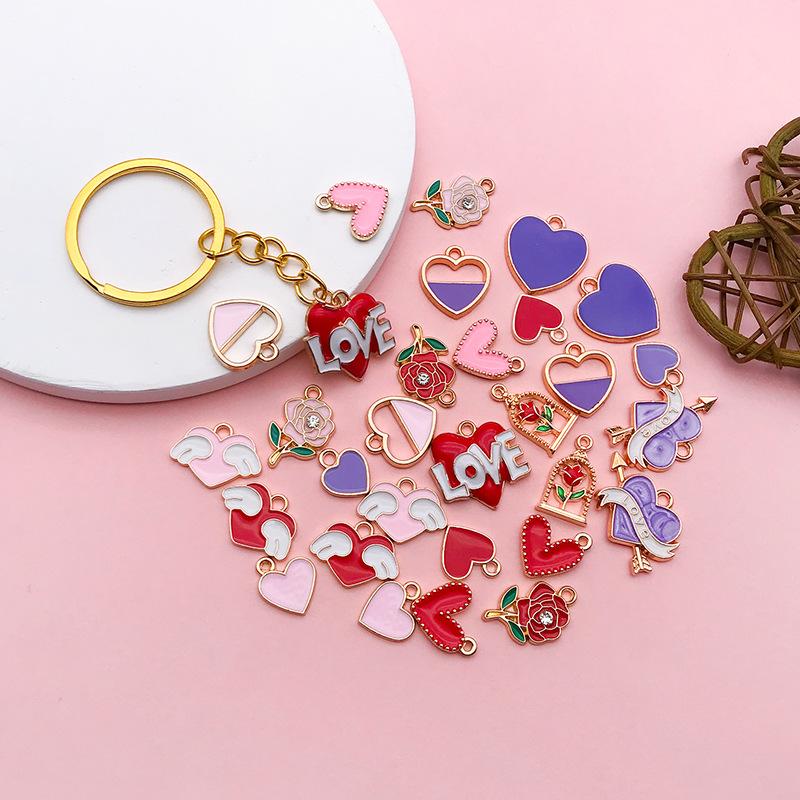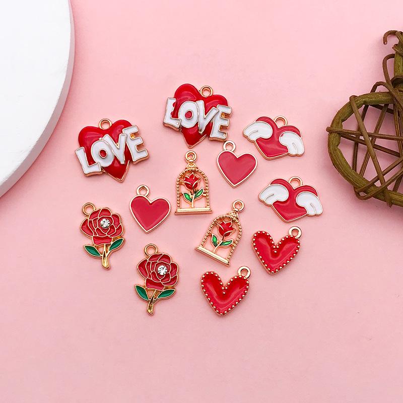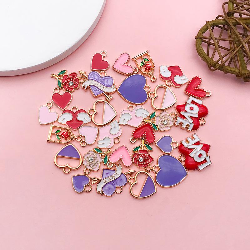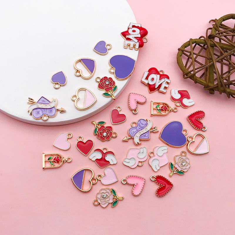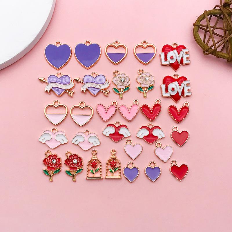nombre:Gota de aceite para San Valentín, flor de amor, rojo, rosa, morado, 15 estilos, 2 piezas cada uno