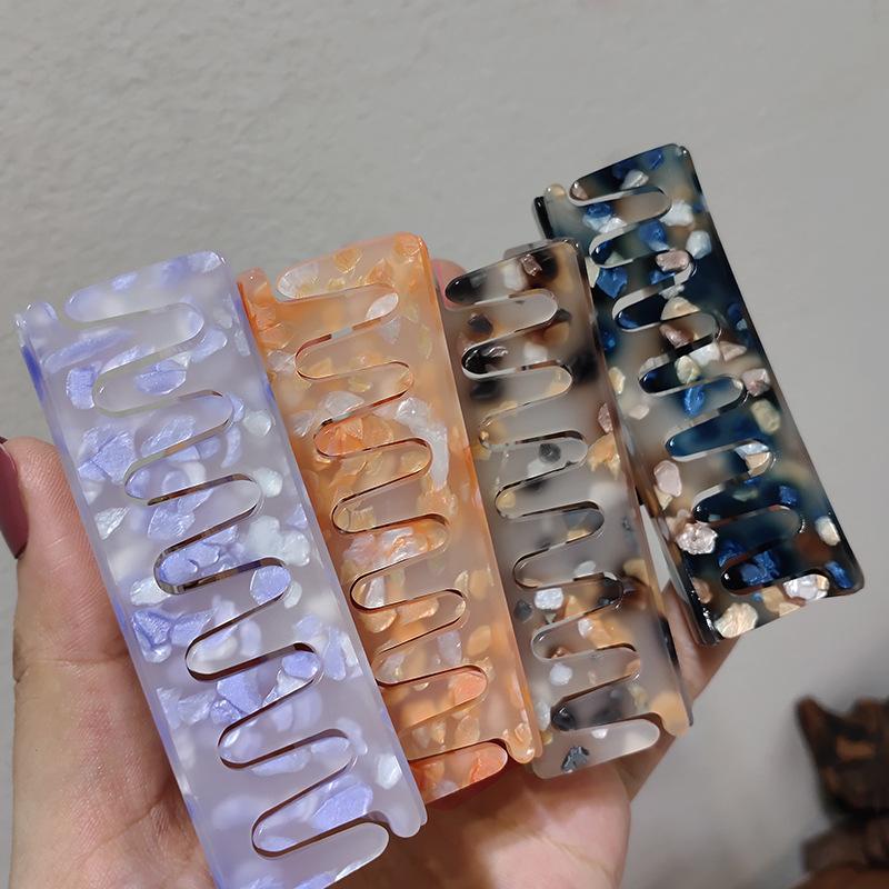 Pinza para el cabello coreana con textura de placa de ácido acético elegante elegante para la parte posterior de la cabeza, pinza geométrica hueca de acrílico
