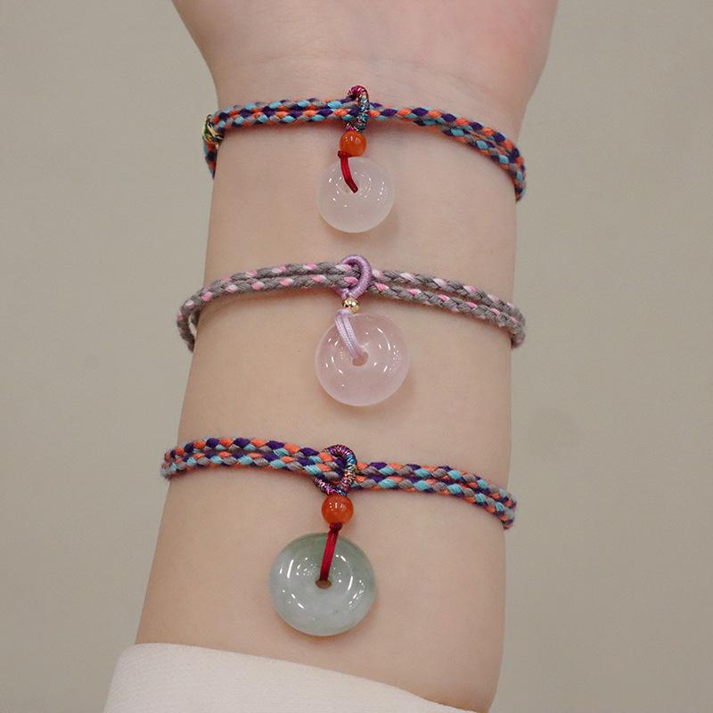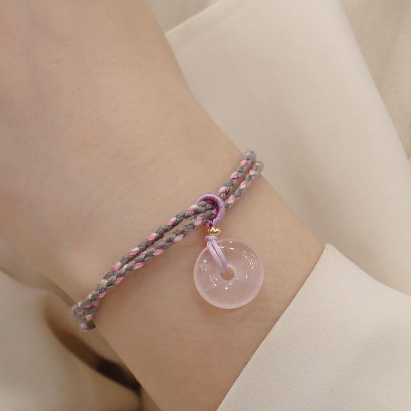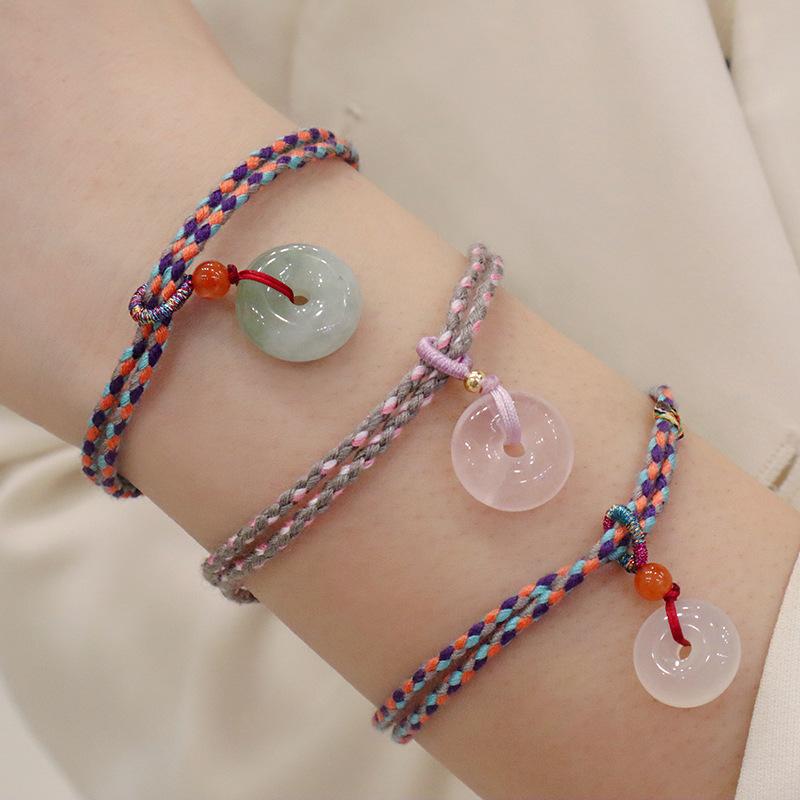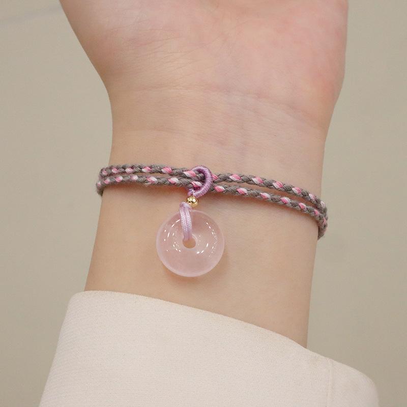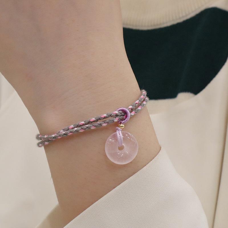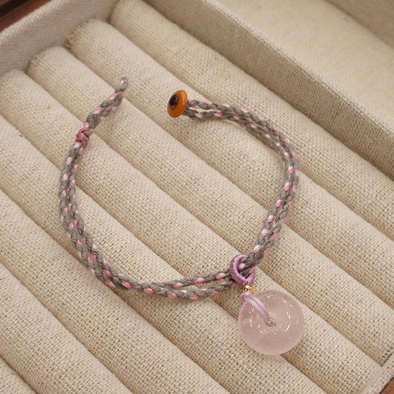 Double Rope Chalcedony Peace Buckle Hand Rope, Double Rope Jade Peace Buckle Hand Rope, Double Rope Pink Cryst...