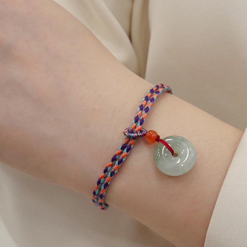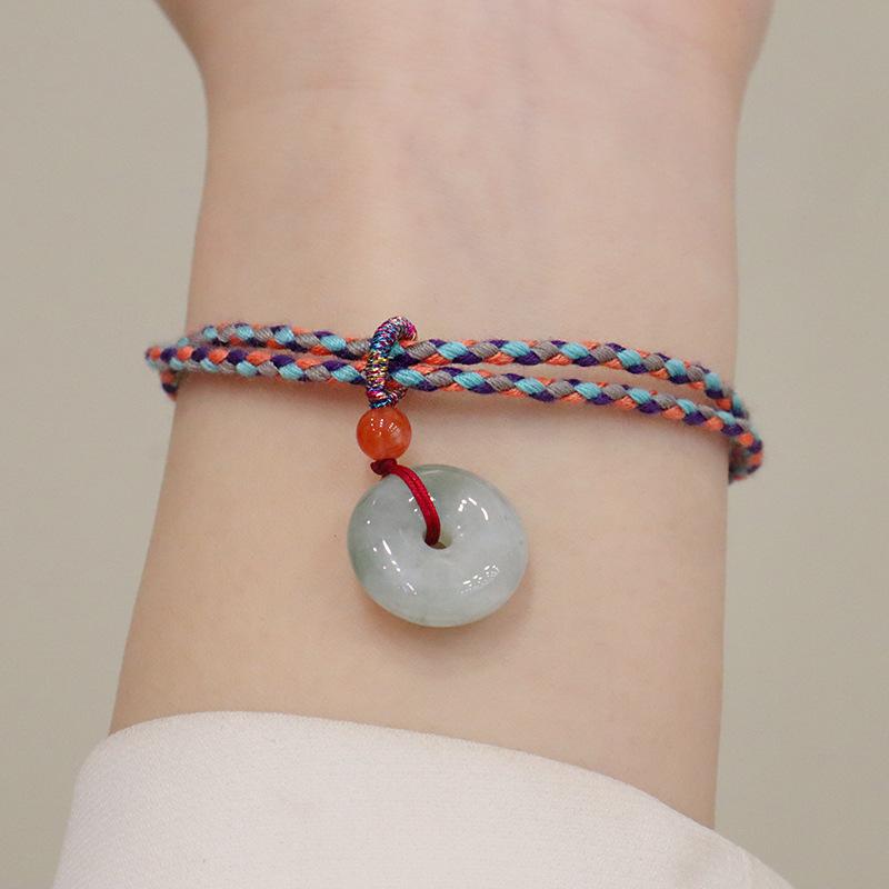 Hebilla de seguridad de jade calcedonia natural bicolor tejida a mano cuerda de mano pulsera de pareja para hombre y mujer al por mayor