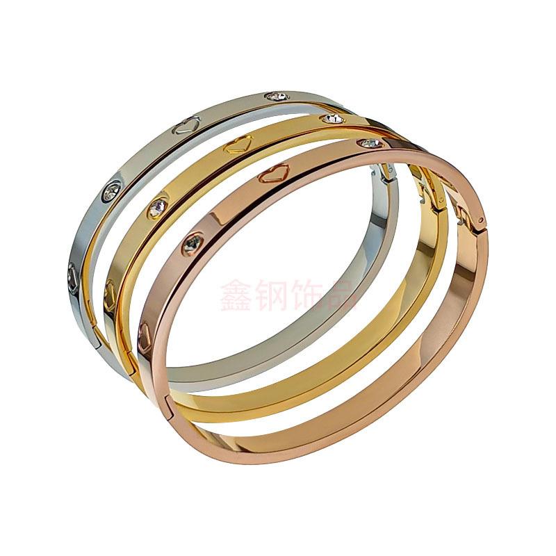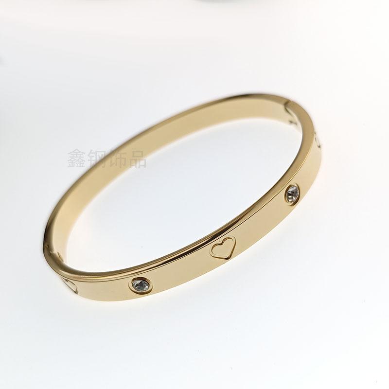 Steel heart-shaped diamond bracelet, Gold love diamond bracelet, Rose gold Love diamond bracelet