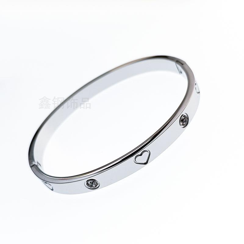 Steel heart-shaped diamond bracelet