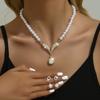Aretes de Moda para Mujer Collar Joyería Juego de Dos Piezas Cadena de Garra Joyería Nupcial Simple Regalo de Fiesta de Cumpleaños Perlas
