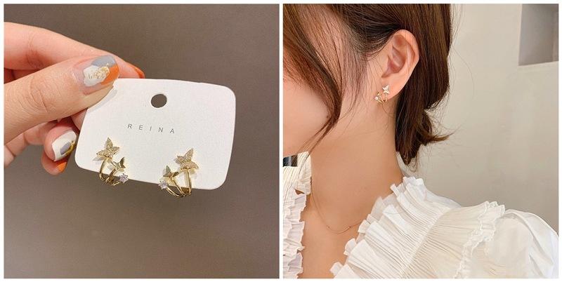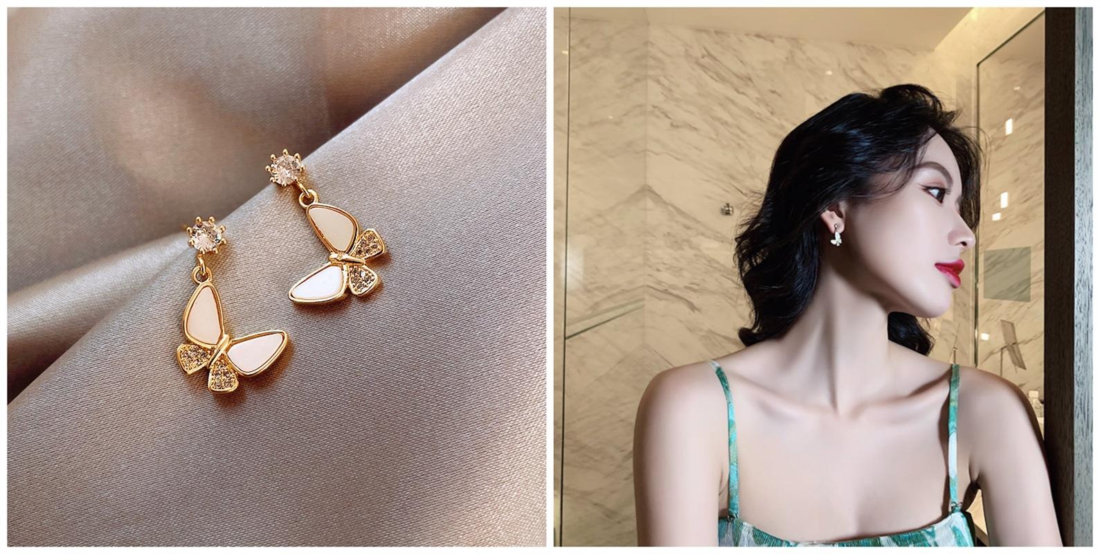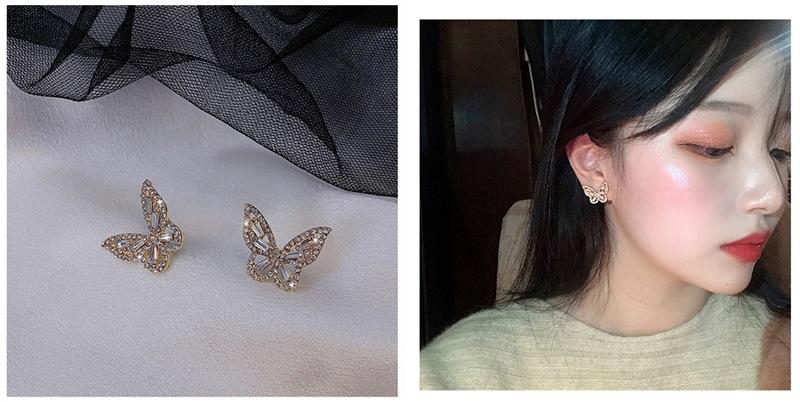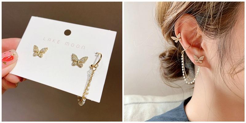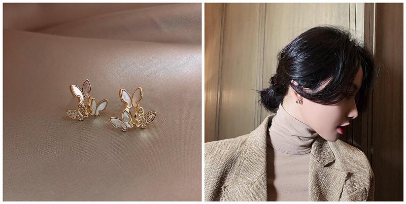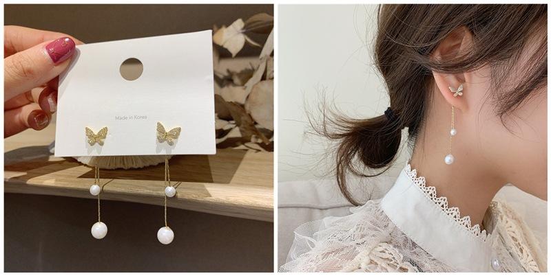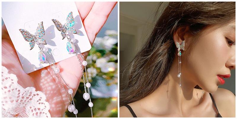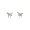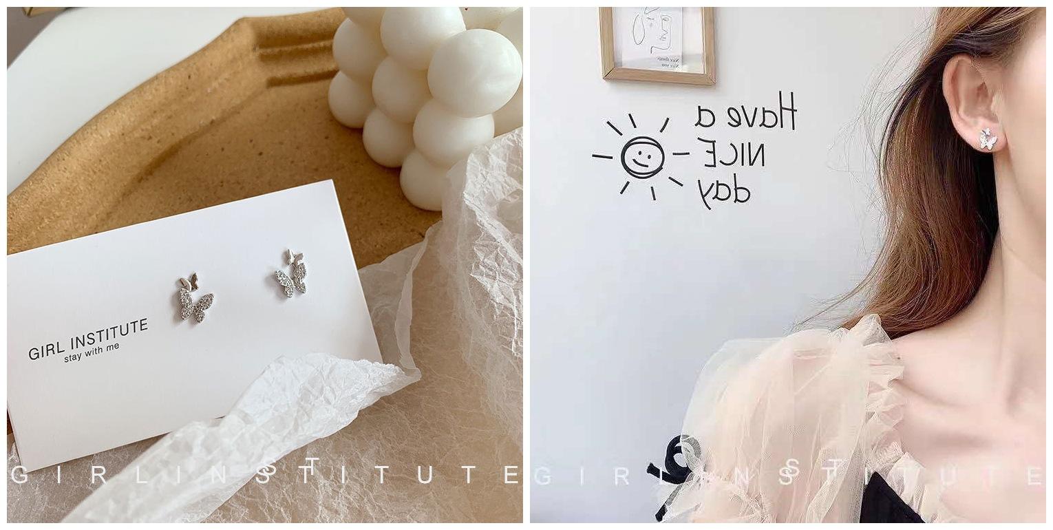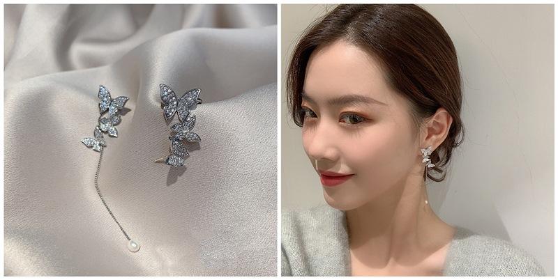 Pendientes coreanos de aguja de plata s925 con diseño de mariposa y diamantes, modernos y sencillos, con clip de perla, estilo retro.
