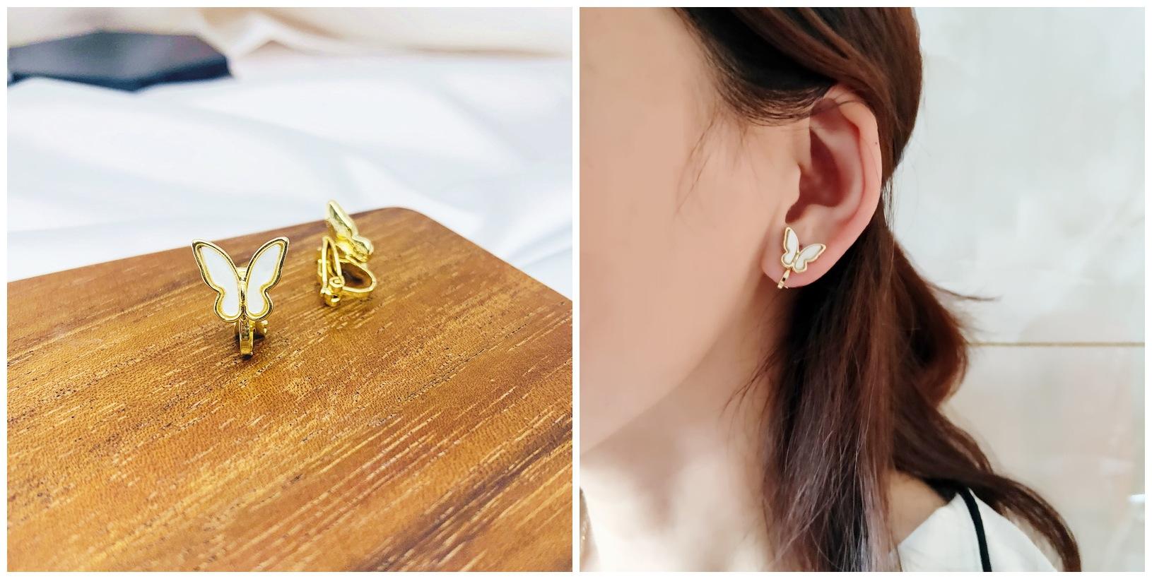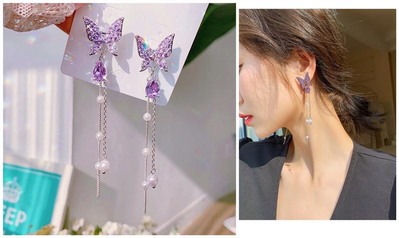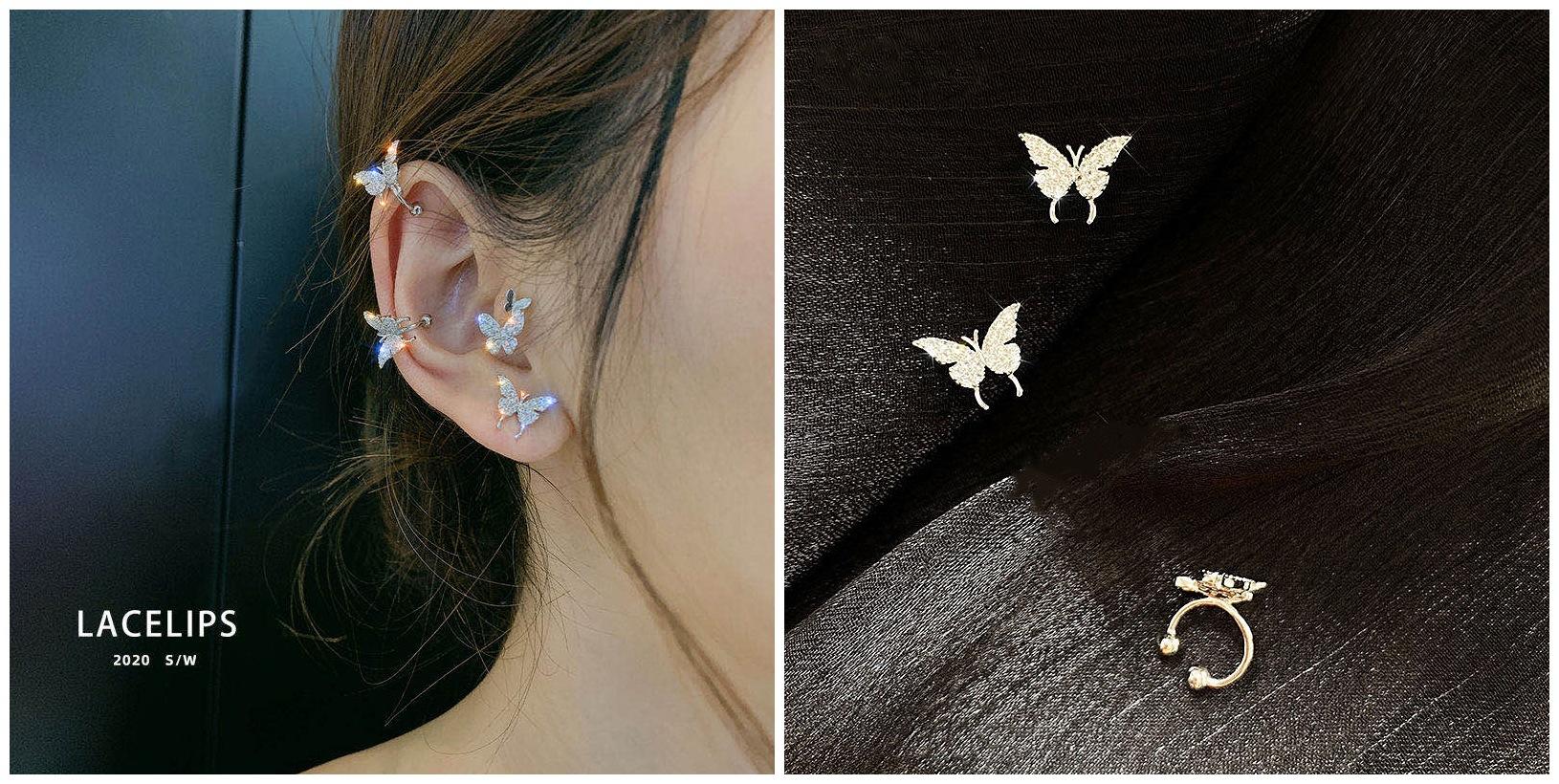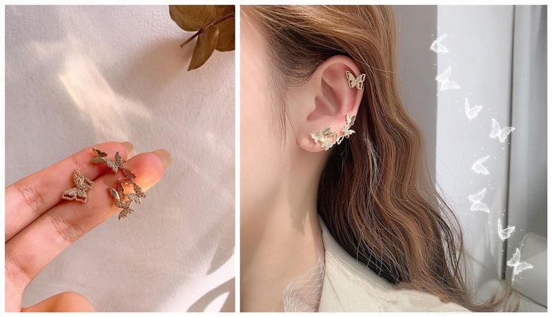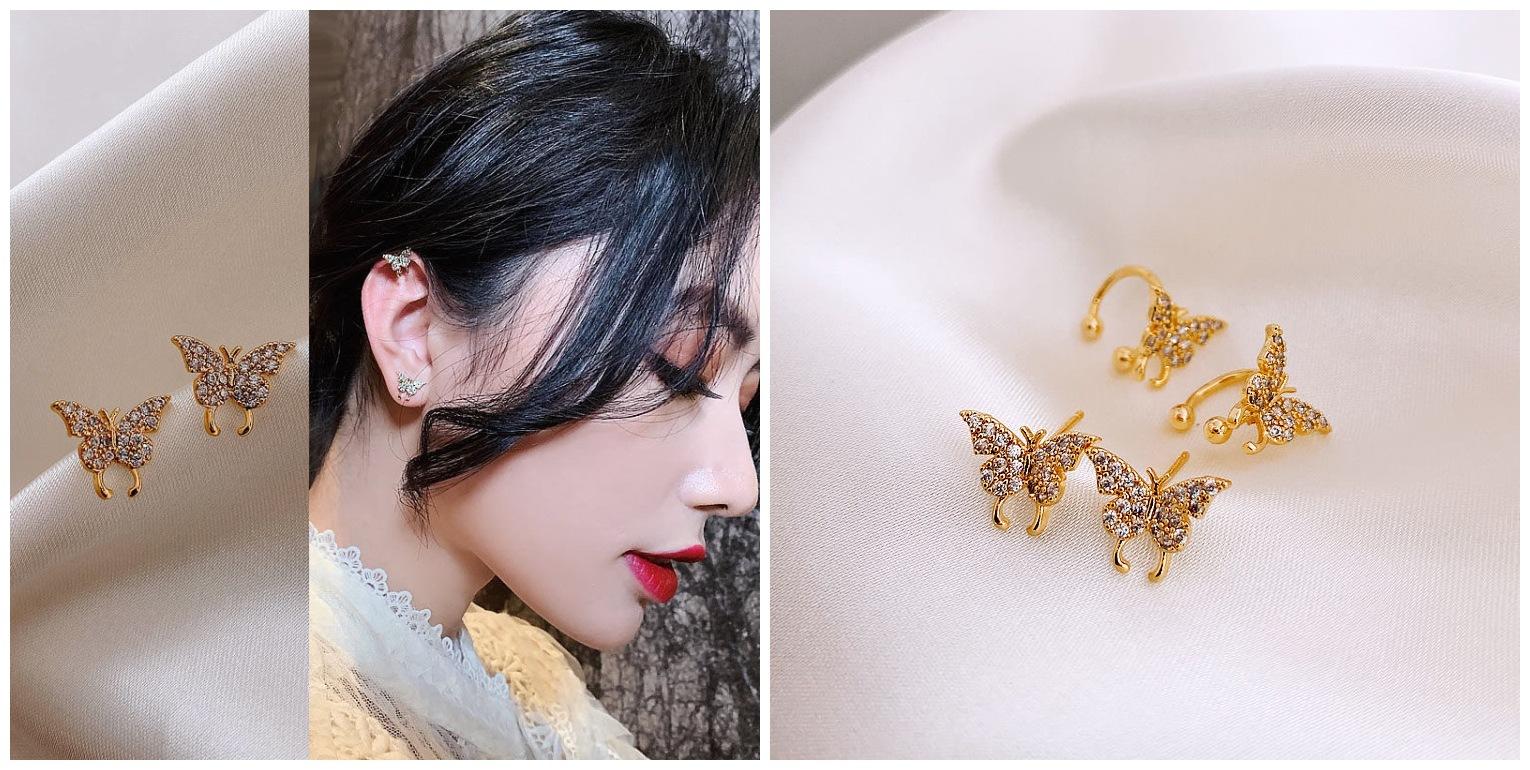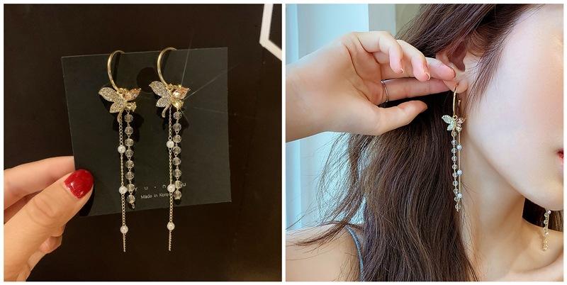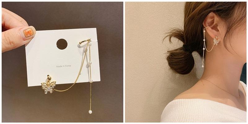 Pendientes coreanos de aguja de plata s925 con diseño de mariposa y diamantes, modernos y sencillos, con clip de perla, estilo retro.