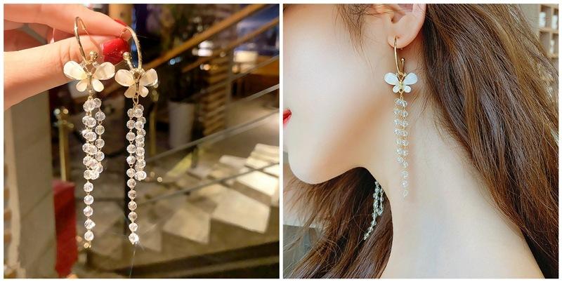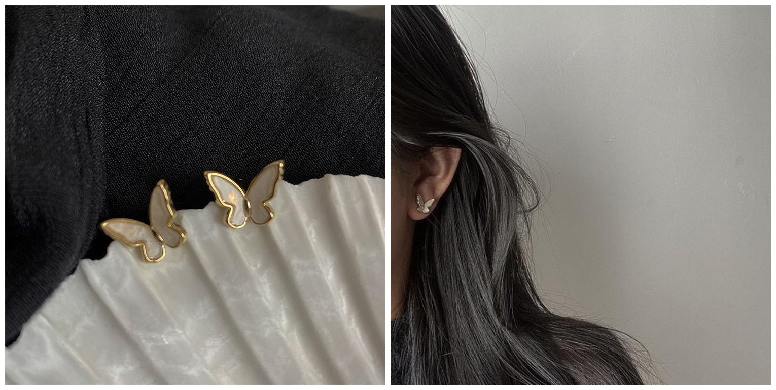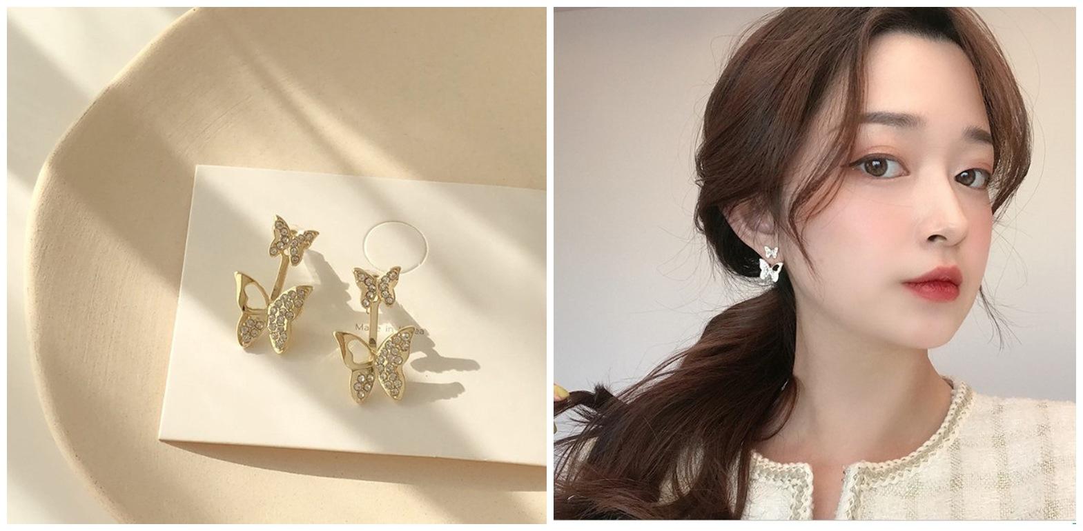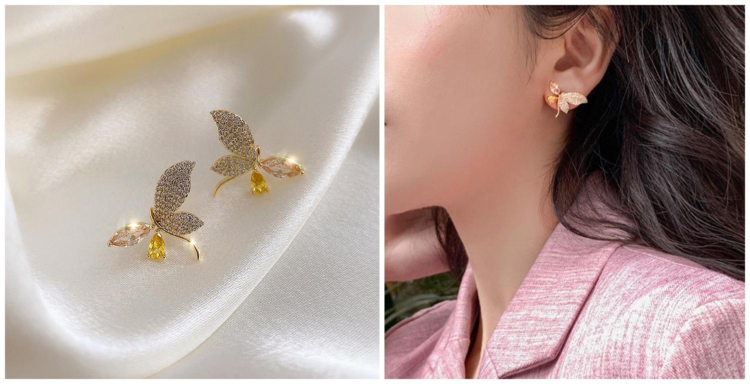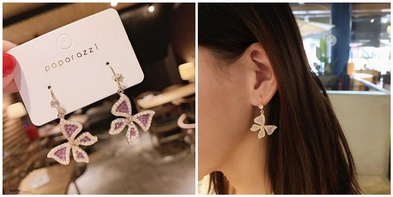 Pendientes coreanos de aguja de plata s925 con diseño de mariposa y diamantes, modernos y sencillos, con clip de perla, estilo retro.