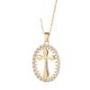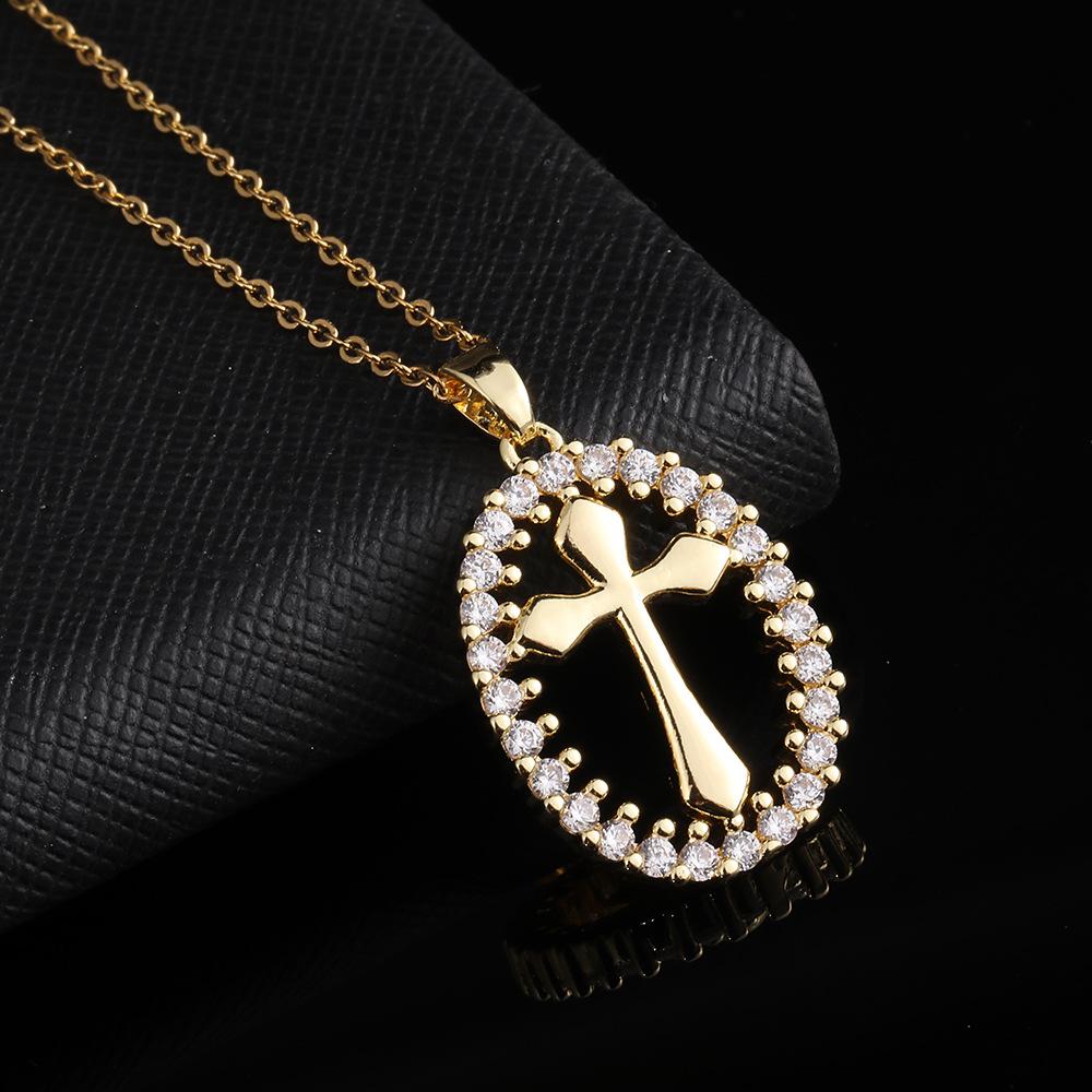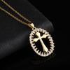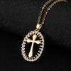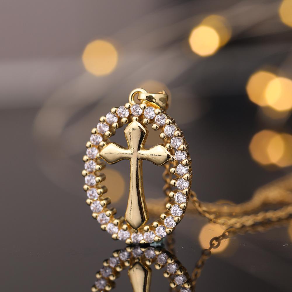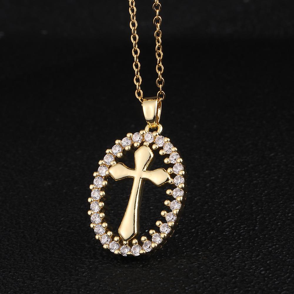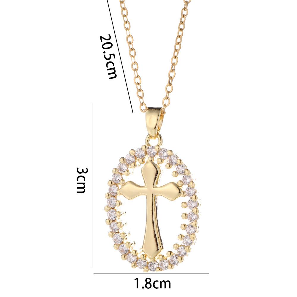 Colgante de cruz de oro real galvanizado con circonita de cobre a juego, estilo europeo y americano, diseño de nicho para mujer, cadena de clavícula de viento frío