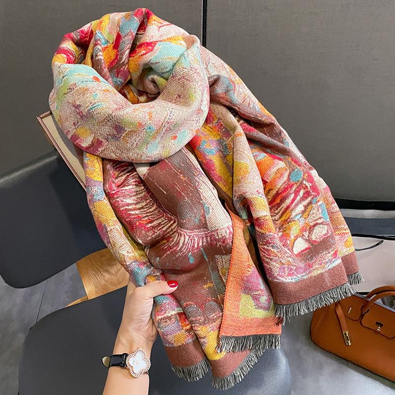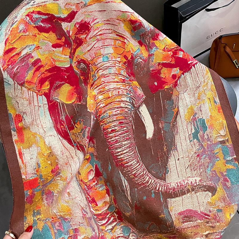 Bufanda de cachemira con grafiti de elefante para mujer, elegante y a la moda, de otoño e invierno, gruesa, de doble cara, para el cuello, chal de invierno.
