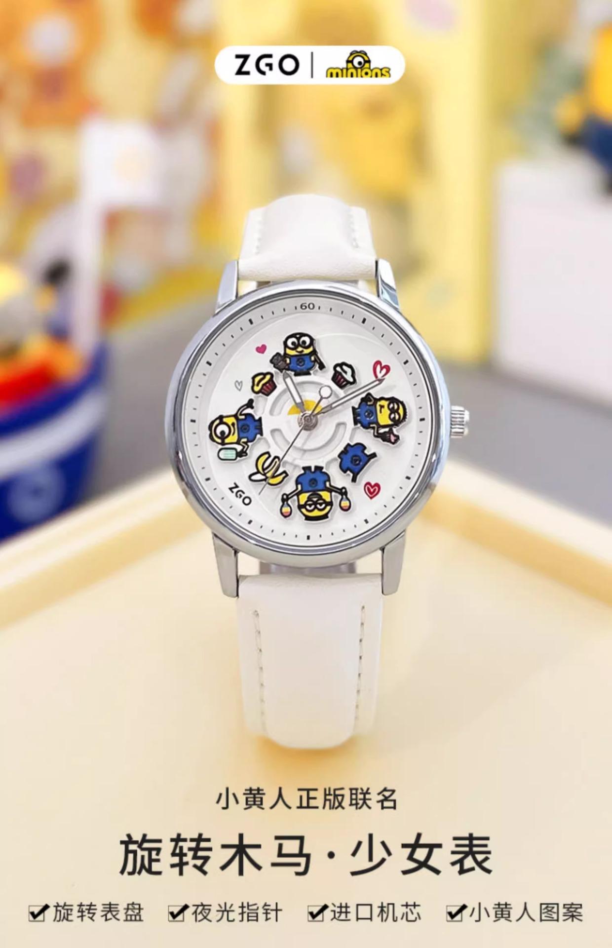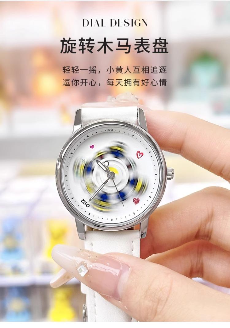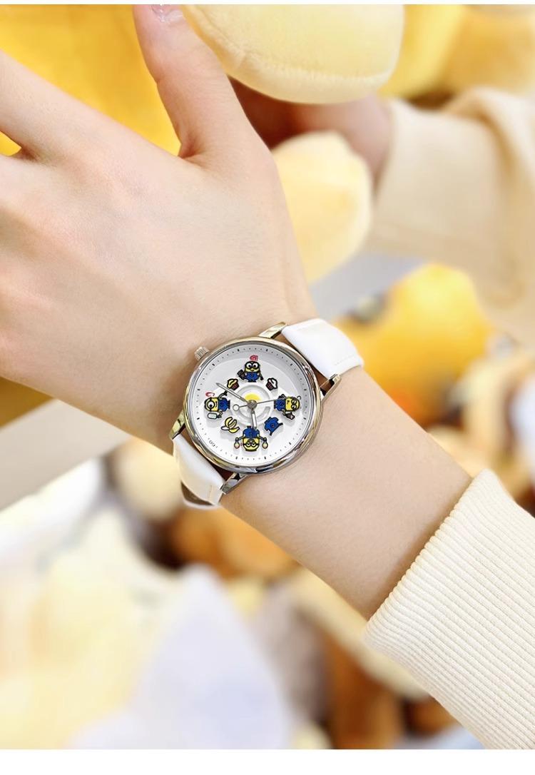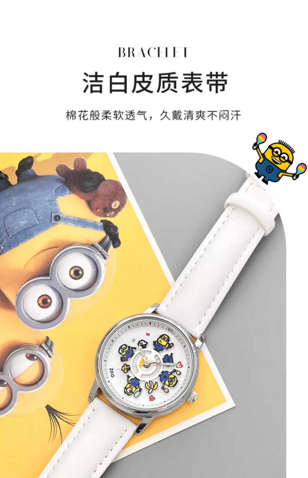 Reloj Carrusel Genuino de Marca Compartida Zhenggang Minion Reloj para Estudiante de Secundaria Reloj de Cuarzo Resistente al Agua para Niños