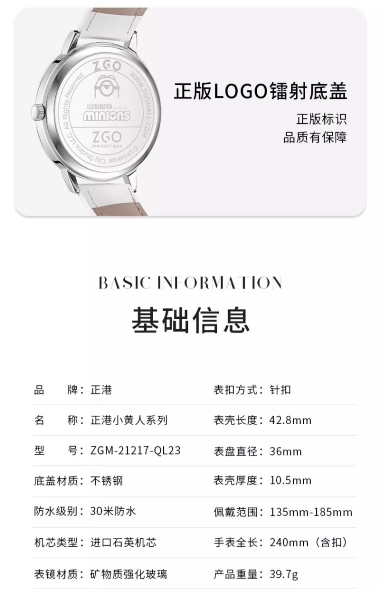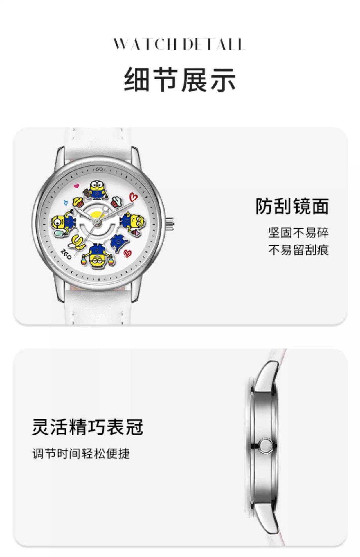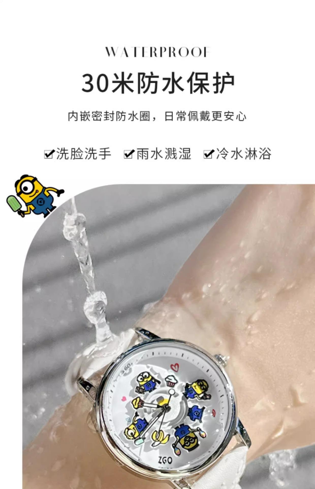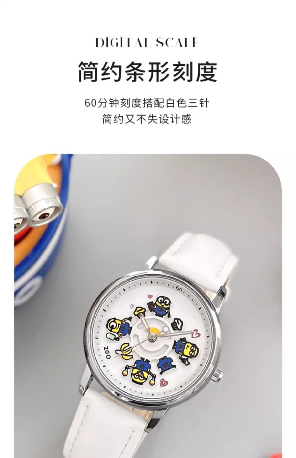 Reloj Carrusel Genuino de Marca Compartida Zhenggang Minion Reloj para Estudiante de Secundaria Reloj de Cuarzo Resistente al Agua para Niños