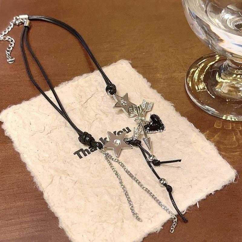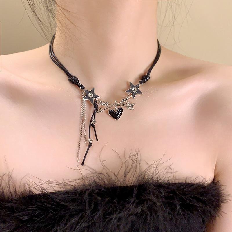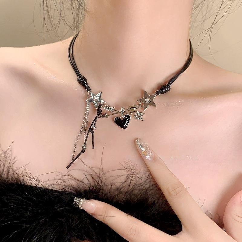 Collar de estrella de amor para mujer, nuevo, de doble capa, dulce, genial, sexy, cadena de clavícula para chica, collar con borlas de cuerda de cera de alta calidad que combina con todo, a la moda