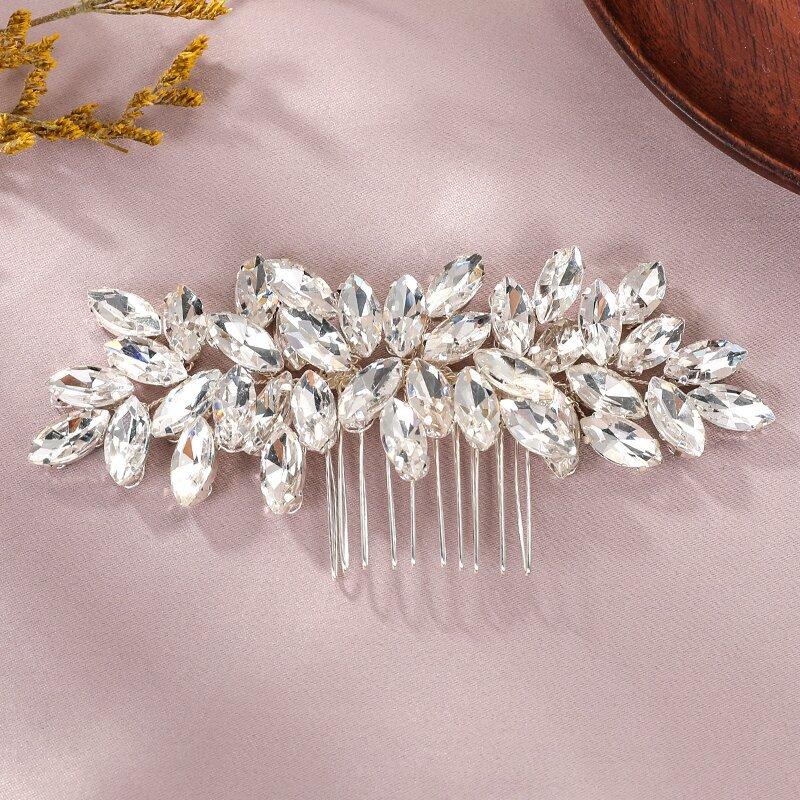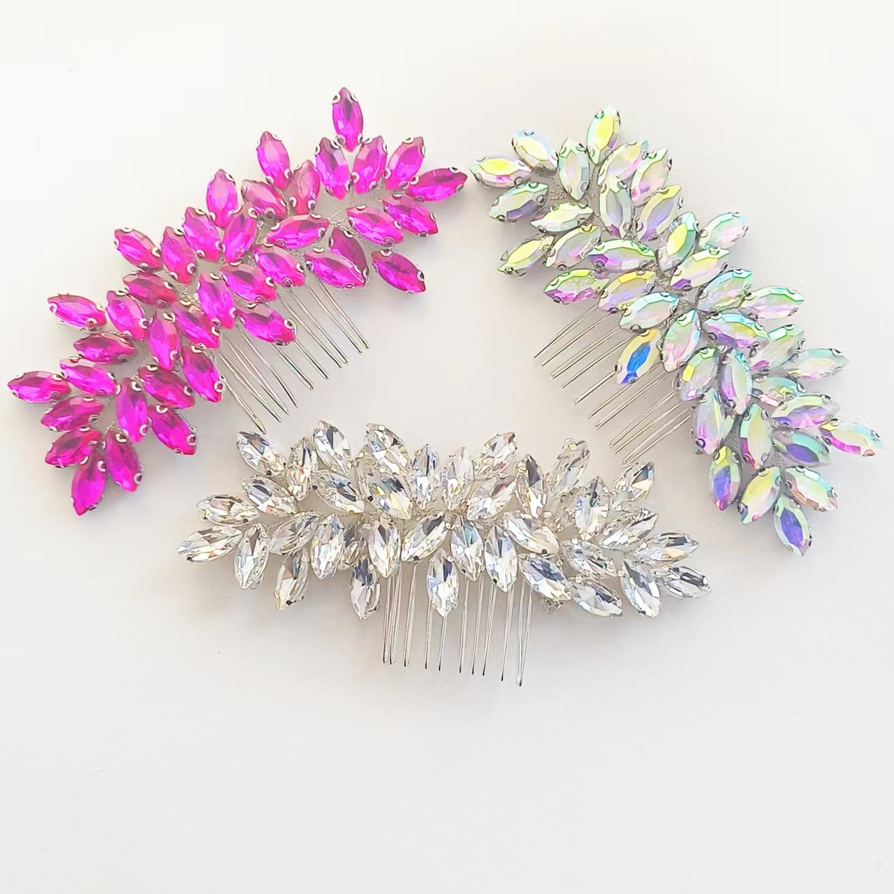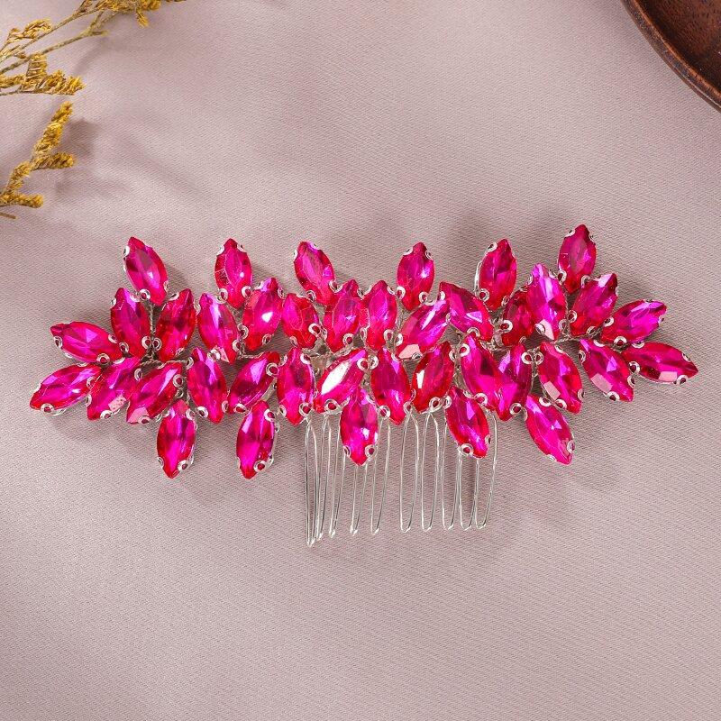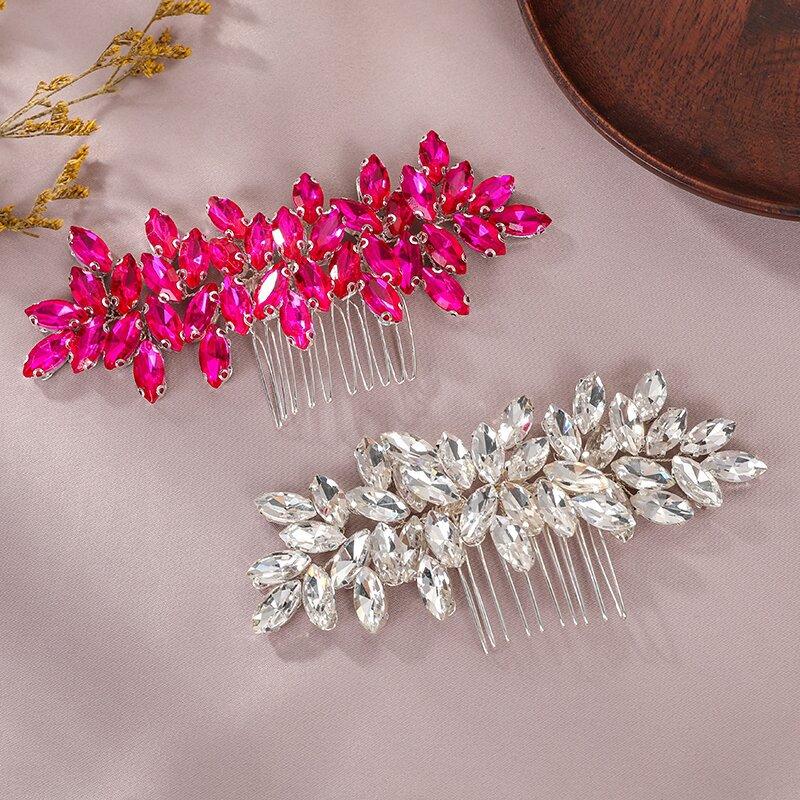 Tocado con peine transfronterizo europeo y americano, tejido a mano, nicho simple, rosa roja, diamantes de imitación, accesorios para vestido de novia