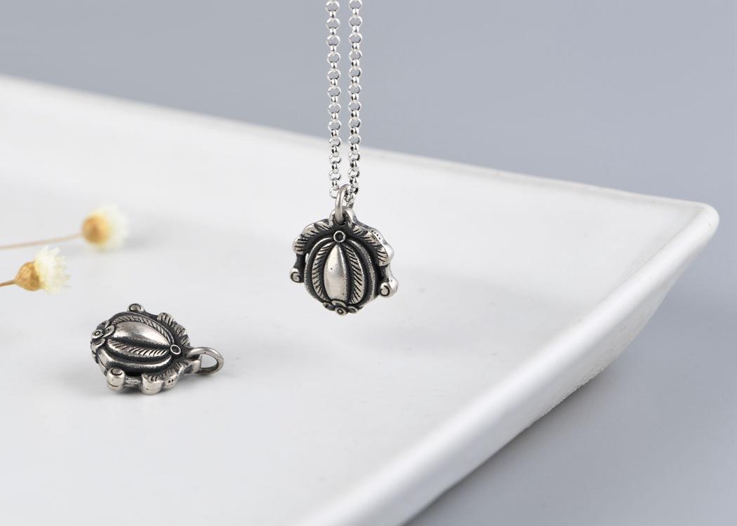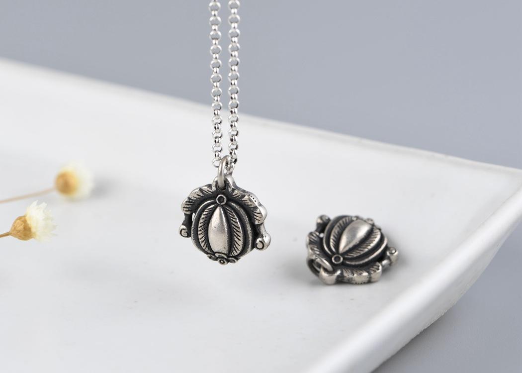 Colgante de plata S925 con diseño de ciervo dorado y accesorios antiguos de plata tailandesa para mujer, colgante de campana con forma de linterna y flor.
