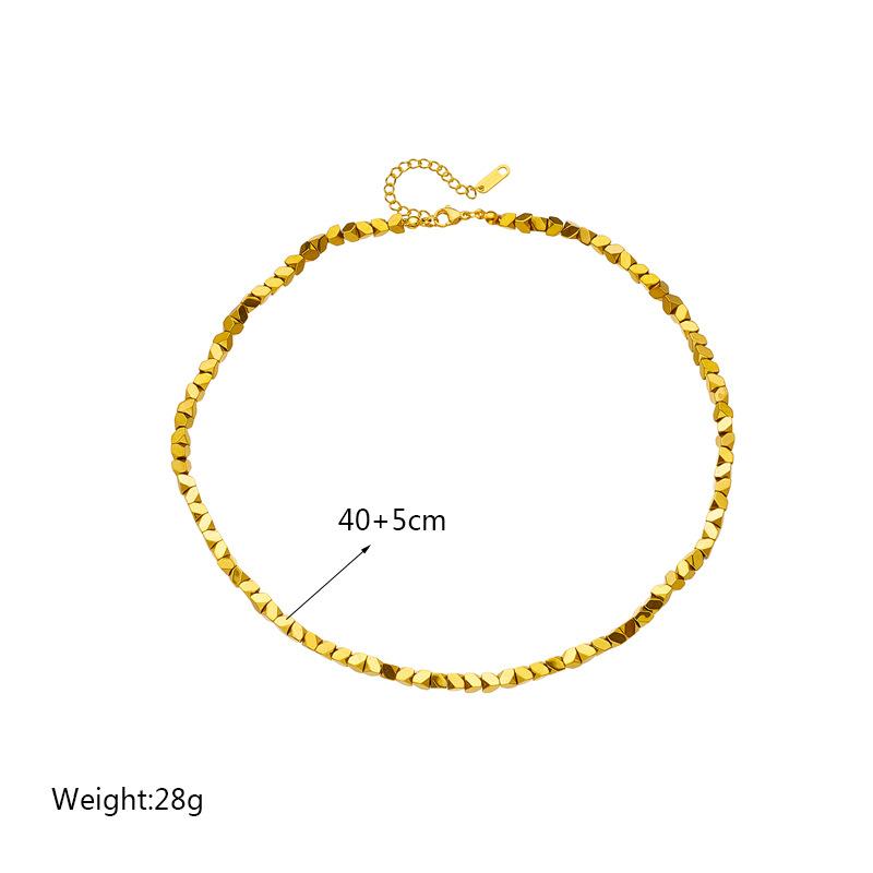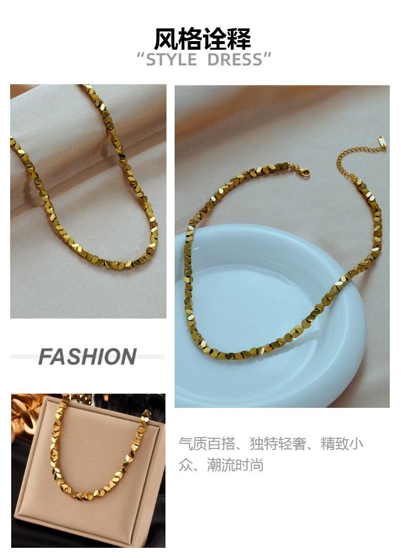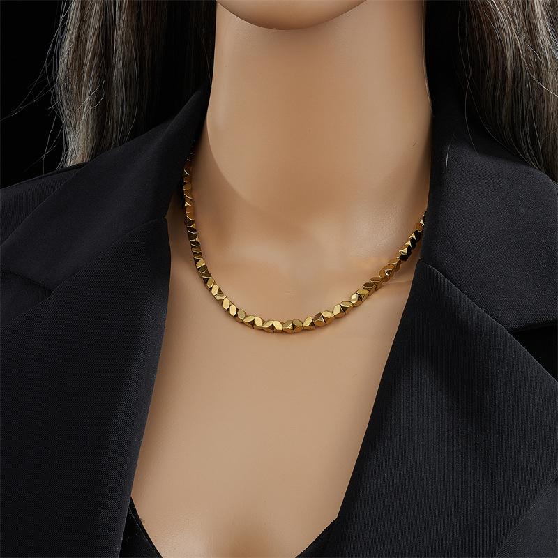 Collar de cadena tejida a mano con cuentas geométricas cortadas en acero de titanio dorado simple con diseño de nicho transfronterizo europeo y americano