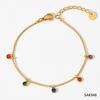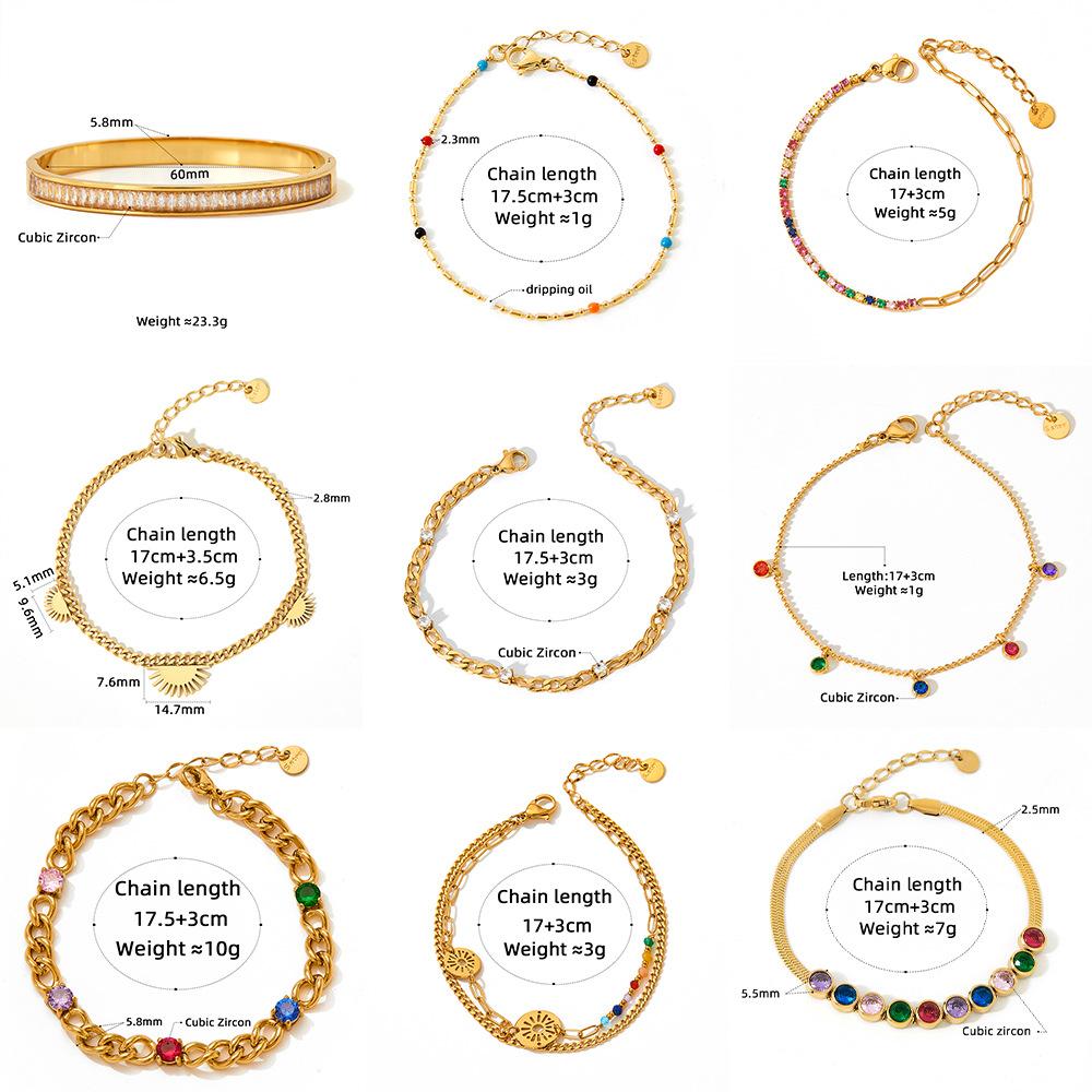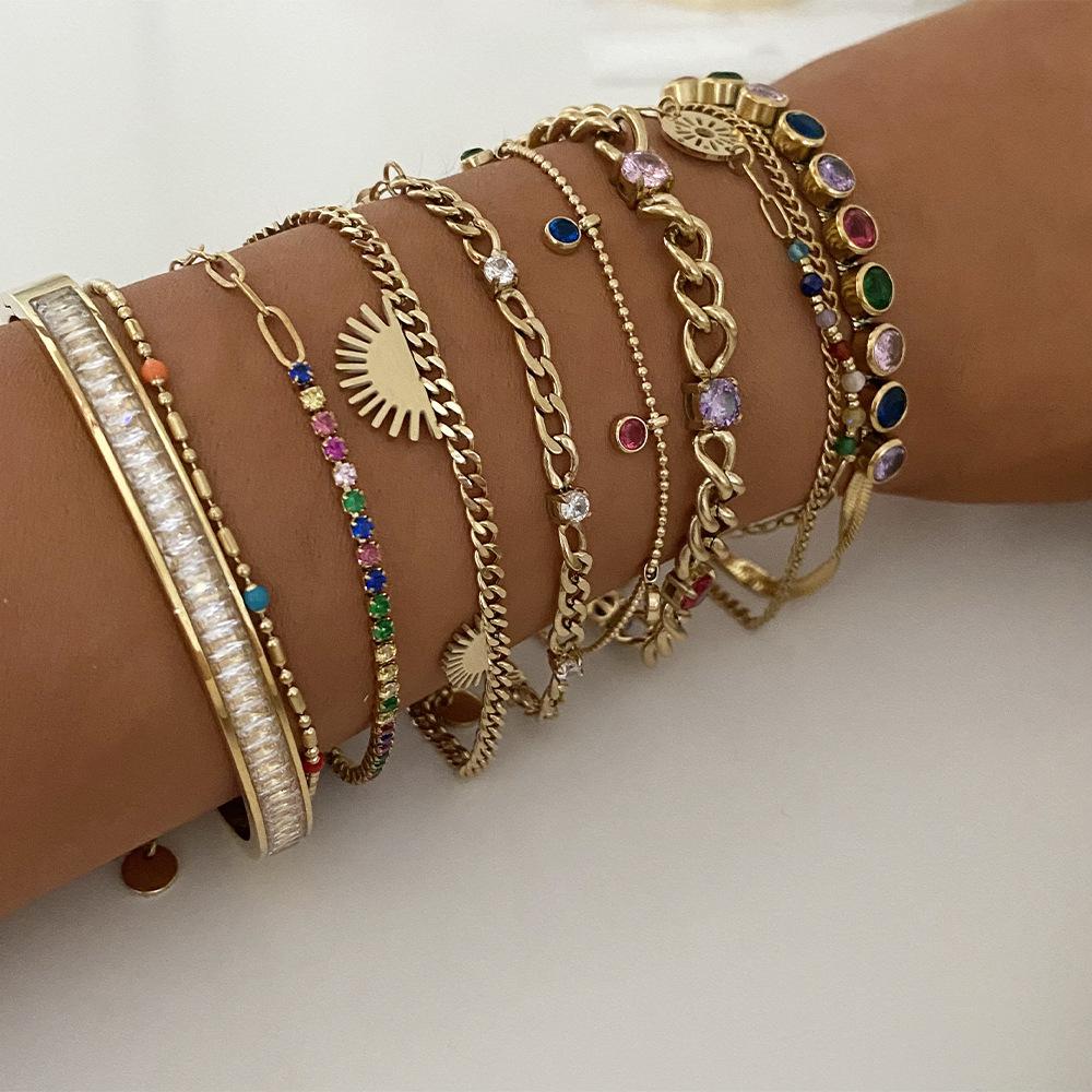 Pulsera Atmosférica de Nuevo Estilo Transfronterizo Traje para Mujer Acero Inoxidable Incrustado Zircón Colorido Geométrico Europeo y Americano Pulsera Metálica