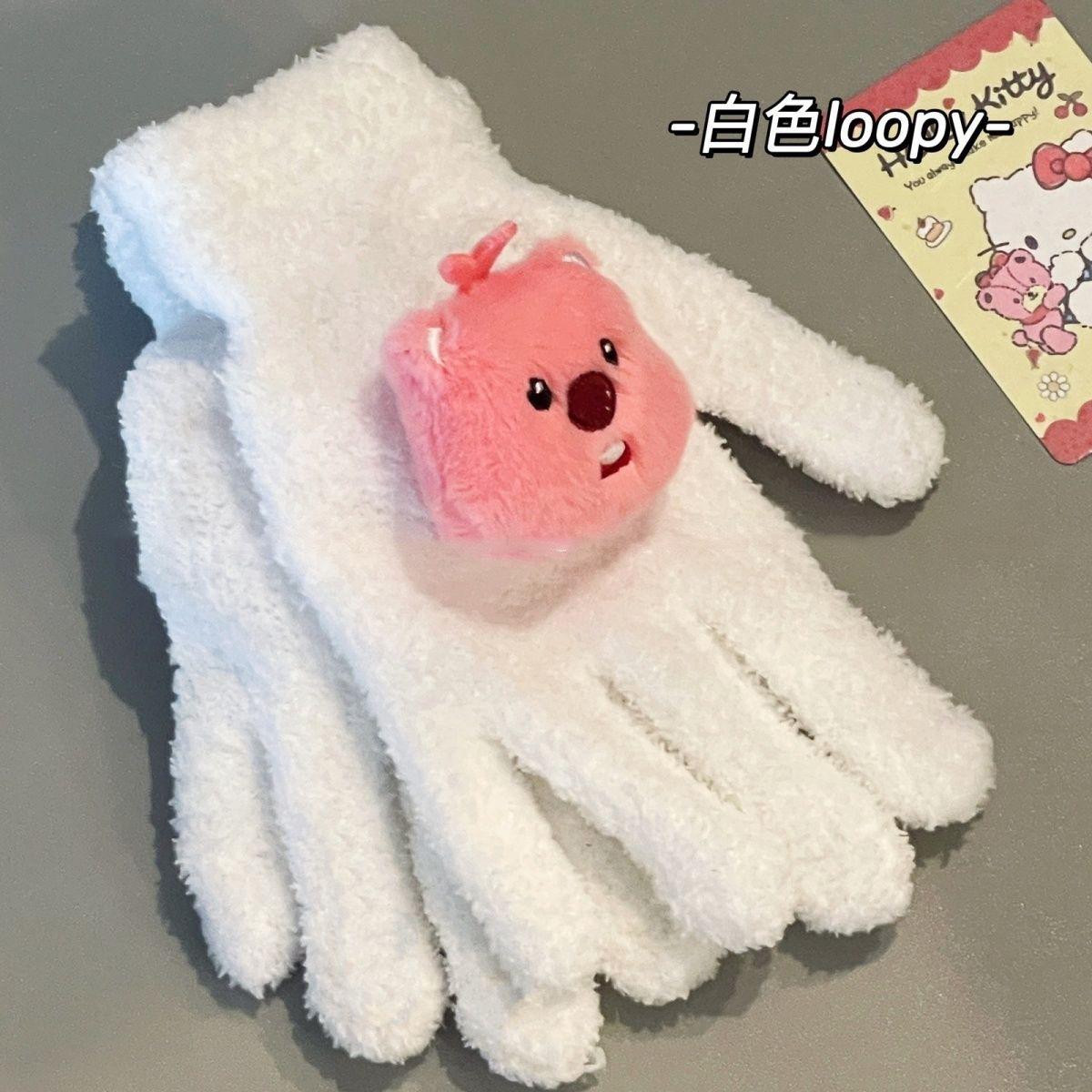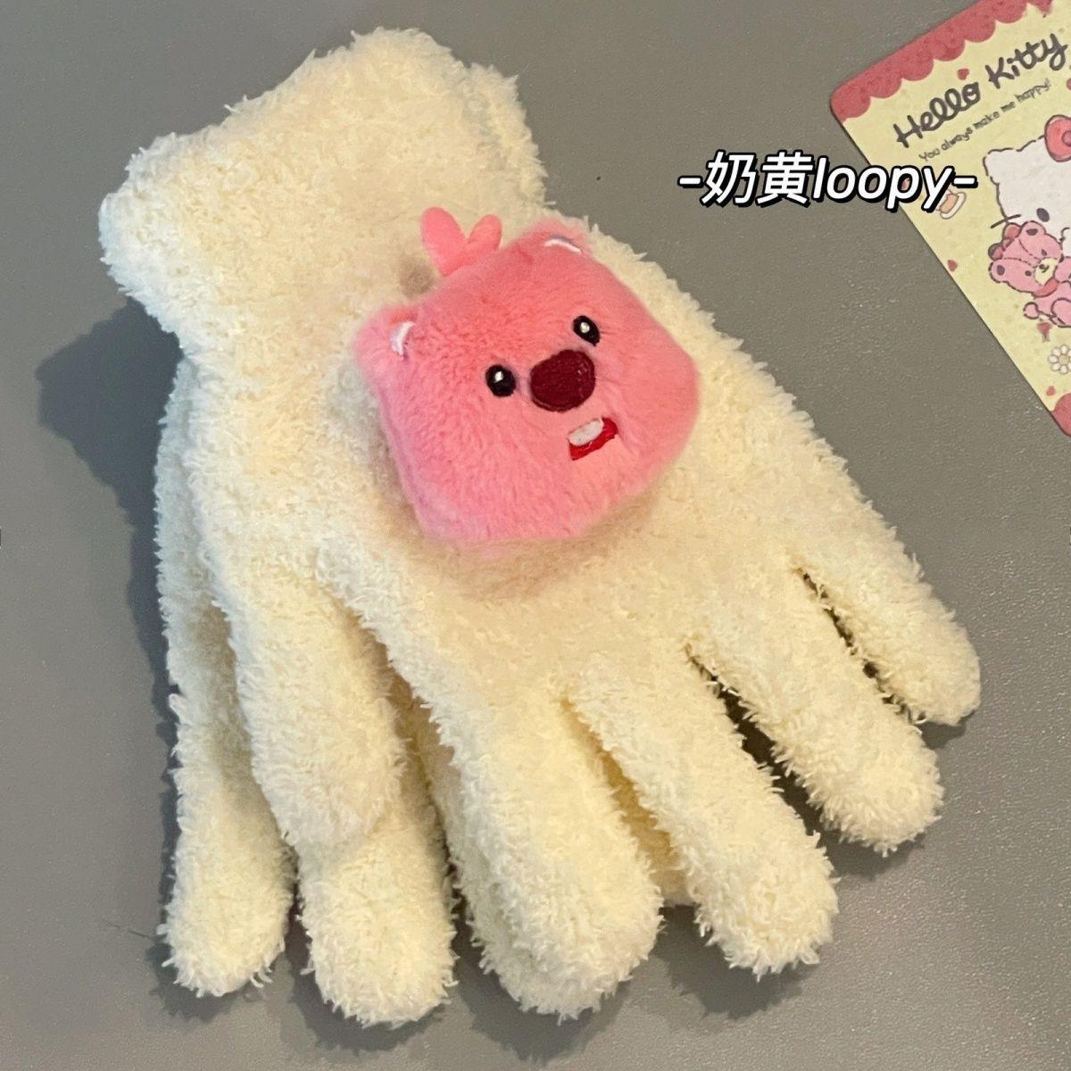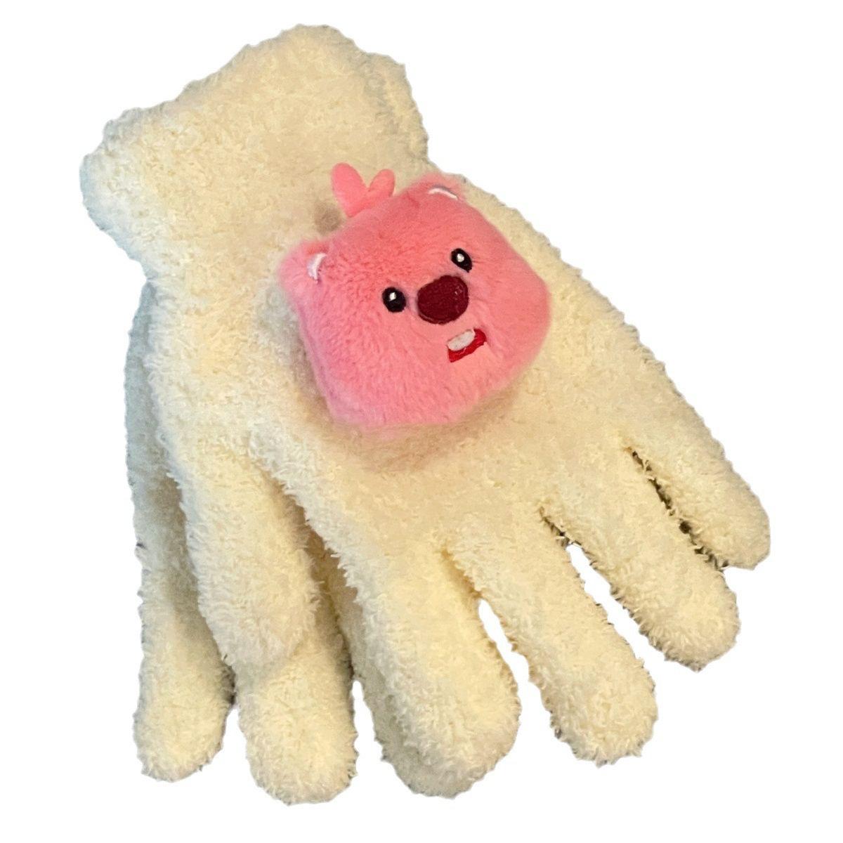 Librito Rojo mismos guantes de terciopelo coral lindos guantes de felpa con bucles de castor pequeño estudiante guantes a prueba de frío para montar