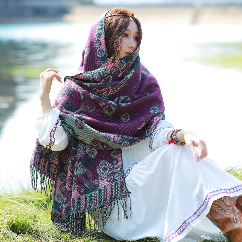 Chal de estilo étnico de primavera y otoño, capa de protección solar para turismo de Yunnan y Xinjiang, bufanda de cachemira de imitación con borlas retro
