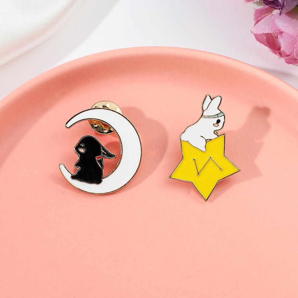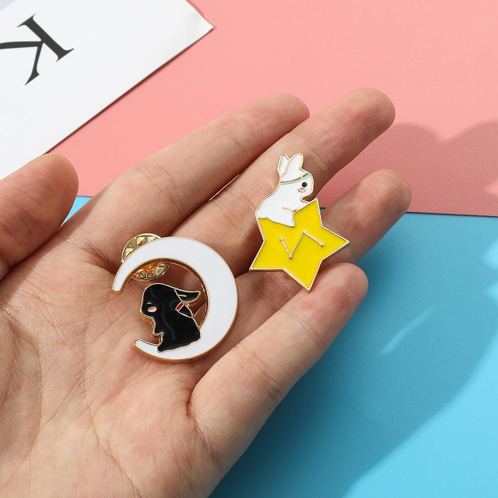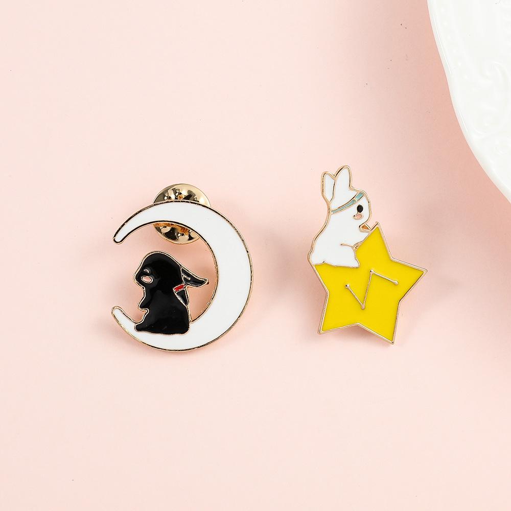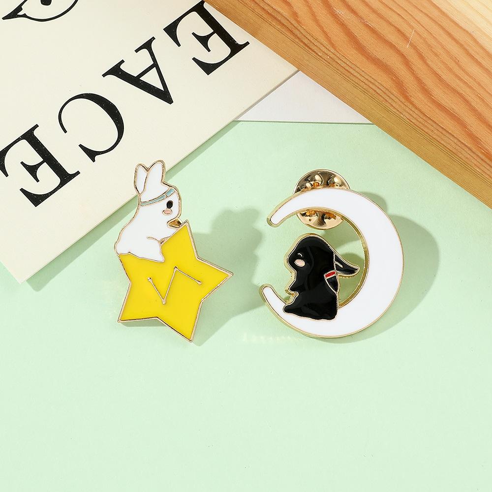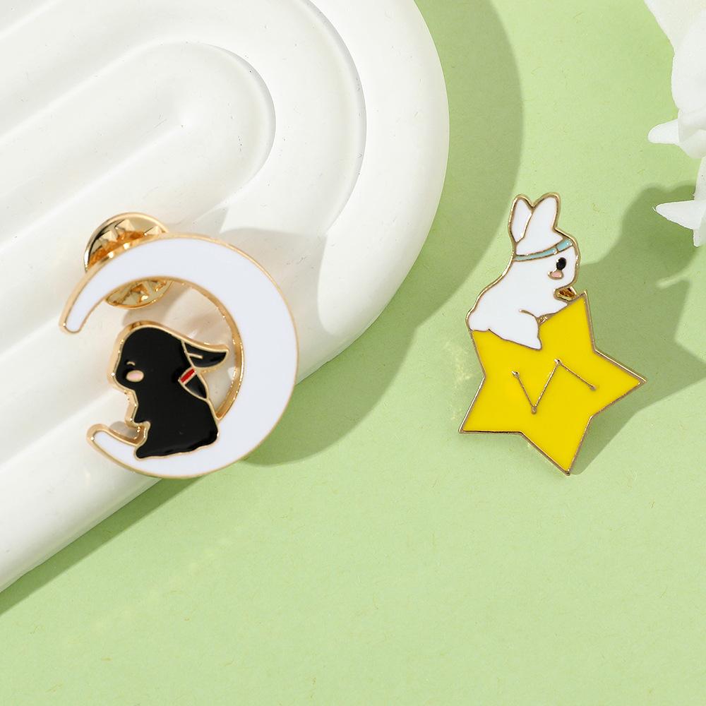 Broche creativo de dibujos animados de estrella, luna y conejo, insignia de metal con forma de conejo, accesorio para bolso de estudiante.