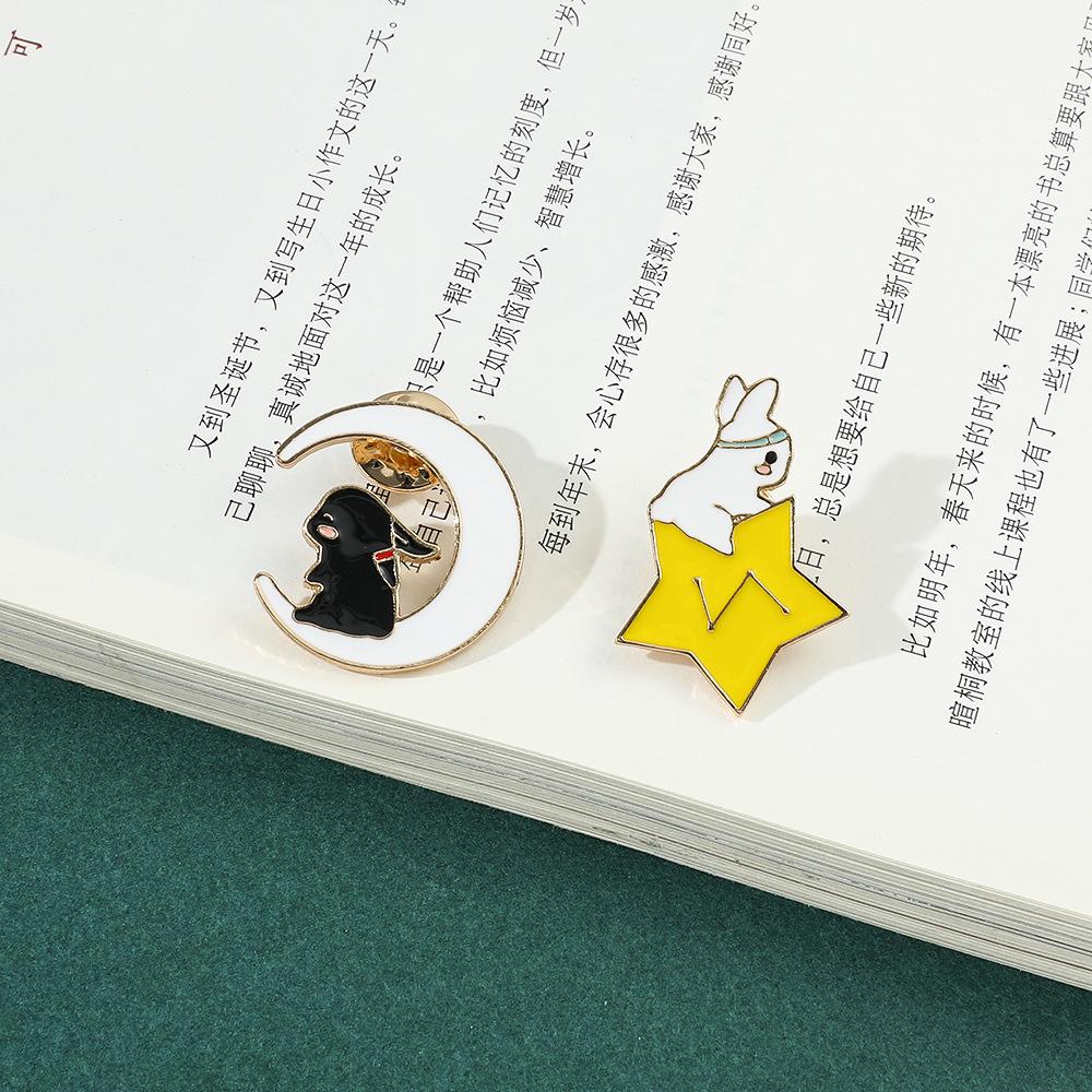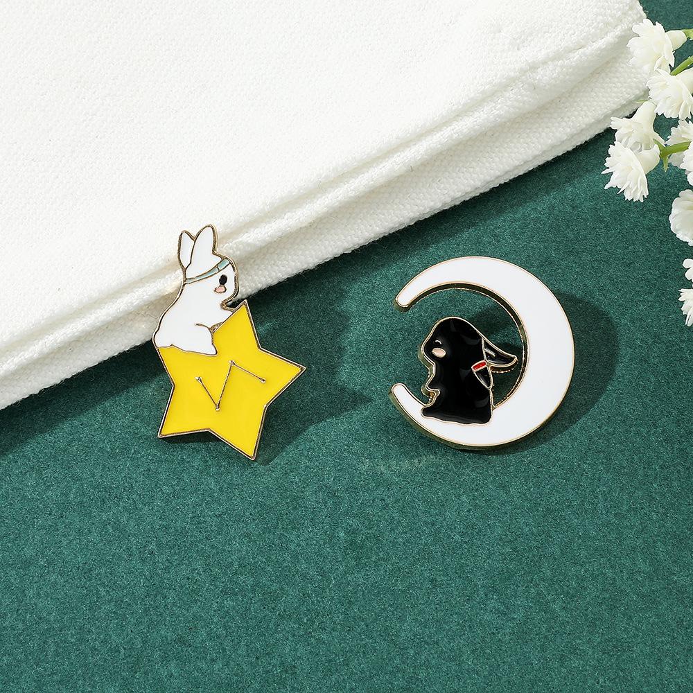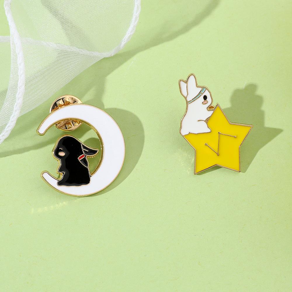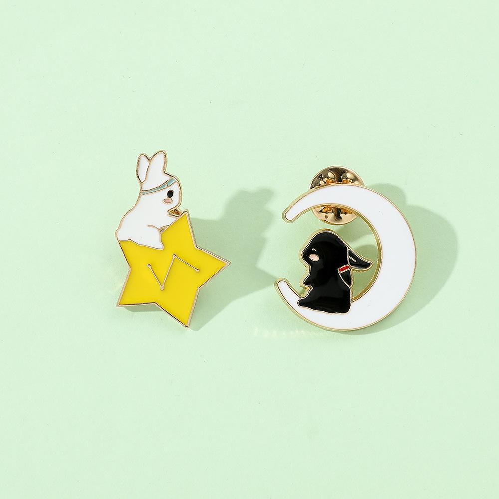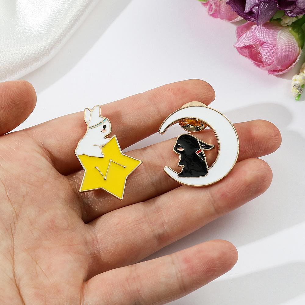 Broche creativo de dibujos animados de estrella, luna y conejo, insignia de metal con forma de conejo, accesorio para bolso de estudiante.