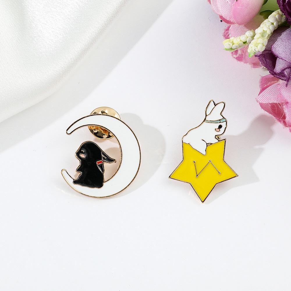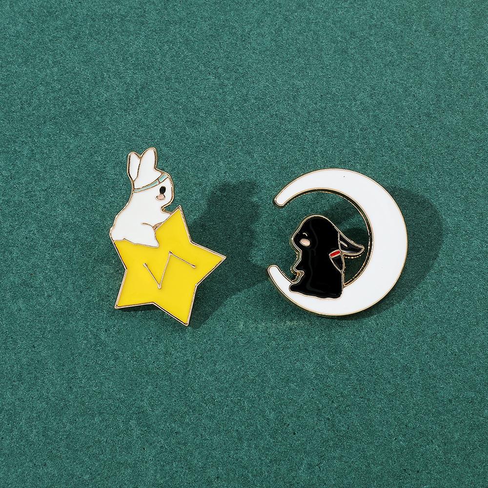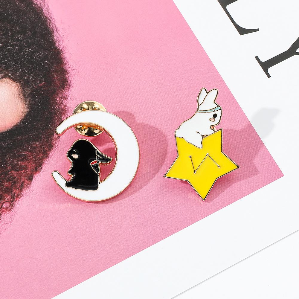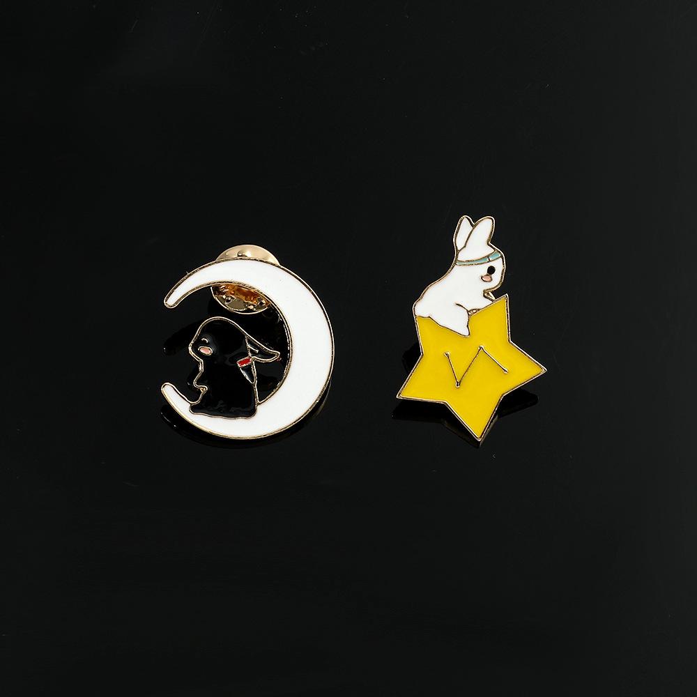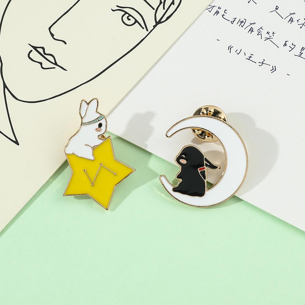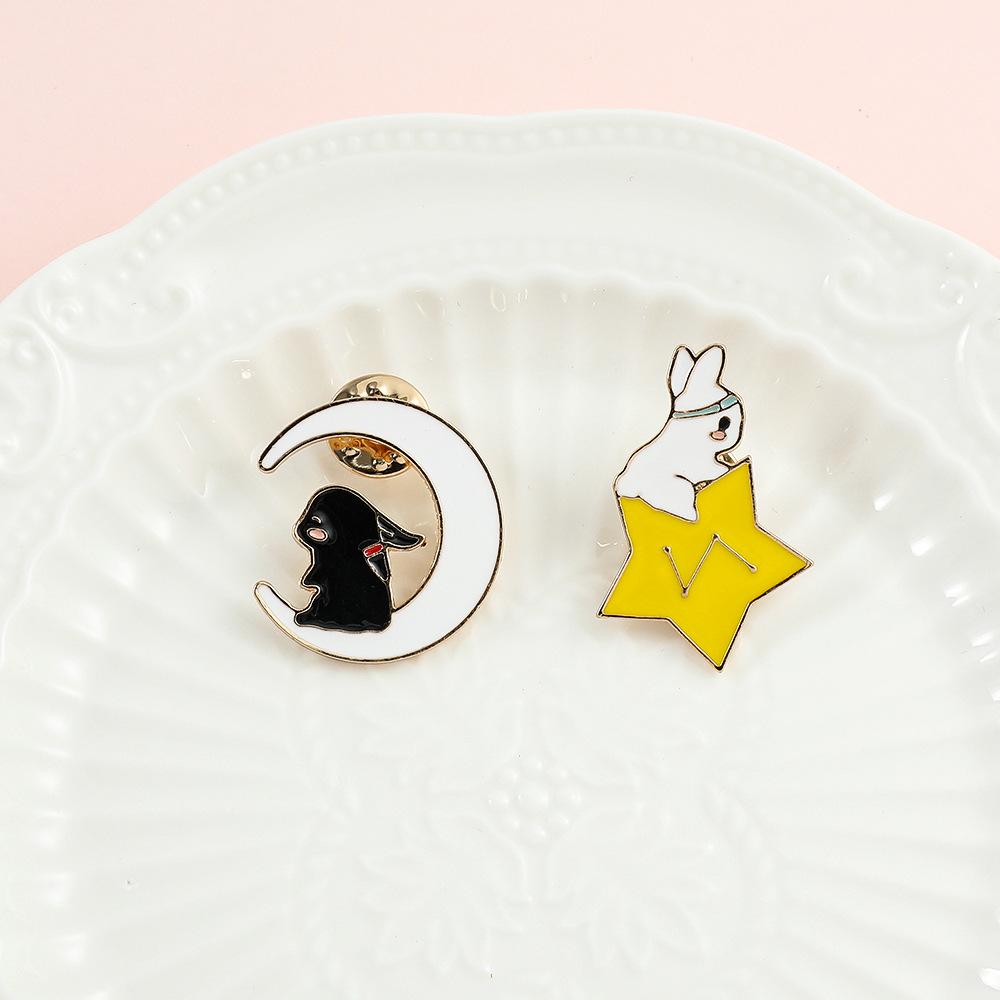 Broche creativo de dibujos animados de estrella, luna y conejo, insignia de metal con forma de conejo, accesorio para bolso de estudiante.