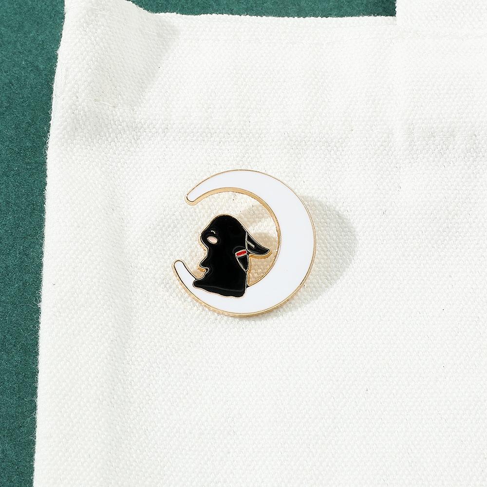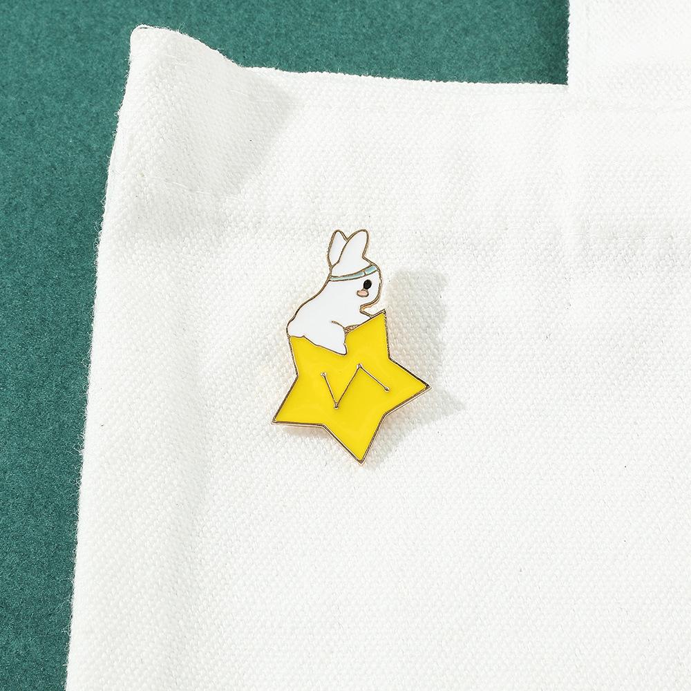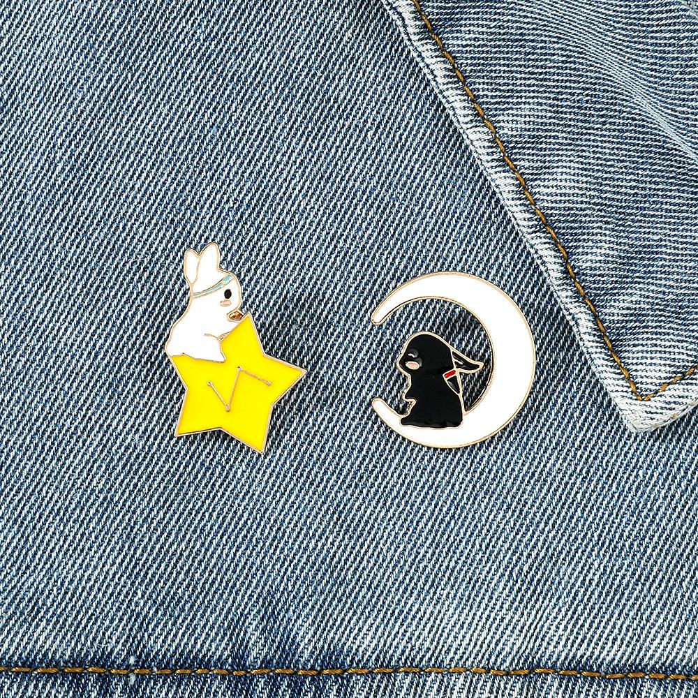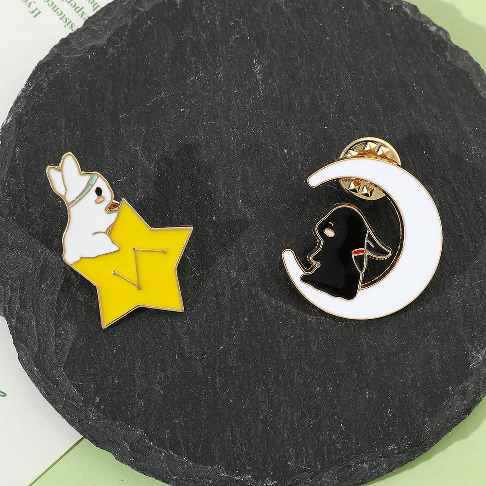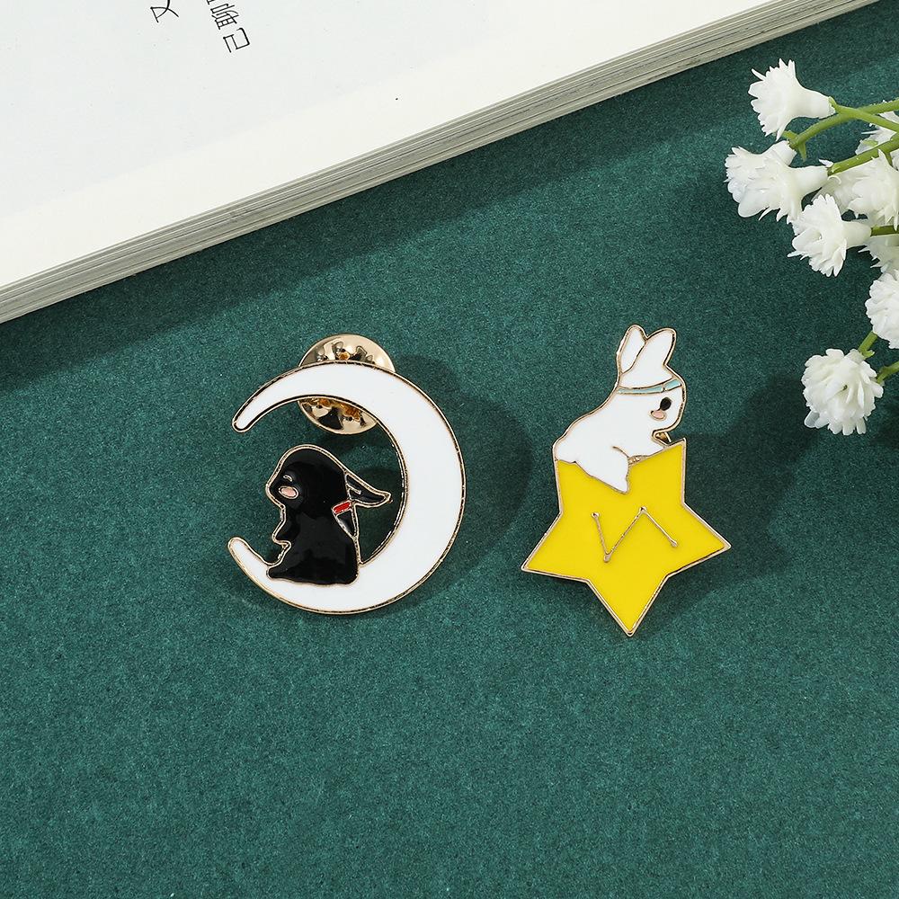 Broche creativo de dibujos animados de estrella, luna y conejo, insignia de metal con forma de conejo, accesorio para bolso de estudiante.